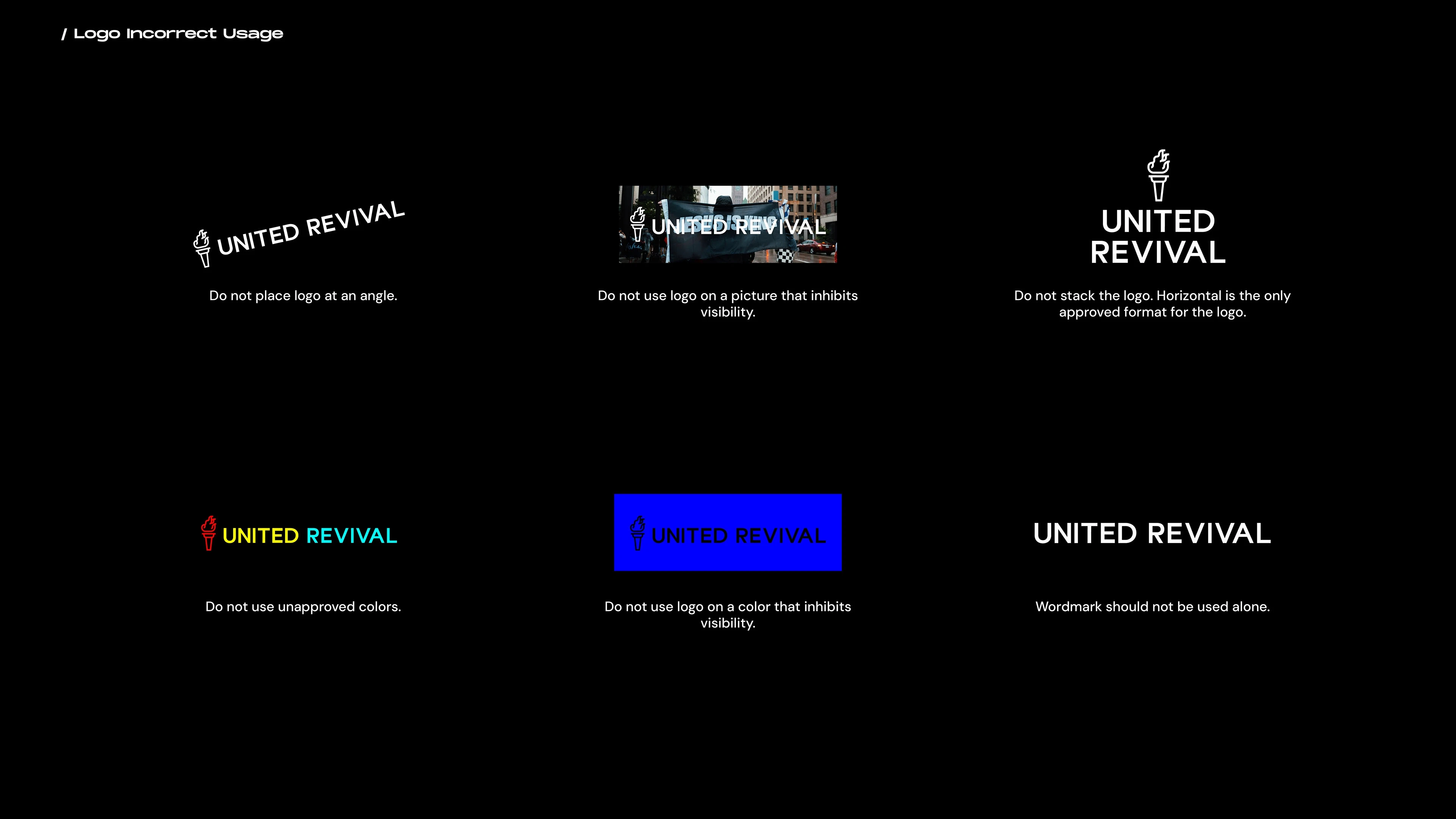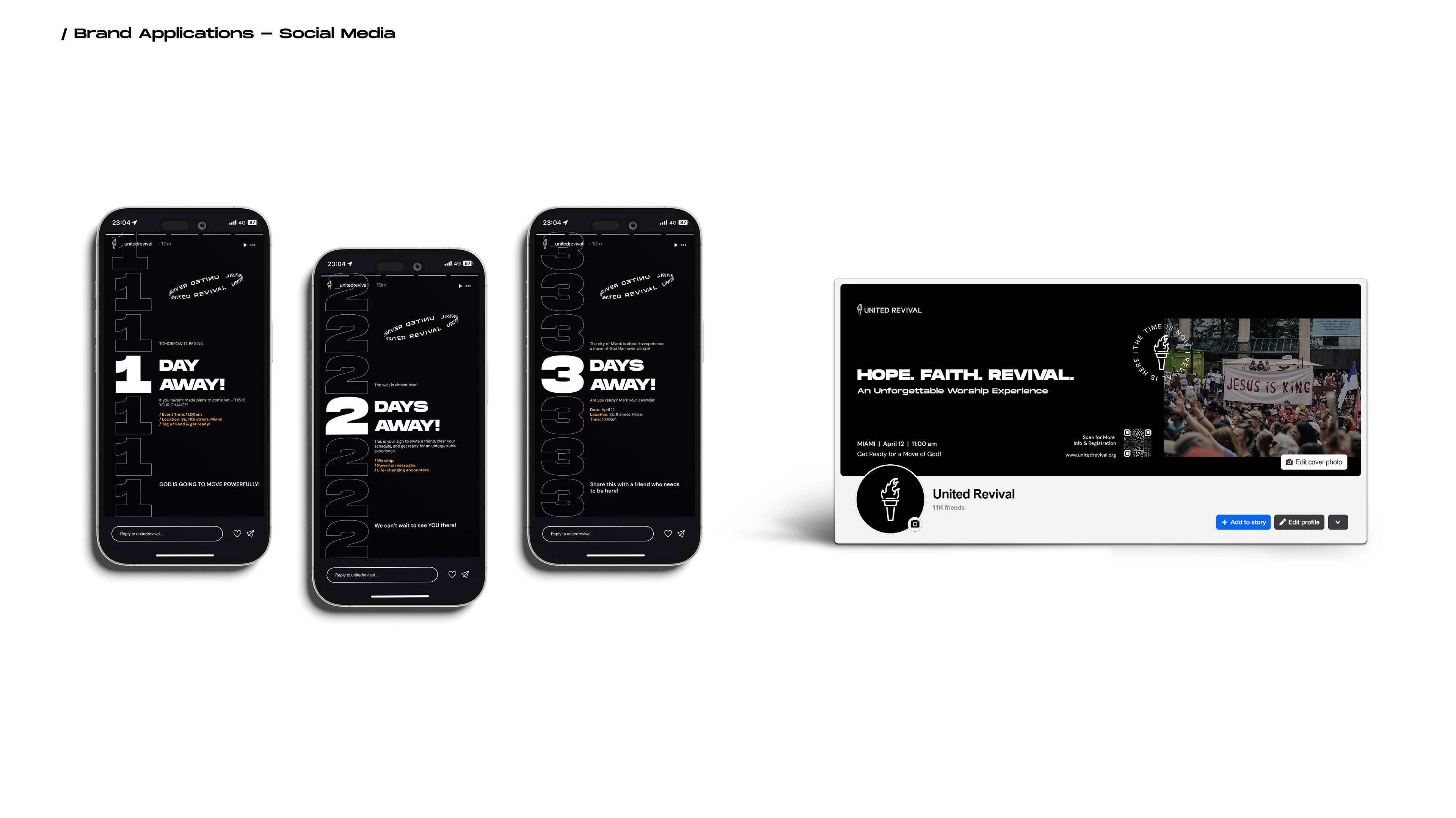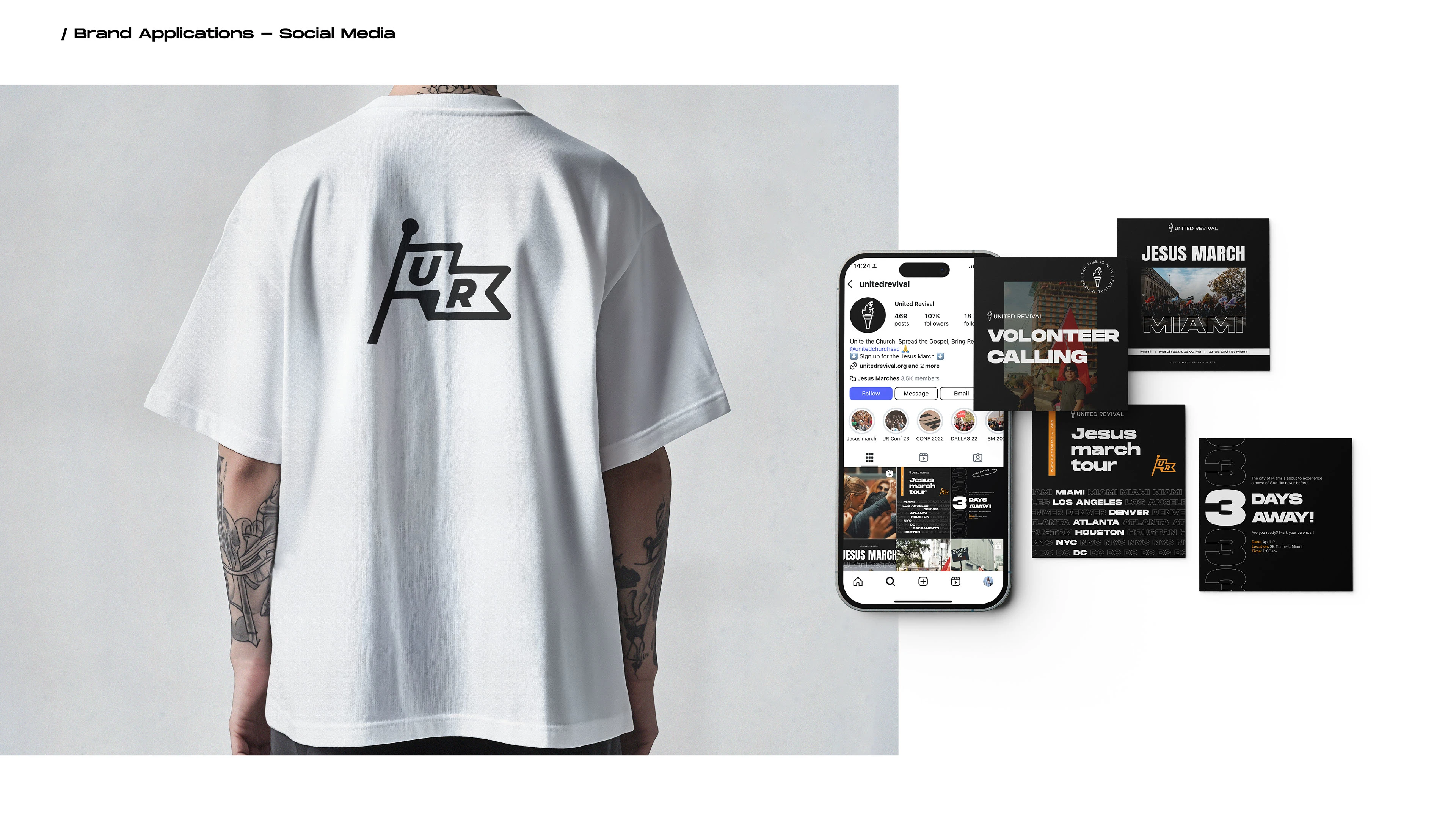 The final identity gives United Revival a cohesive, professional visual system that supports their mission and strengthens their presence across events, digital platforms, and communication materials.