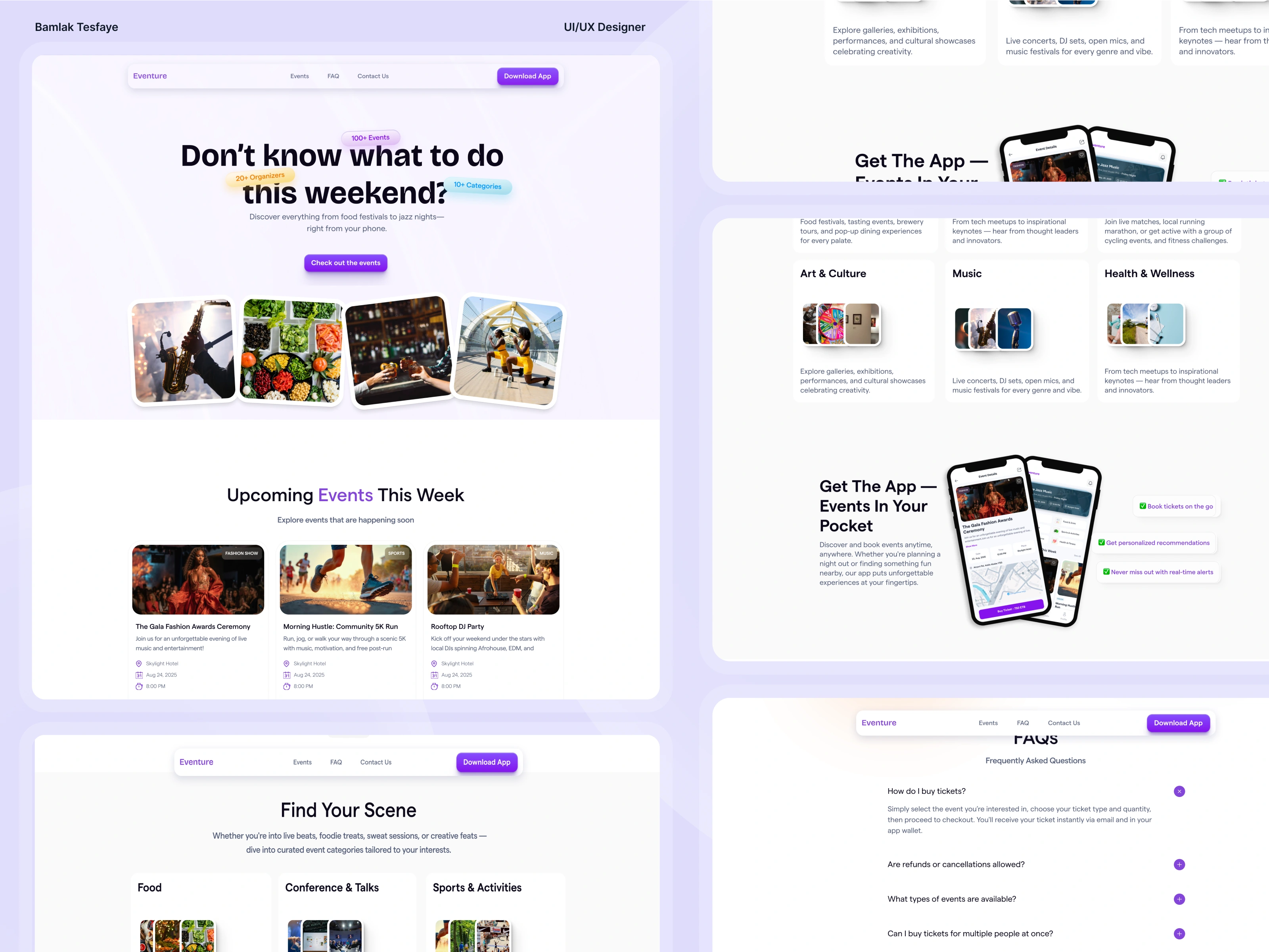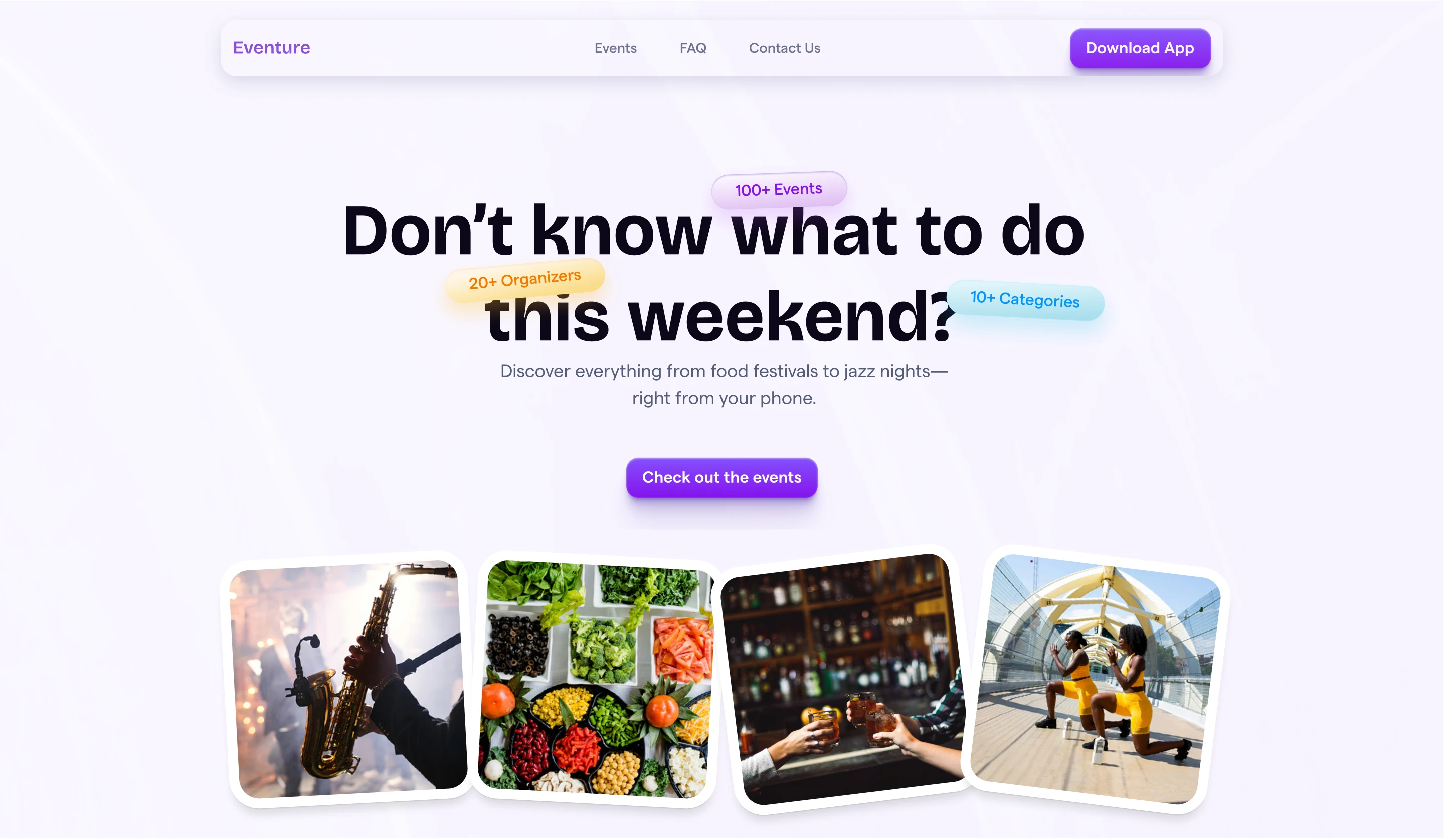 A landing page for discovering events, grabbing tickets, and getting notified—all in a few taps.