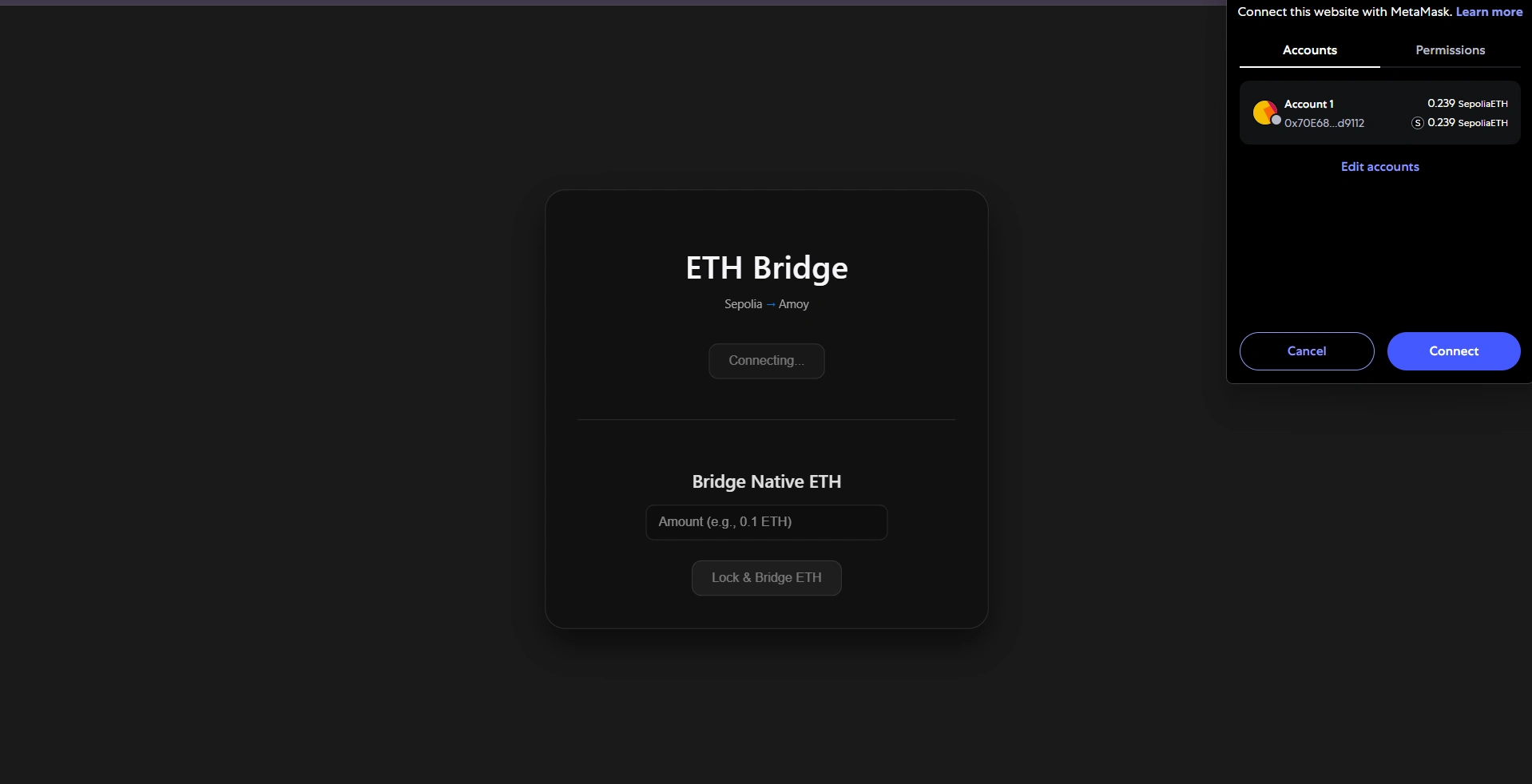 Developed a cross-chain ETH to WETH bridge (Sepolia Testnet to Polygon Amoy) using Solidity, React, and Node.js. - KoushikBaagh/bridge-contract-ETH-to-POLYGON