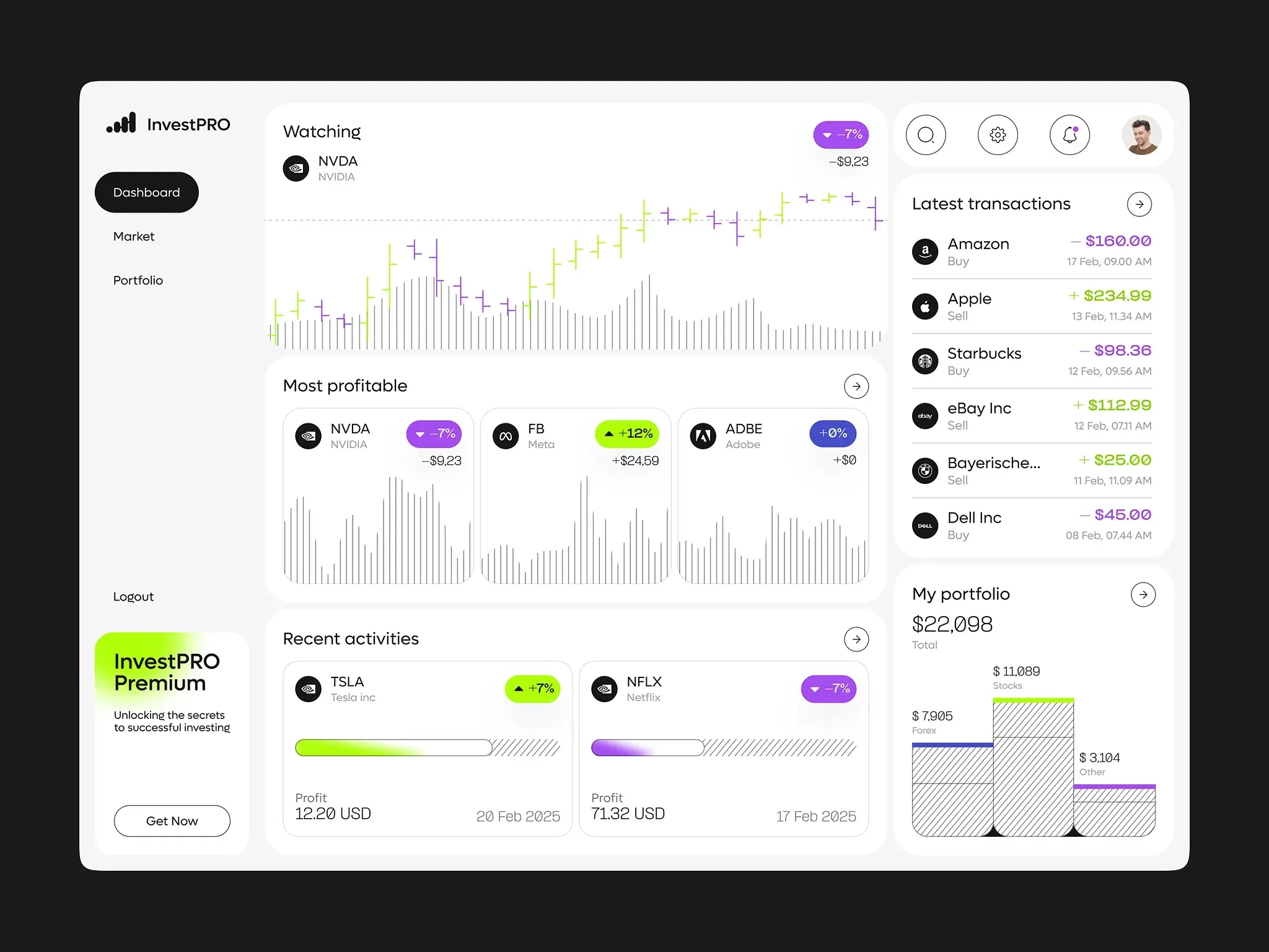 Hello everyone! Our team recently developed a design concept for an investment and finance web application. Here's an overview of its features.