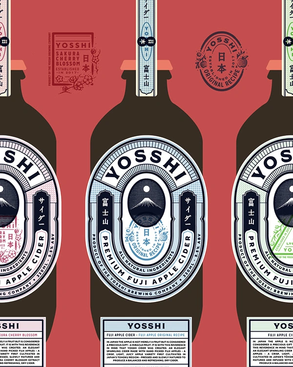 Yosshi is a premium cider brand that uses apples grown at the base of Mount Fuji.