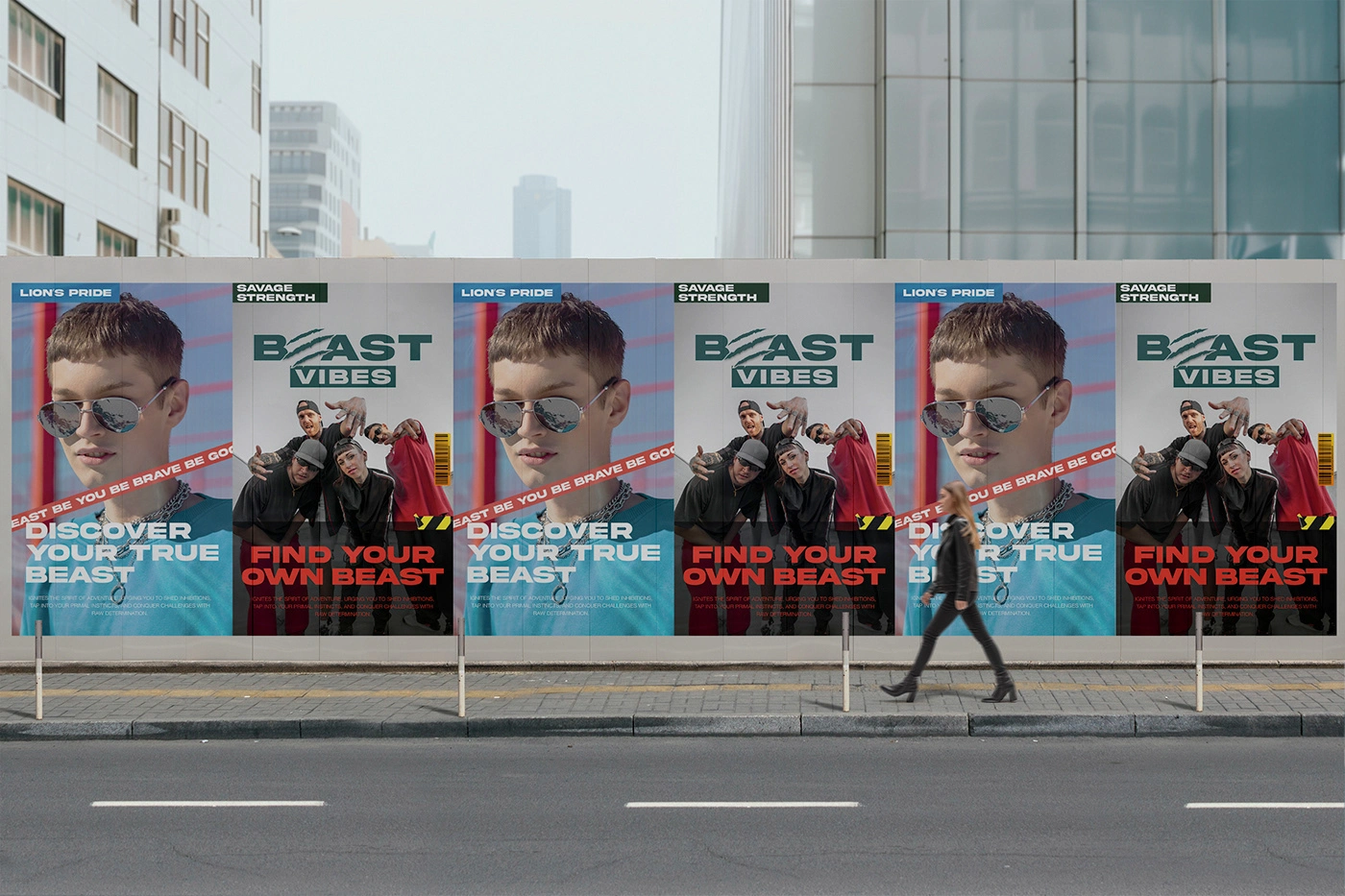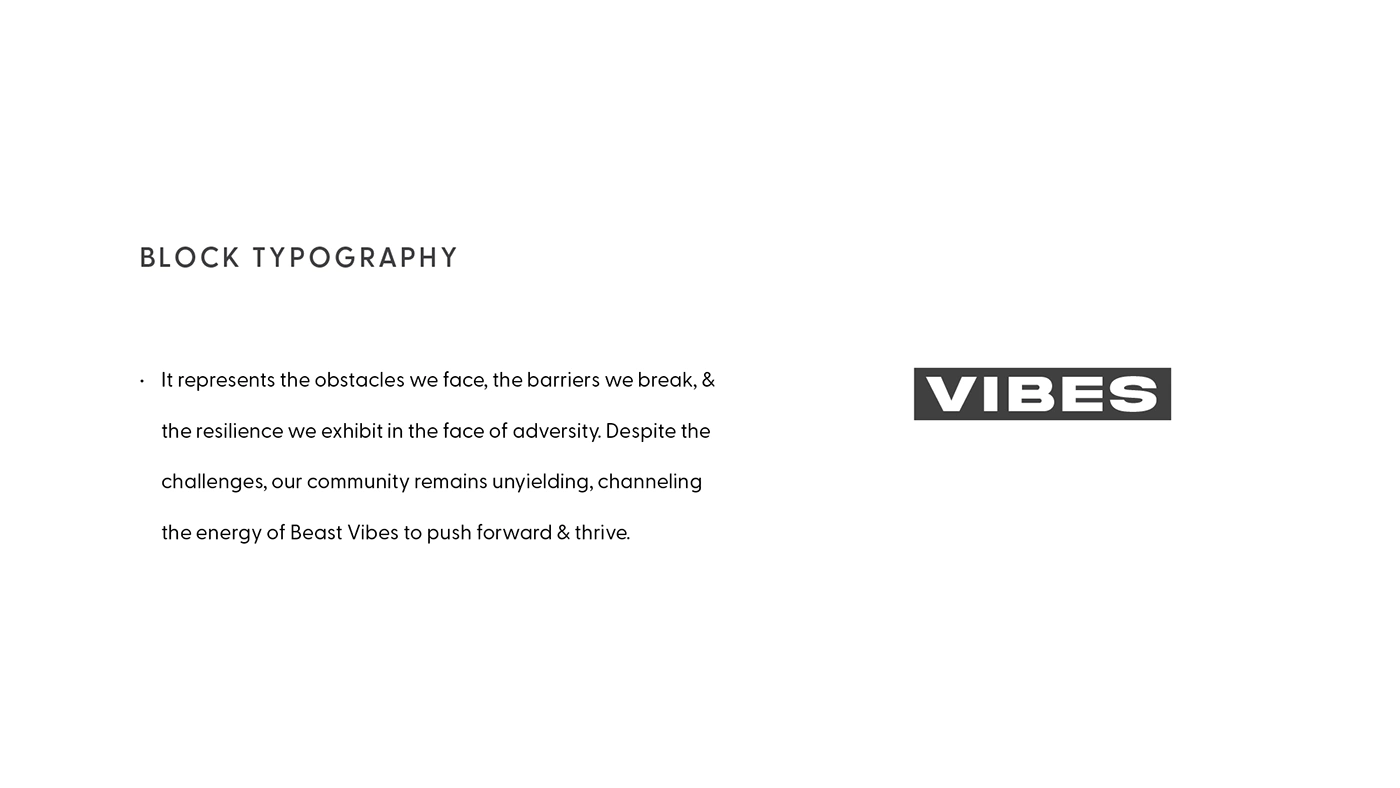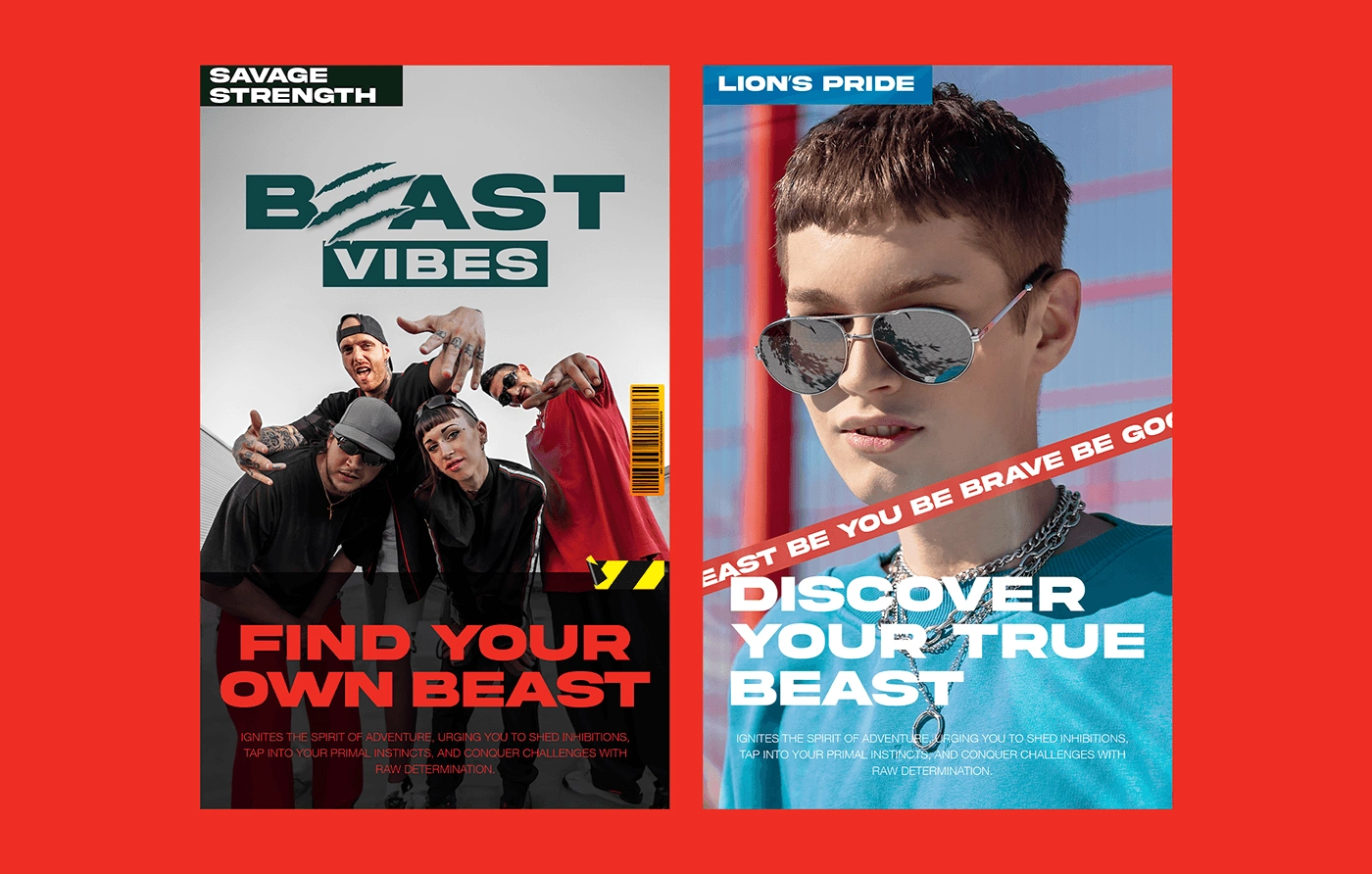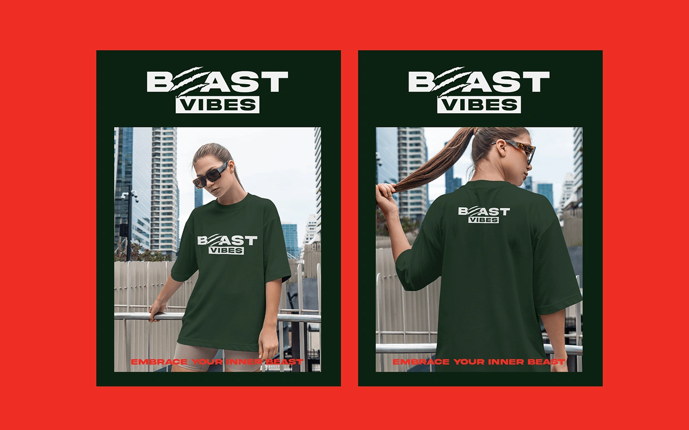In designing the BeastVibes logo and identity, our goal was to create a visual representation of the brand's core values: strength, resilience, and primal energy. Through the use of bold typography, dynamic design elements, and a powerful color palette, we have crafted an identity that not only stands out but also inspires and empowers the BeastVibes community to embrace their inner beast and conquer any challenge.