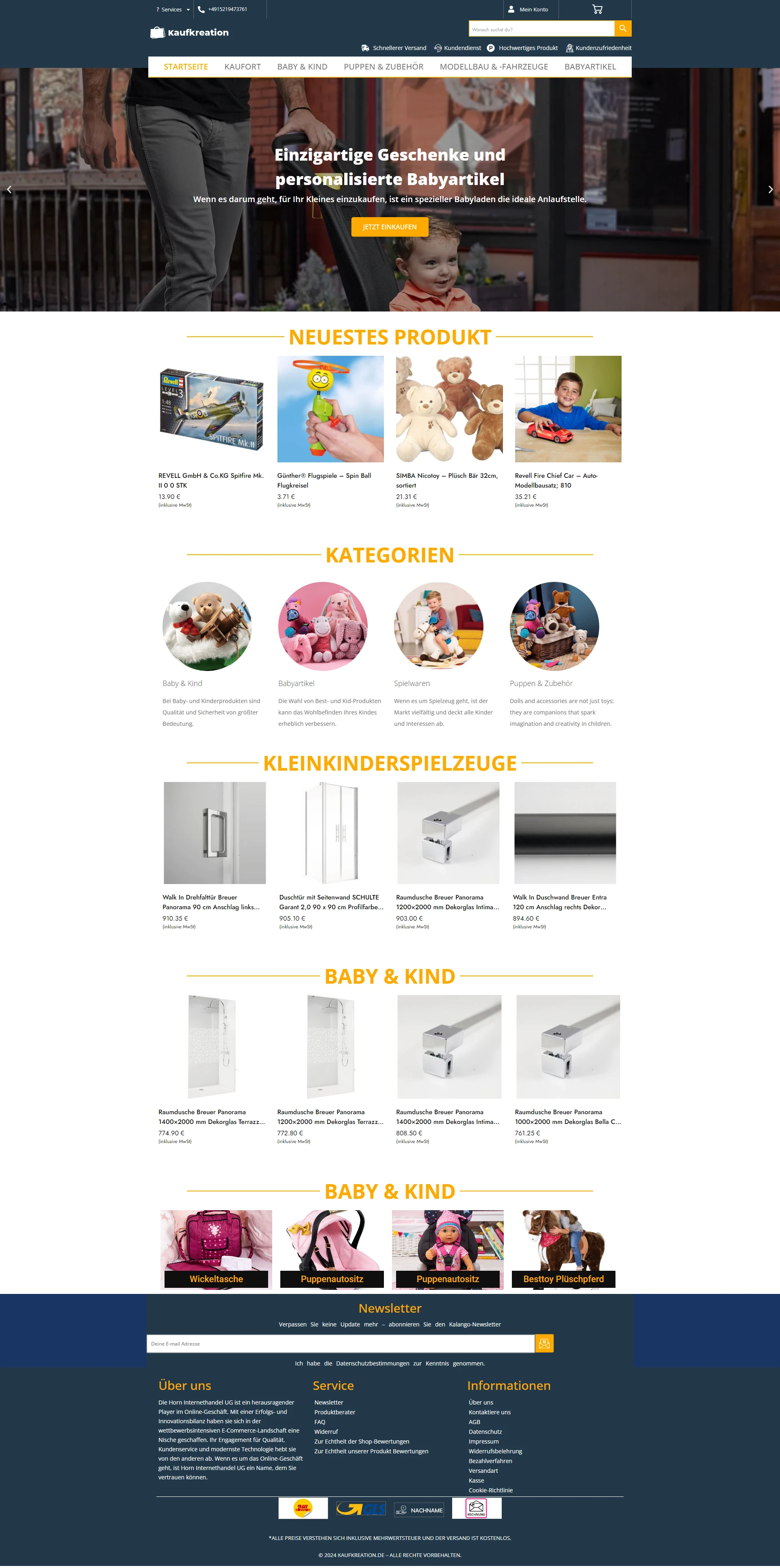 This website offers unique and baby products, toys, and model kits. It features a wide range of items for babies, kids, and hobby enthusiasts in Germany.
