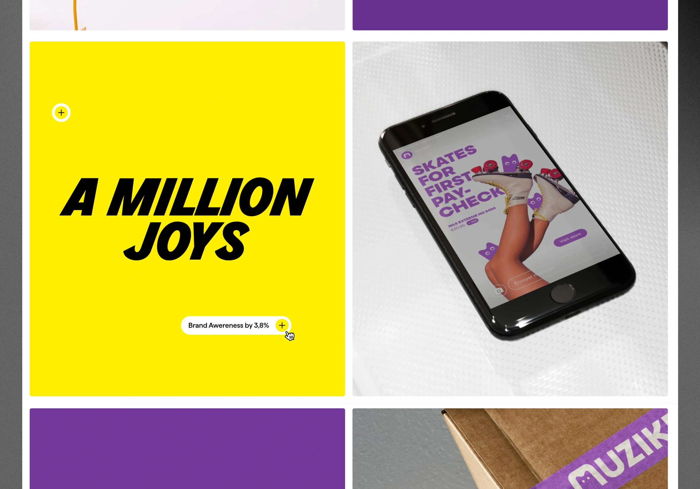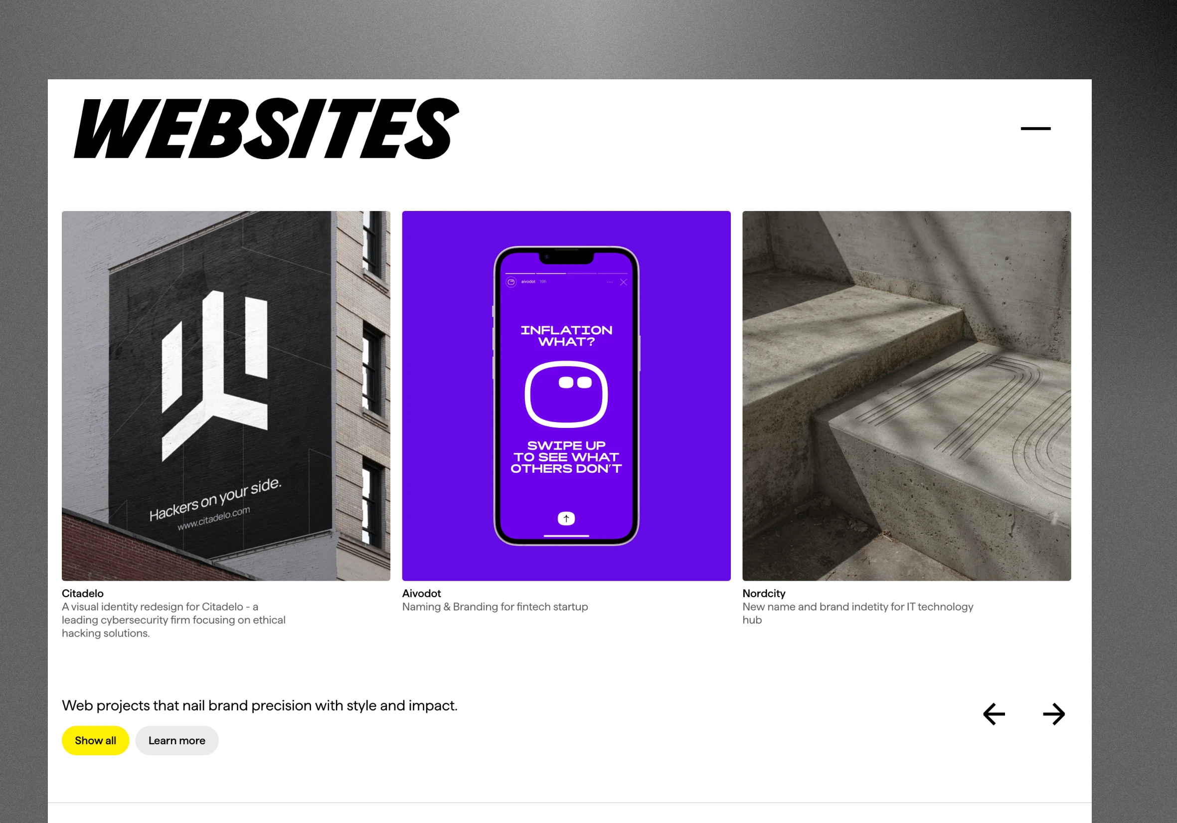 The site features a flexible case study template system with pre-designed modules, allowing their team to build customized presentation pages. Interactive elements include strategic hotspots across the site and distinctive hover animations on project cards. We enhanced user experience with Barba.js for smooth page transitions.
