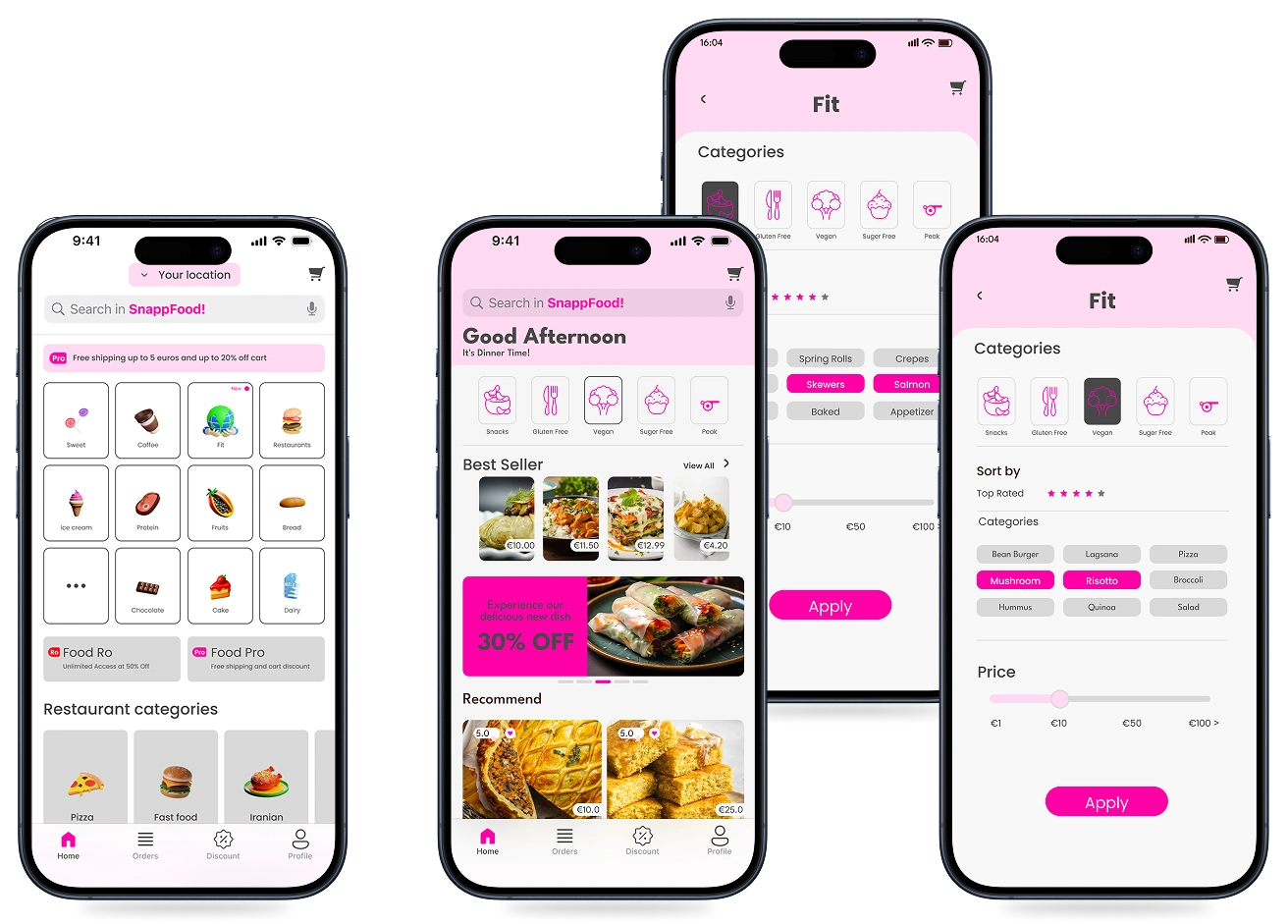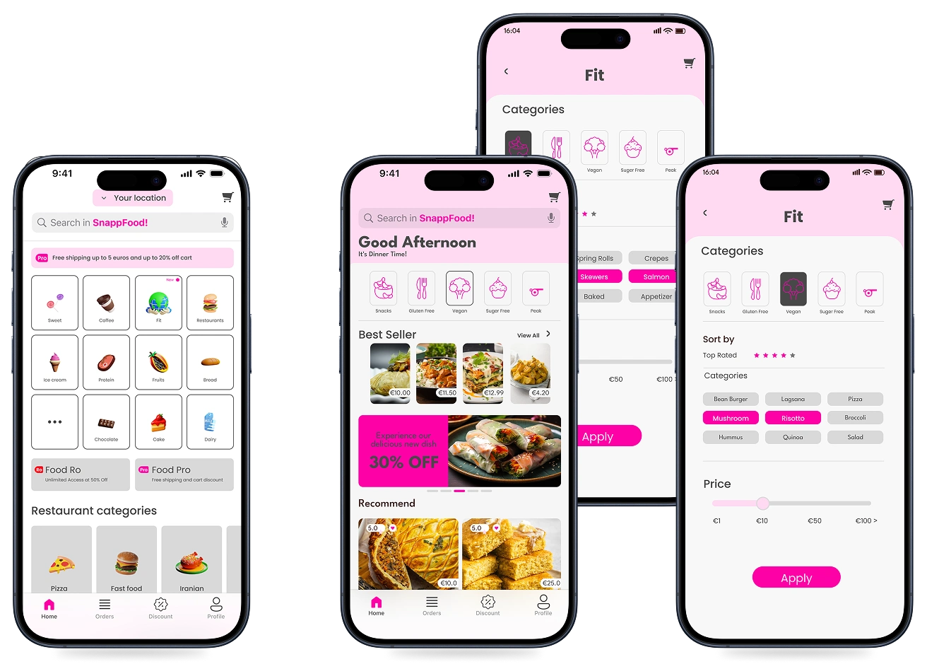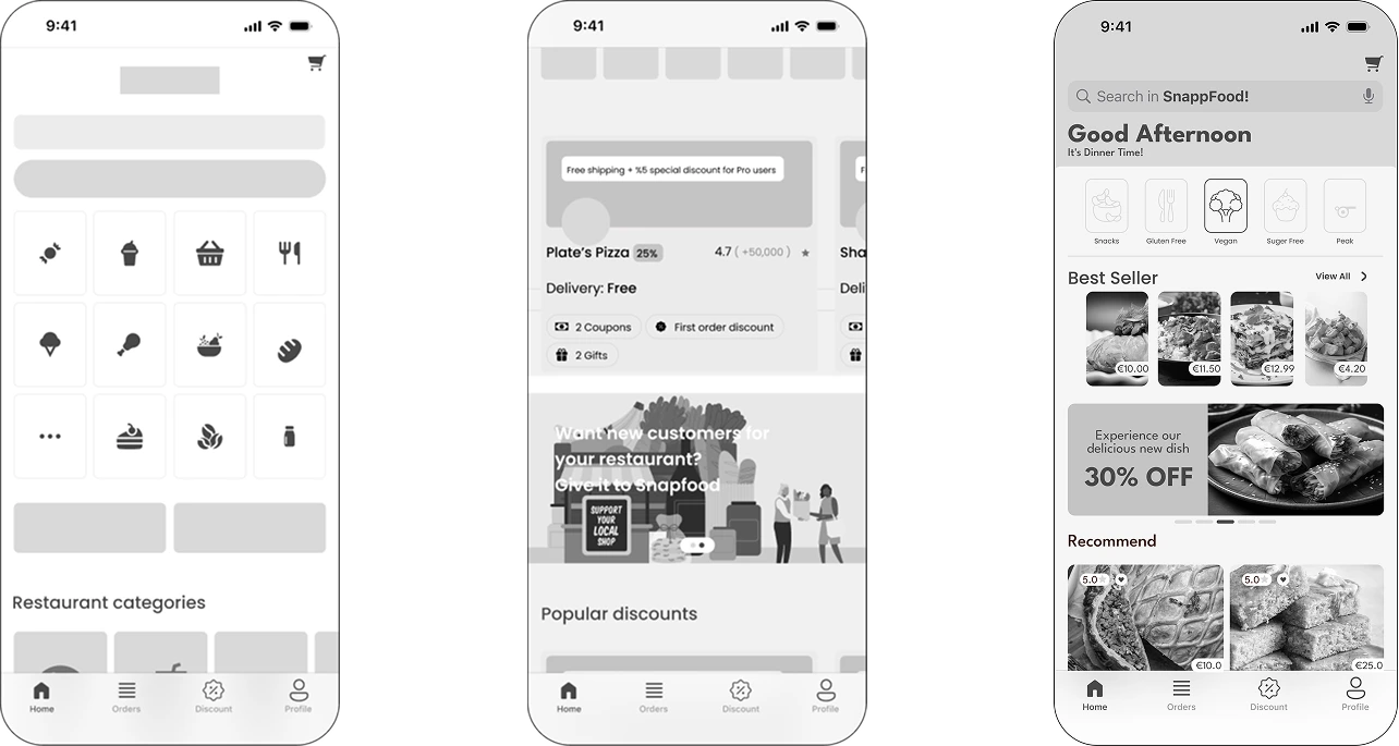 Through my research, I identified that food-delivery apps often fail to support users with specific dietary needs such as gluten-free diets, medical conditions, or health-focused preferences. Options exist, but they are buried in menus, poorly labeled, or difficult to compare—leading to frustration for users and increased food waste for businesses. To bridge this gap, I introduced a new category within the SnappFood app called “Fit.”