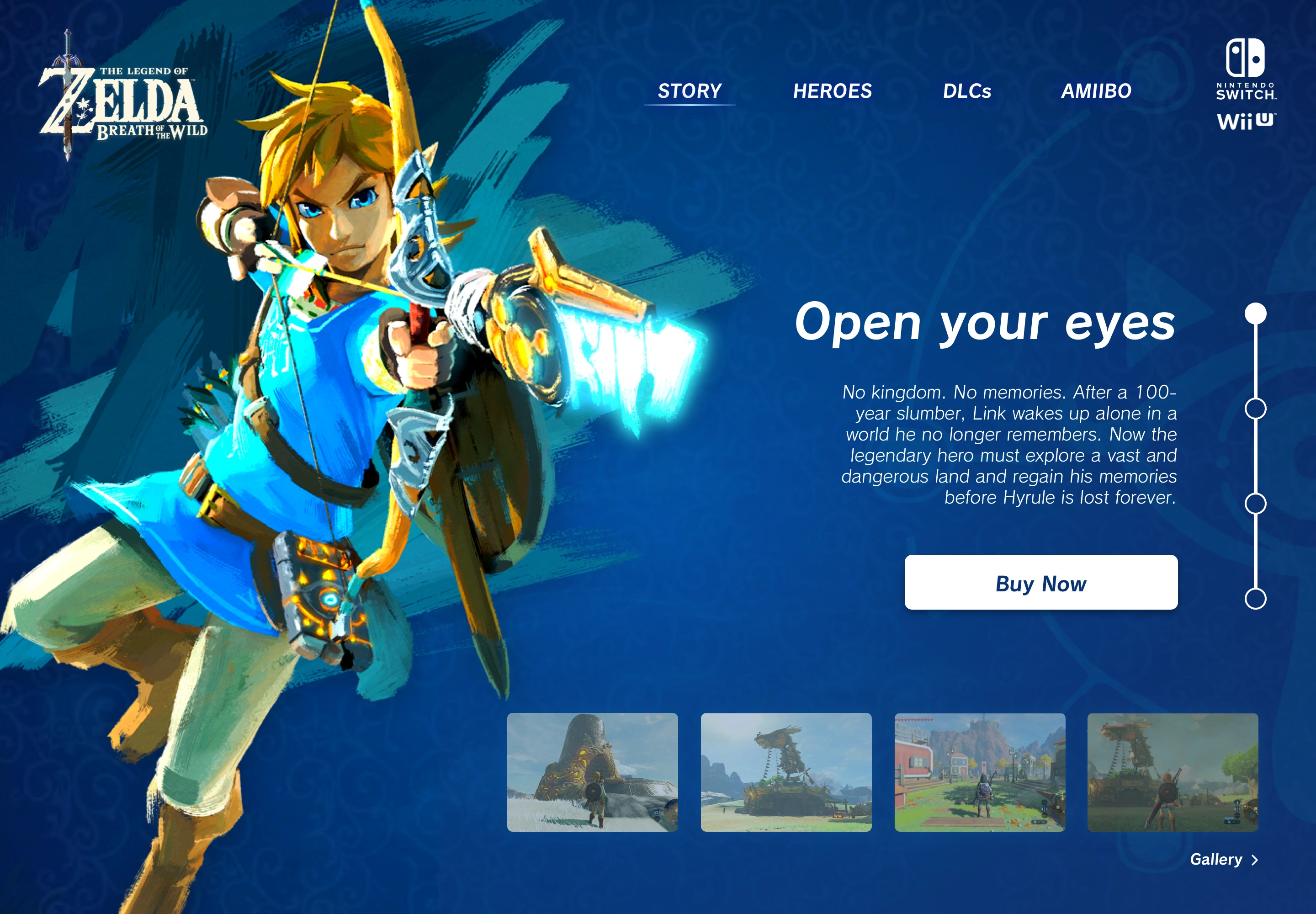 A passion project where I wanted to redesign an existing hero section of the video game: The Legend of Zelda. Legend of Zelda promo page