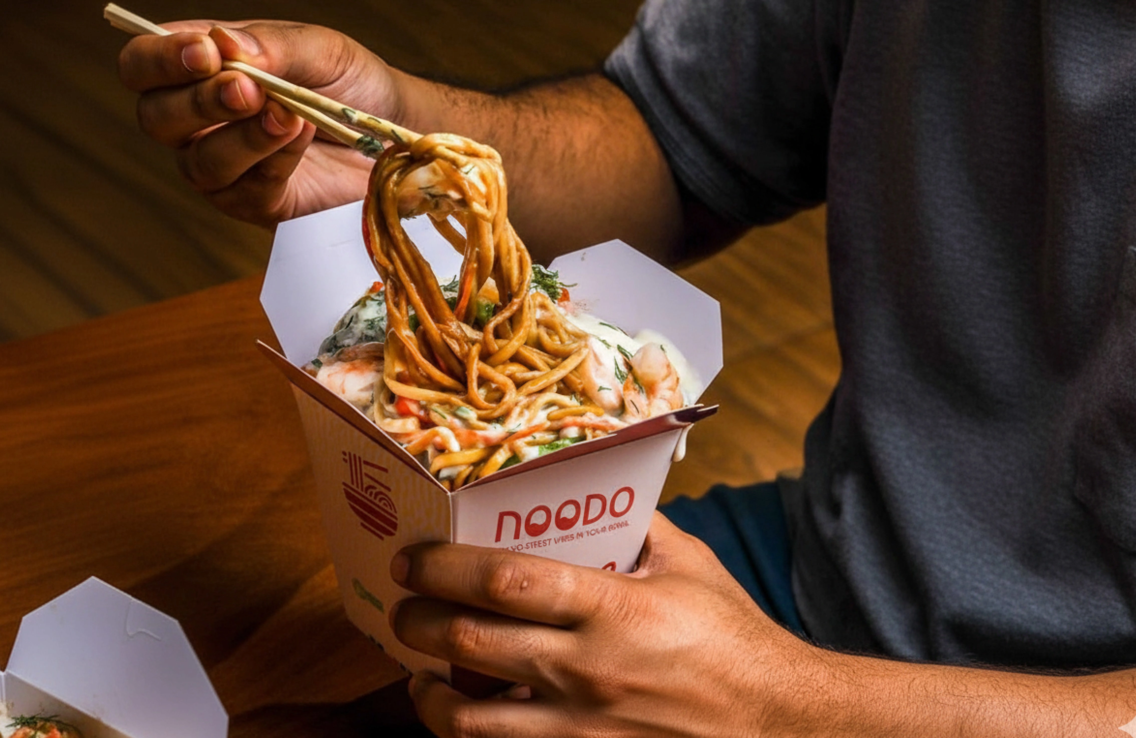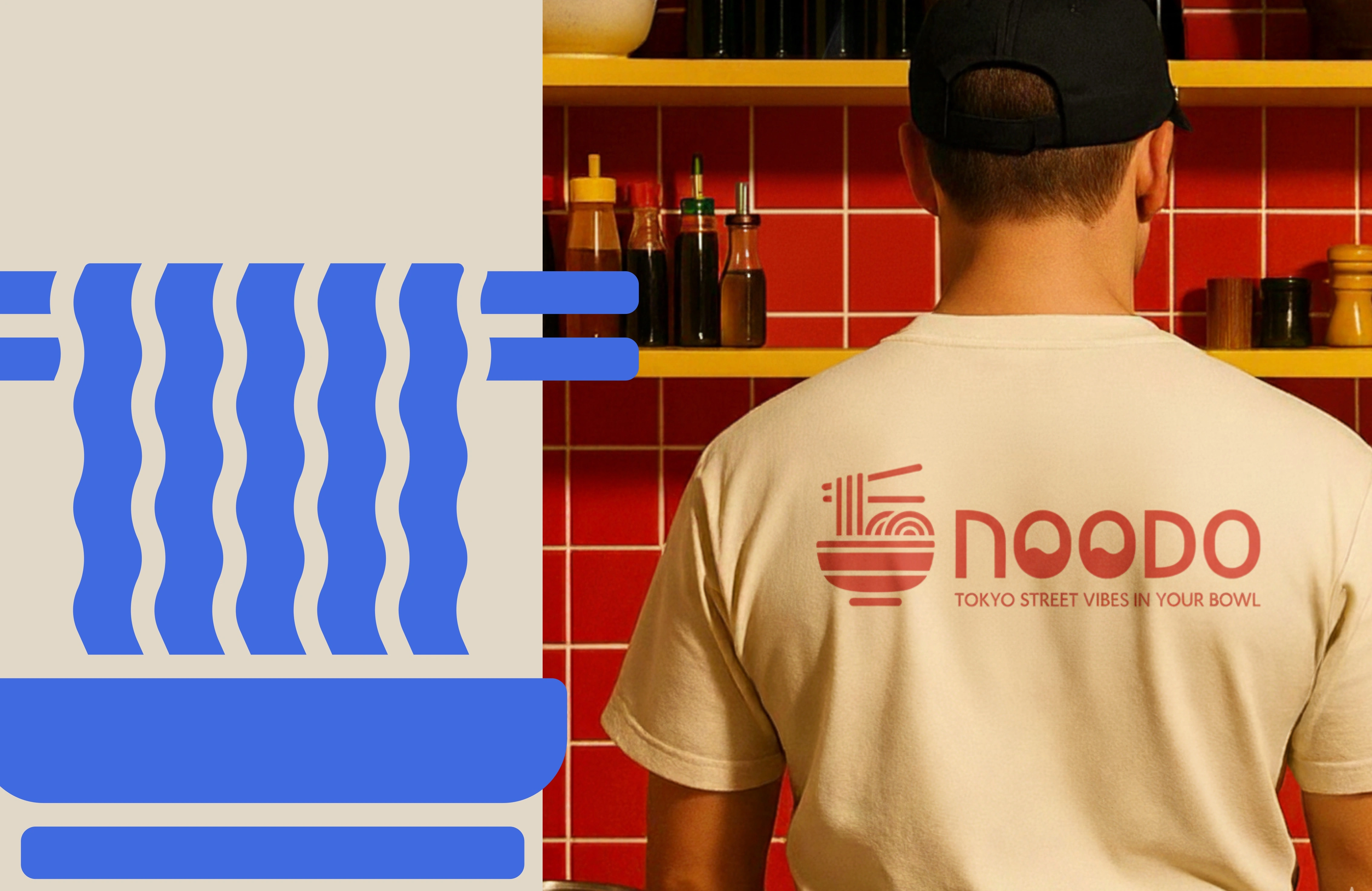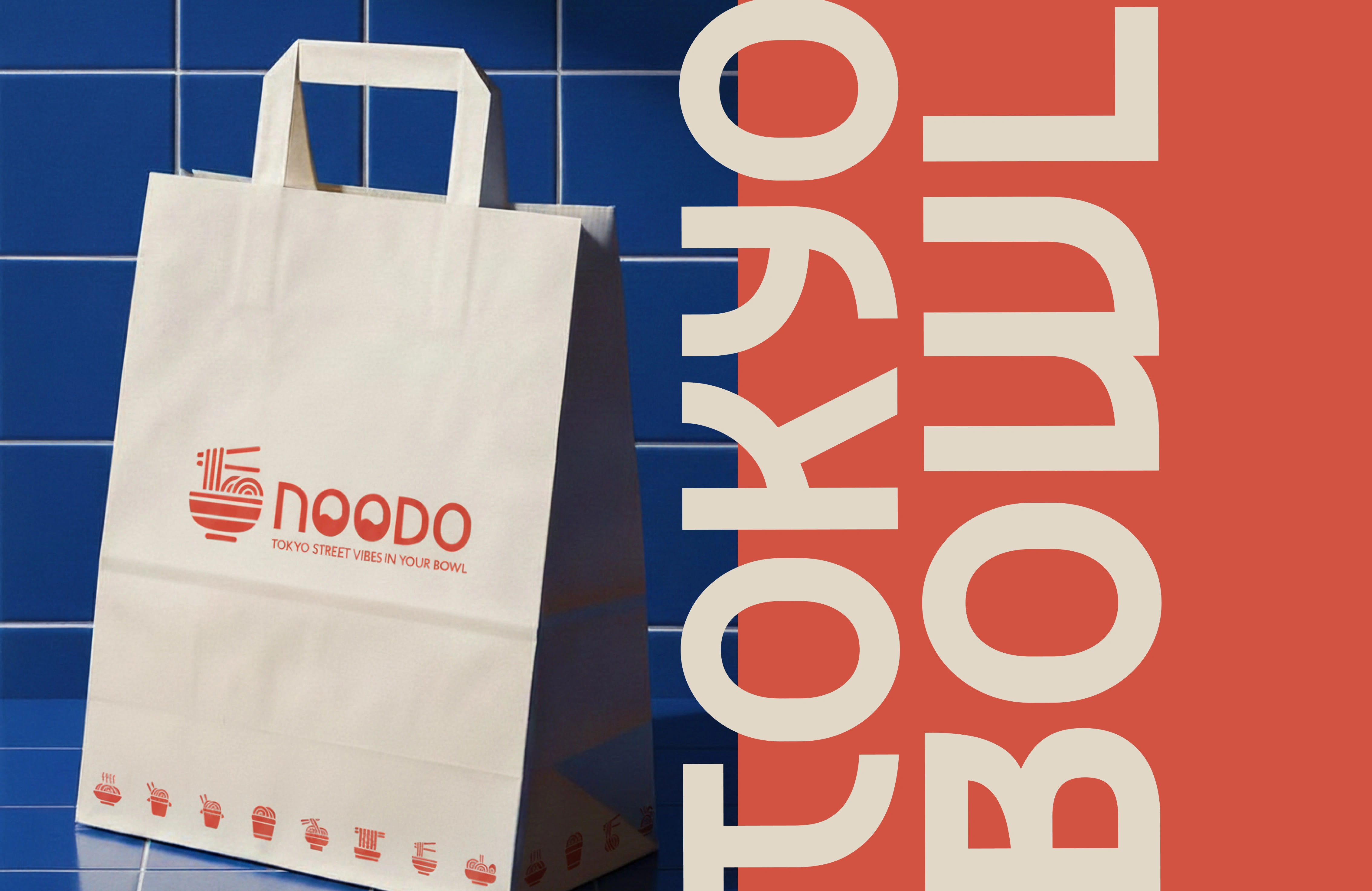 A complete visual identity for Noodo, a Tokyo-inspired noodle restaurant. The goal was to capture the energy of street food in a modern and appetizing brand.