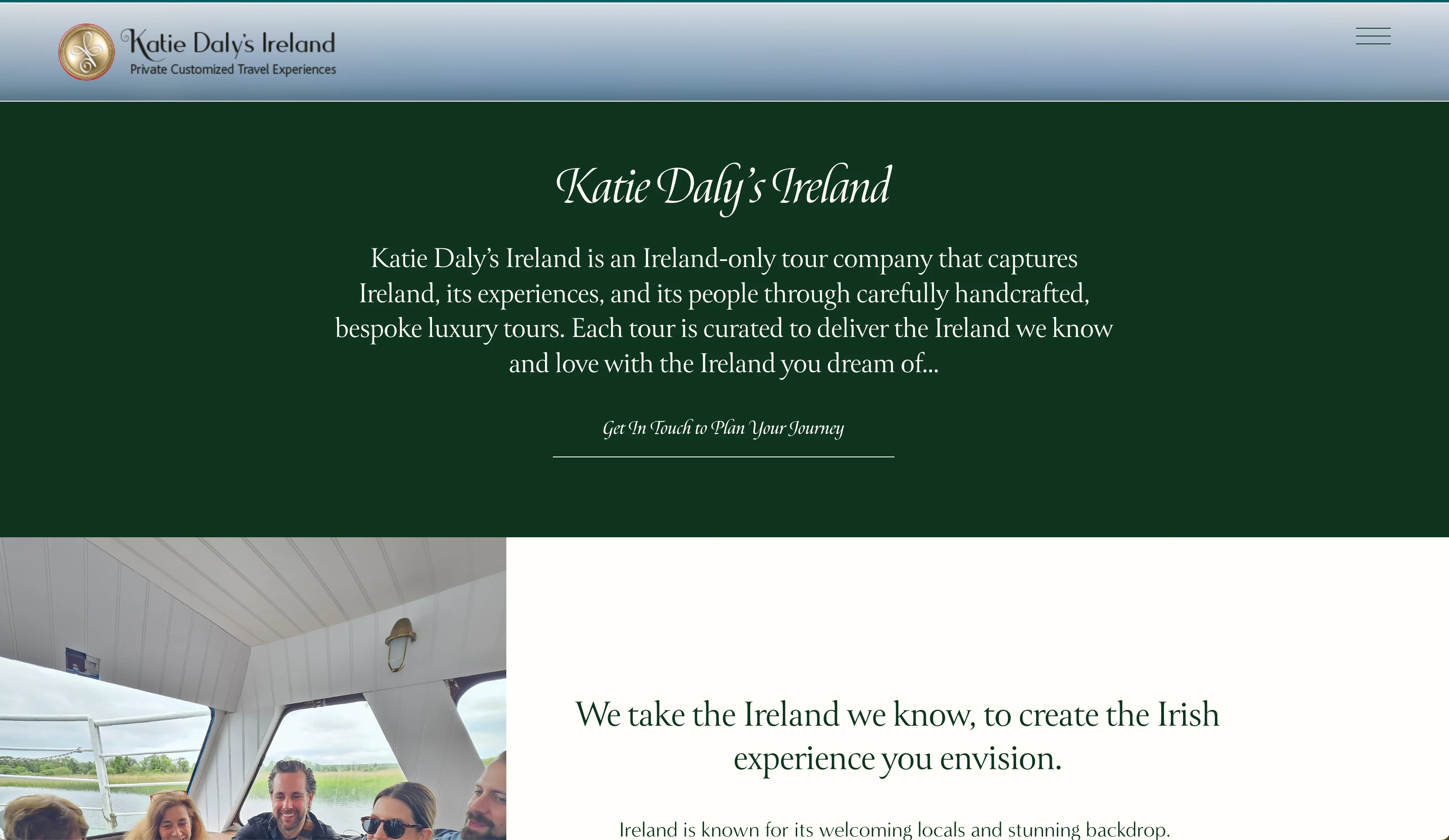 A website redesign for a full-service Ireland-centric travel agency, Katie Daly's Ireland.
