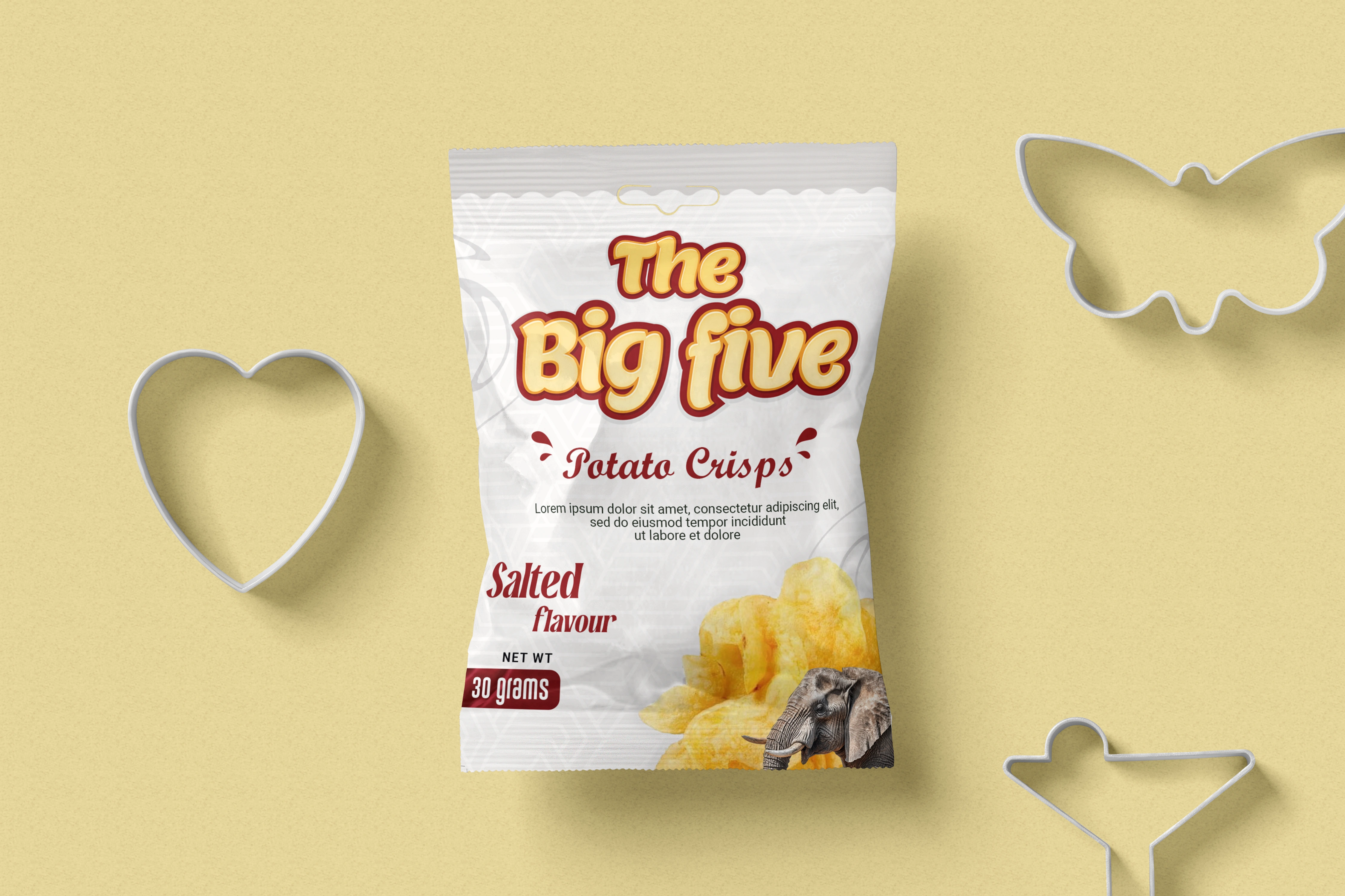 I created the design for an upcoming potato chip company (The Big five) packaging bags.