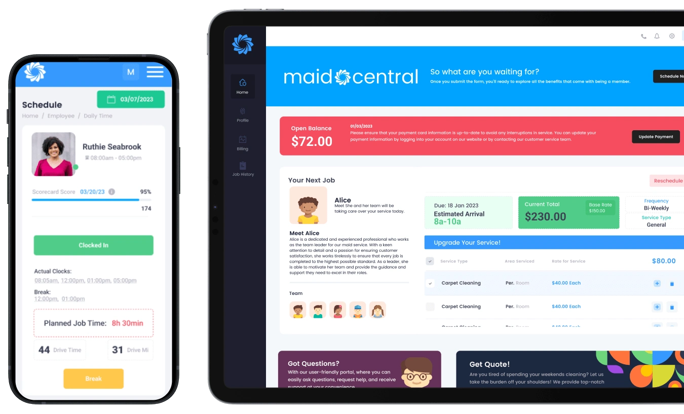 I designed the UX and interface system for Maid Central, a SaaS platform that helps residential cleaning businesses manage operations, sales, and staffing. From user flows to dashboard UI, I helped translate complex functionality into a simple, usable experience that supported the company’s 300% growth.