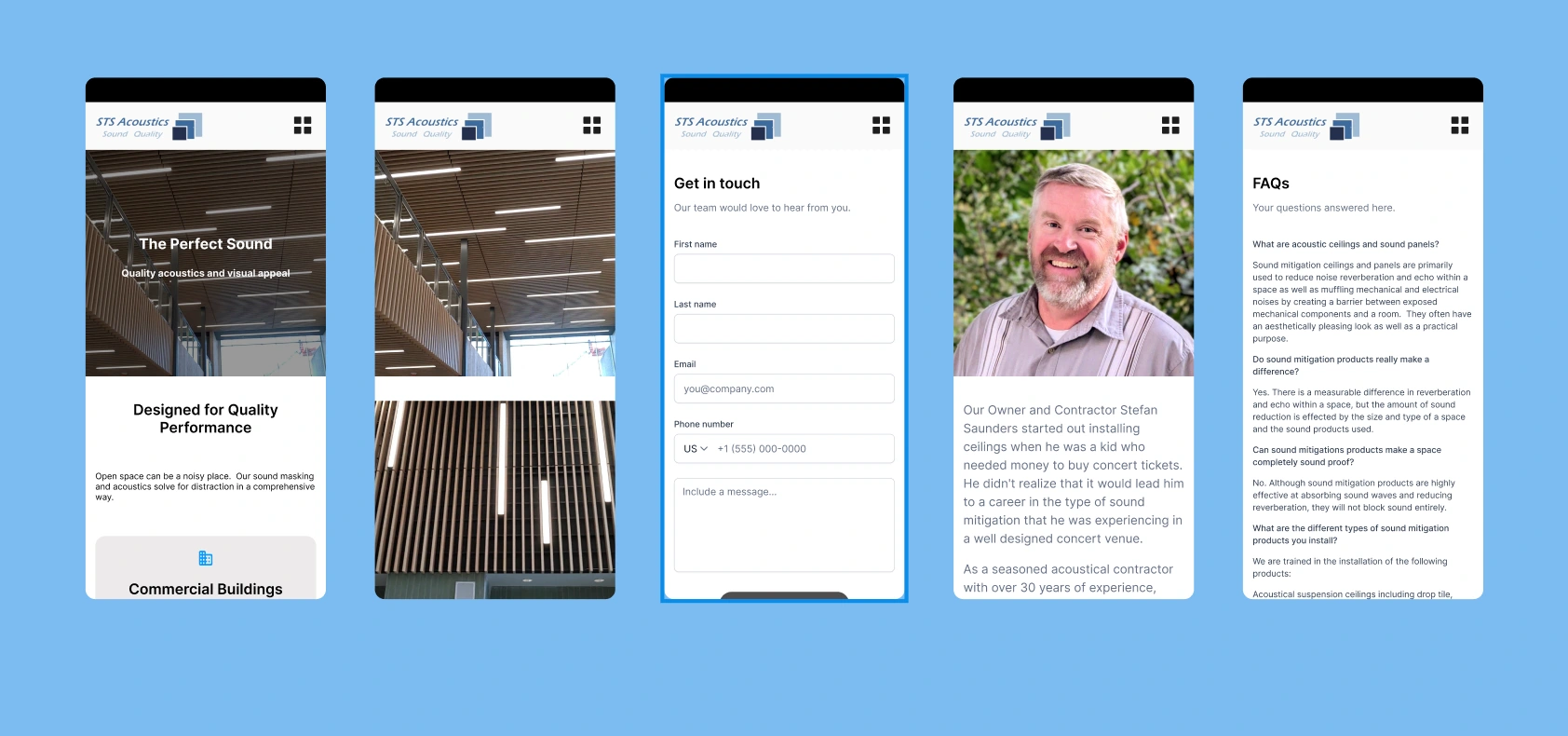 STS Acoustics had not yet fully defined their digital brand identity, making it a true from the ground up effort in establishing a cohesive design language and digital footprint that matched the work they've been doing in the acoustic space since 2008. With the project cutting into both the Thanksgiving & Christmas holiday and every team member being in different locations, weekly meetings around the holidays were held to iron out any questions/concerns building true collaboration & a quality product.