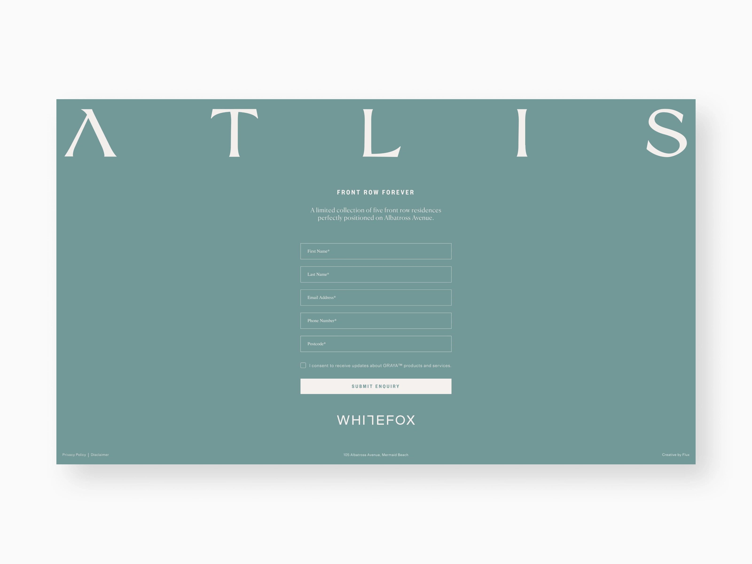 ATLIS is a limited collection of five "front row" residences on Albatross Avenue. I designed a minimalist waitlist page for GRAYA™ to build exclusivity and capture high-intent inquiries ahead of the market debut.