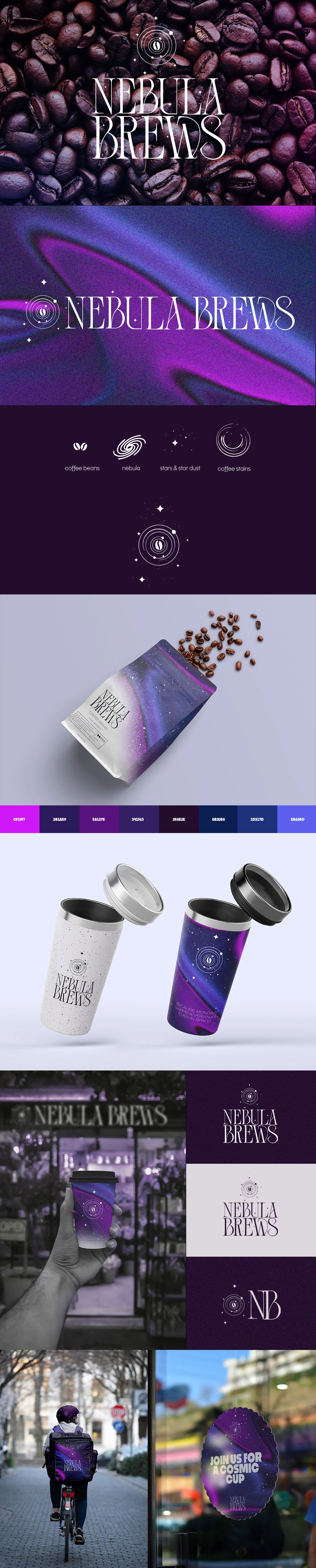 "Nebula Brews" is a specialty coffee brand that draws inspiration from the cosmos. It's all about blending the cosmic wonders with the rich aroma and flavors of coffee. Incorporate elements of space and nebulae into the design to reflect the brand's cosmic theme. Think swirling galaxies, stars, cosmic dust, etc.