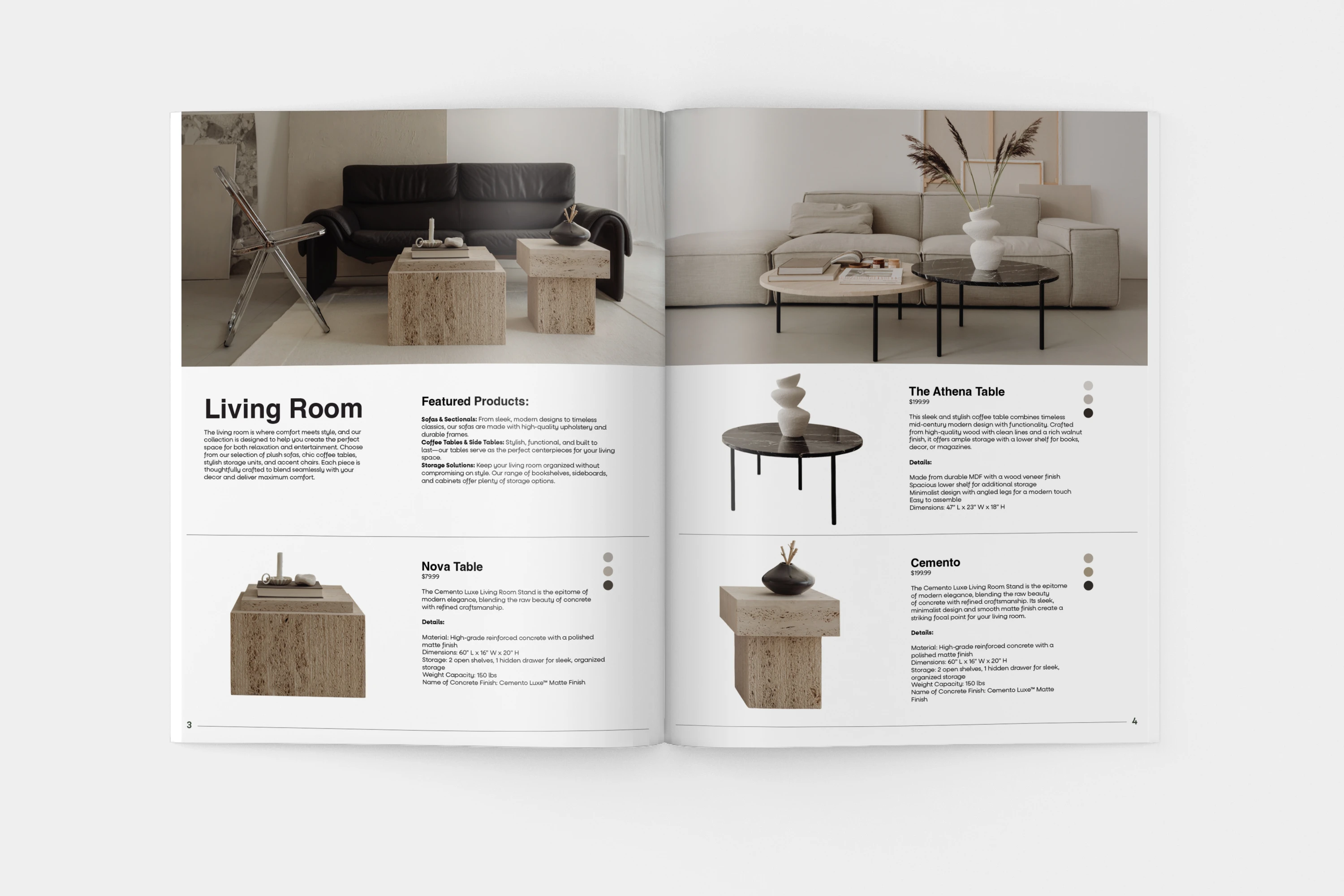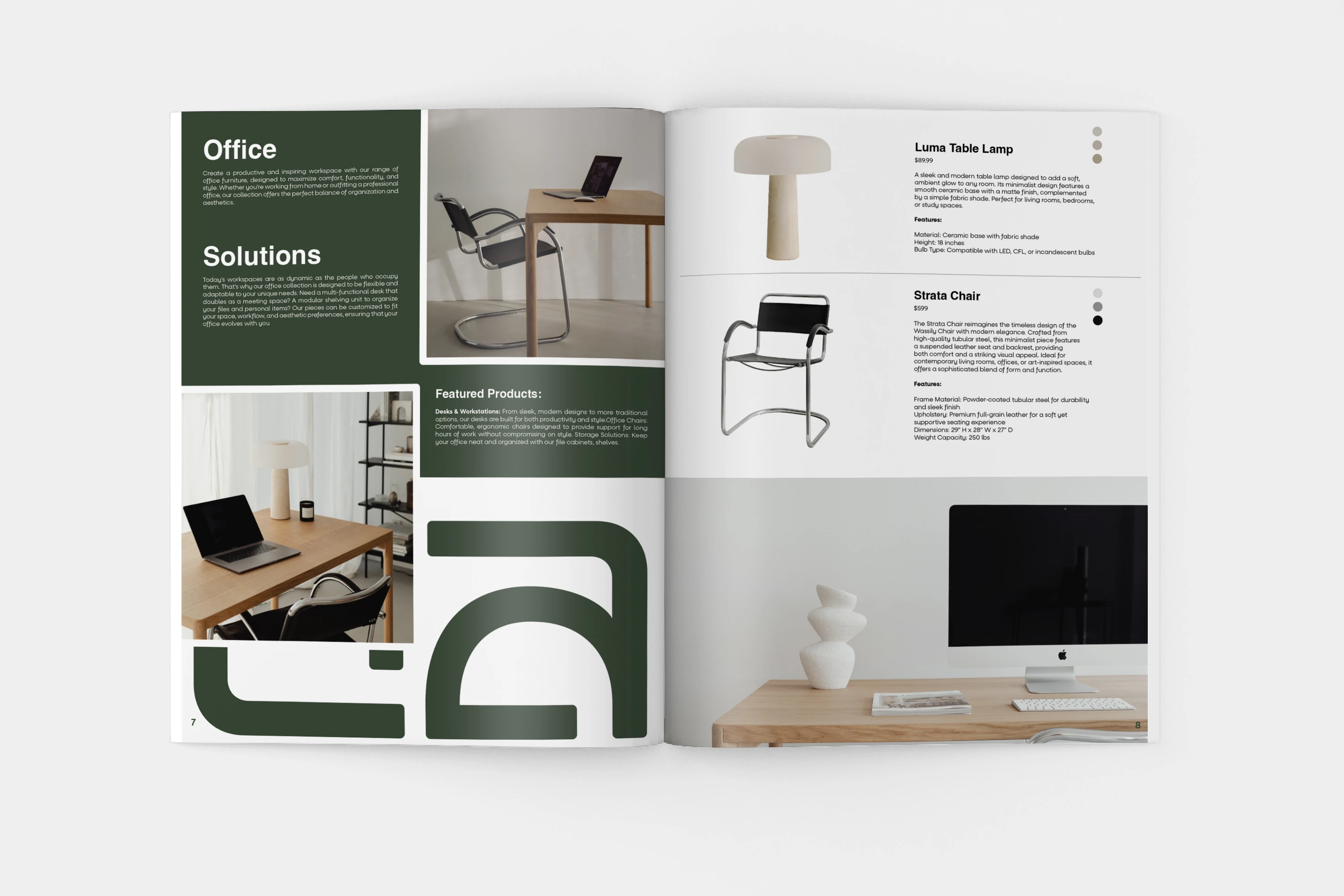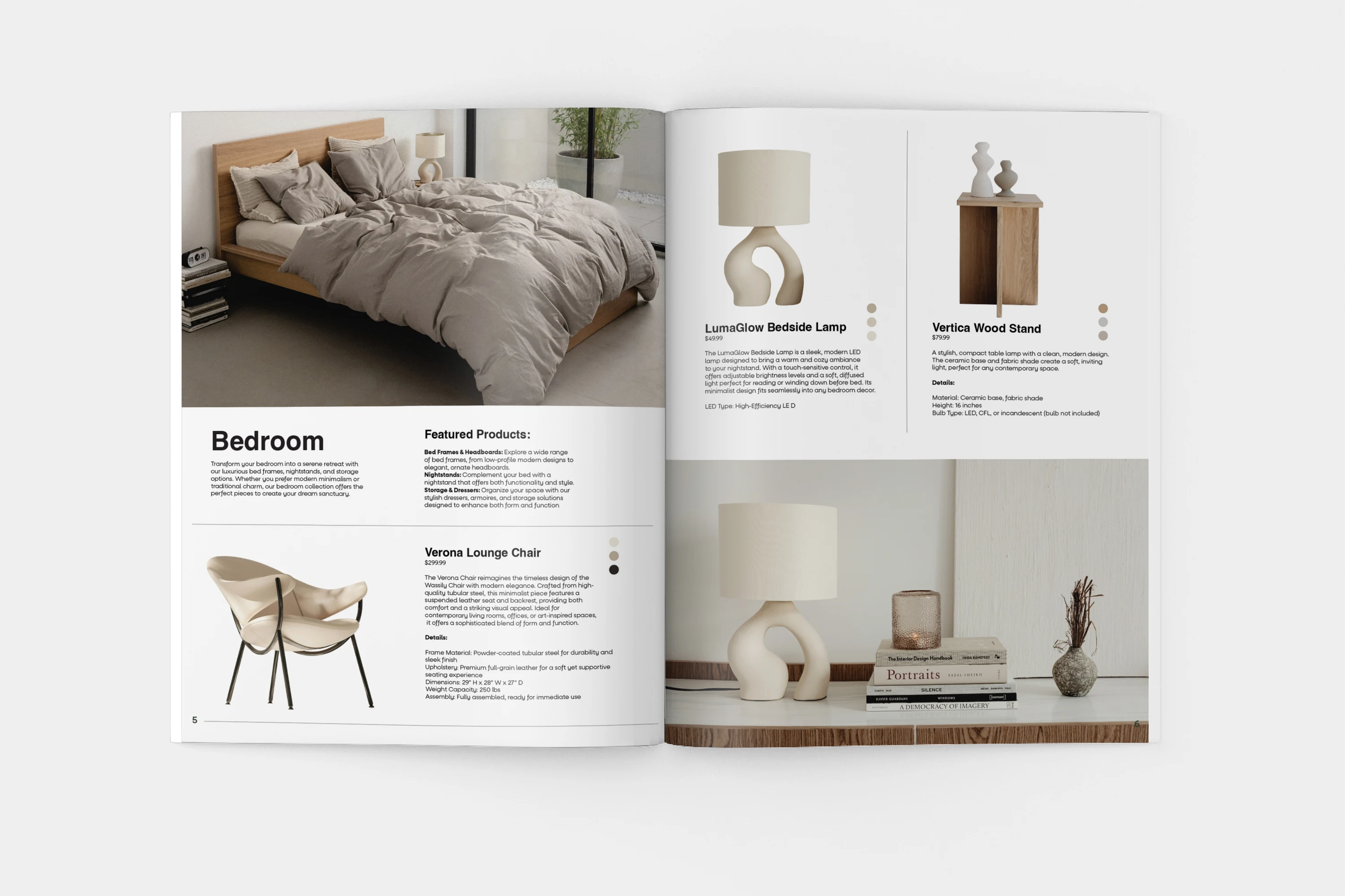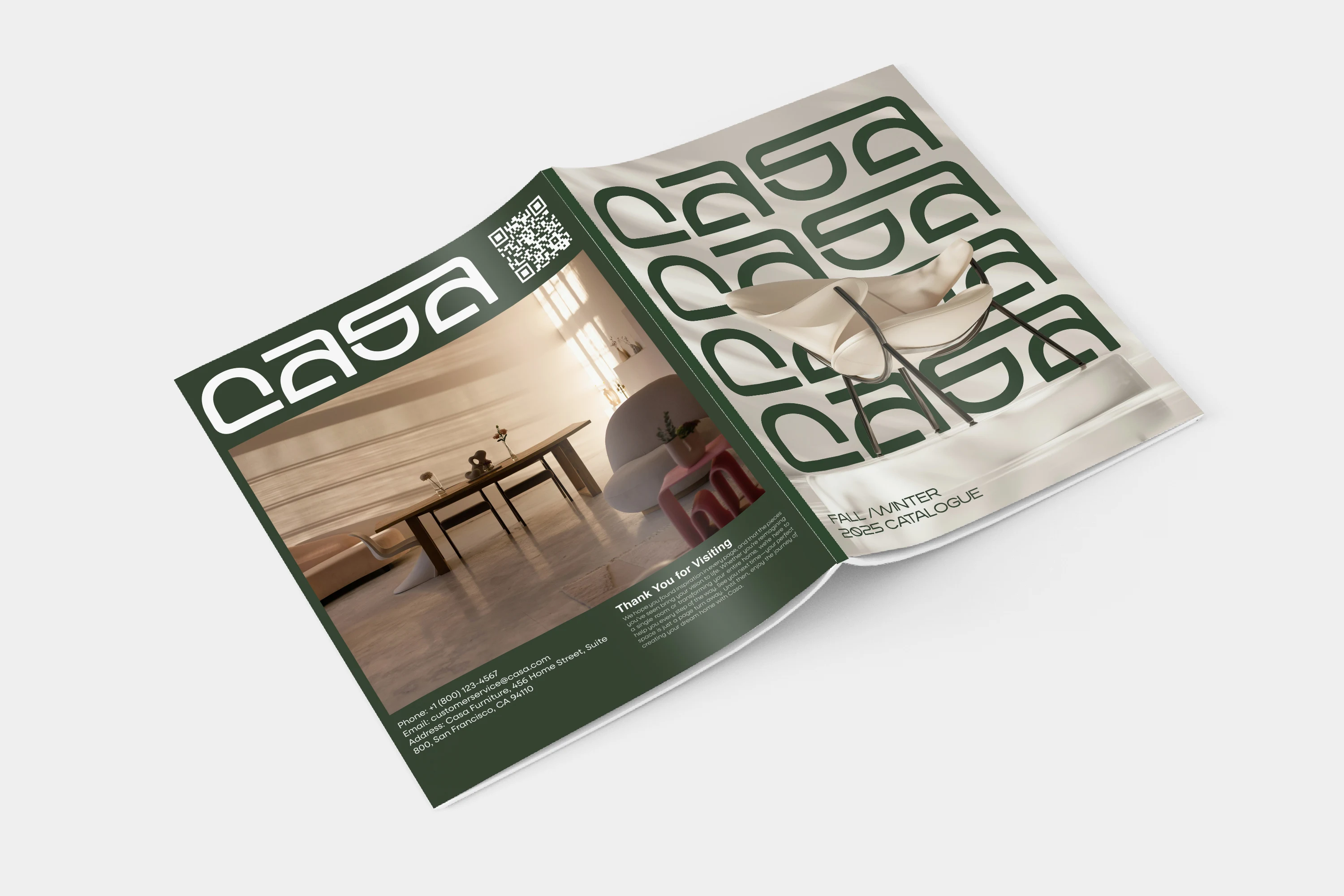 The word "Casa" originates from Spanish, Italian, and Latin, and is commonly used to refer to a person's house or home, evoking a sense of warmth, comfort, and personal space. The name conveys that the products offered are meant to enhance the home environment. This project is a furniture catalog I created for the fictional brief "Casa," featuring various layout designs, along with consistent imagery and design elements throughout.