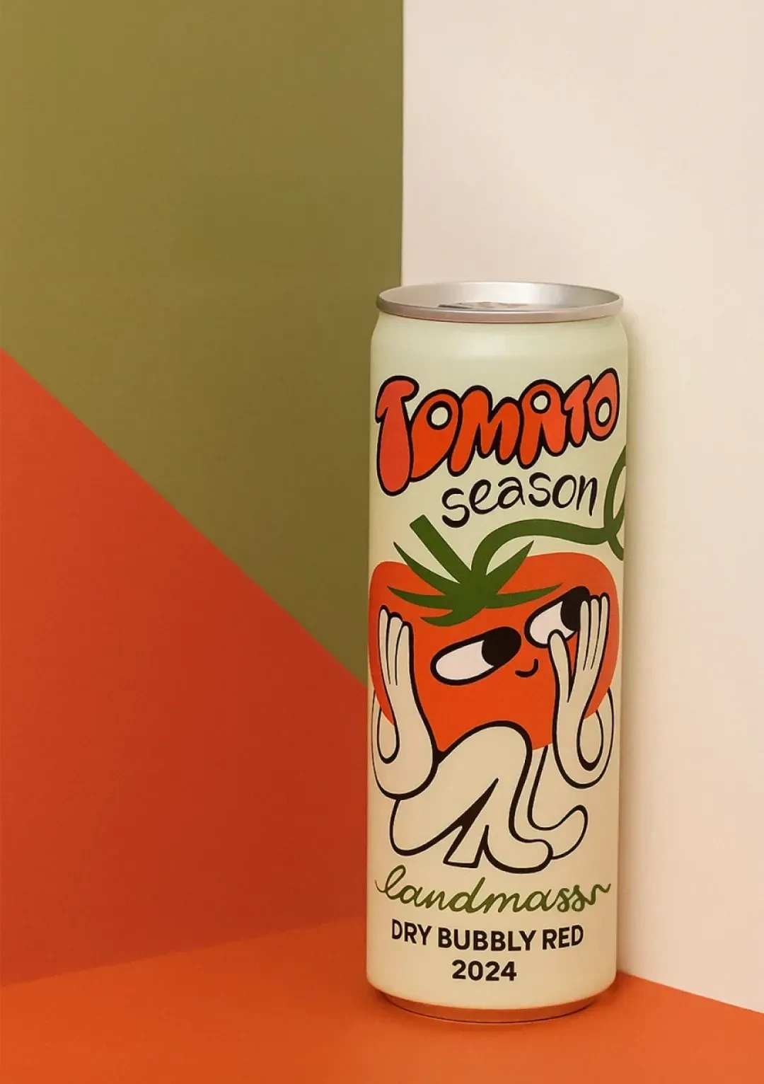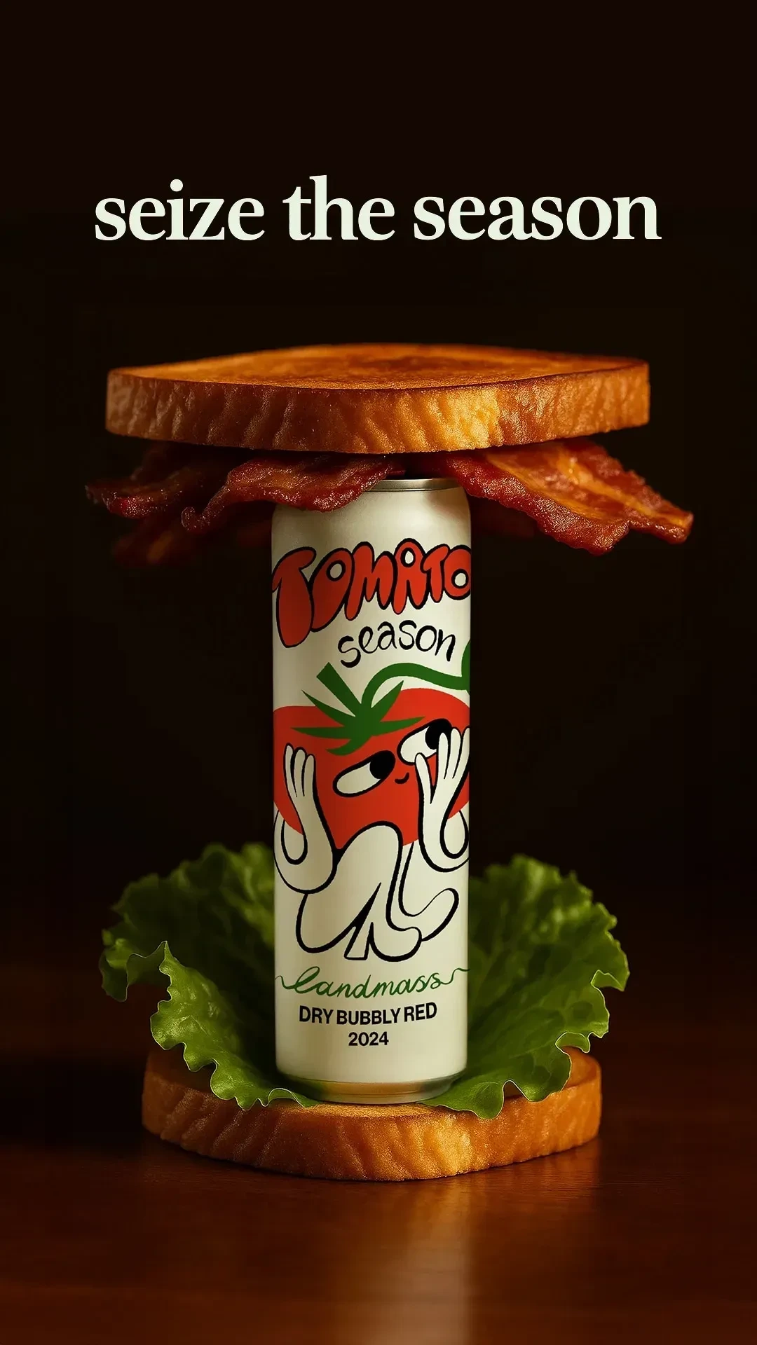 Landmass Wine’s Tomato Season is “juicy as a tomato, dry as a hot summer day.” They had the label design, and I built everything else — from realistic product mockups and bold studio photography to playful animations, social graphics, and video snippets — all created with AI and finished by hand after years of honing my approach.