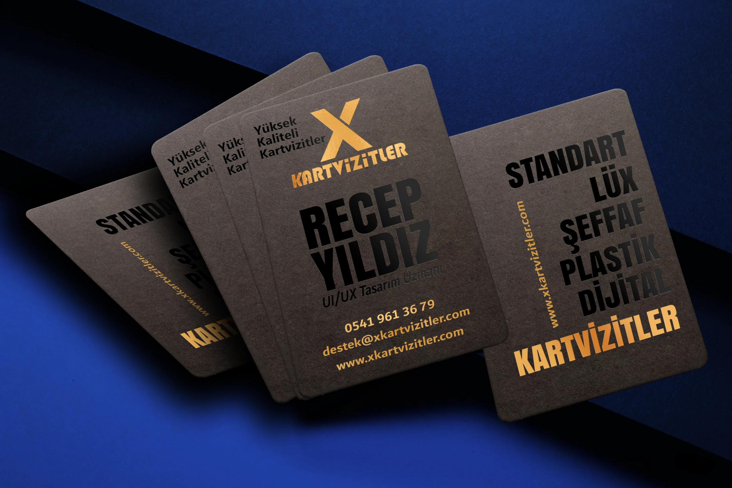 I designed premium foil business cards on suede-textured fancy paper. By combining the soft-touch surface with glossy foil details, I created an elegant, eye-catching, and high-end brand presentation.