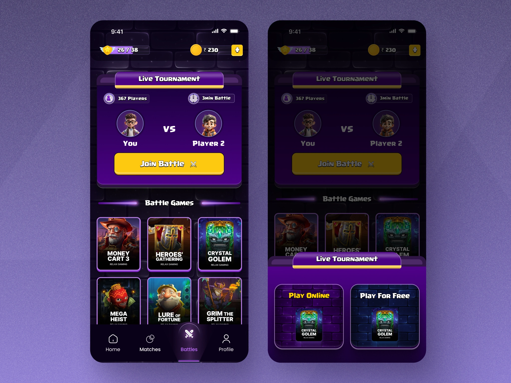 Designed a competitive gaming app where users battle in real time and win real cash. The client needed a sleek, high-converting UX for battles, tournaments, wallet management, and trust-building โ all wrapped in a fast, mobile-first experience.