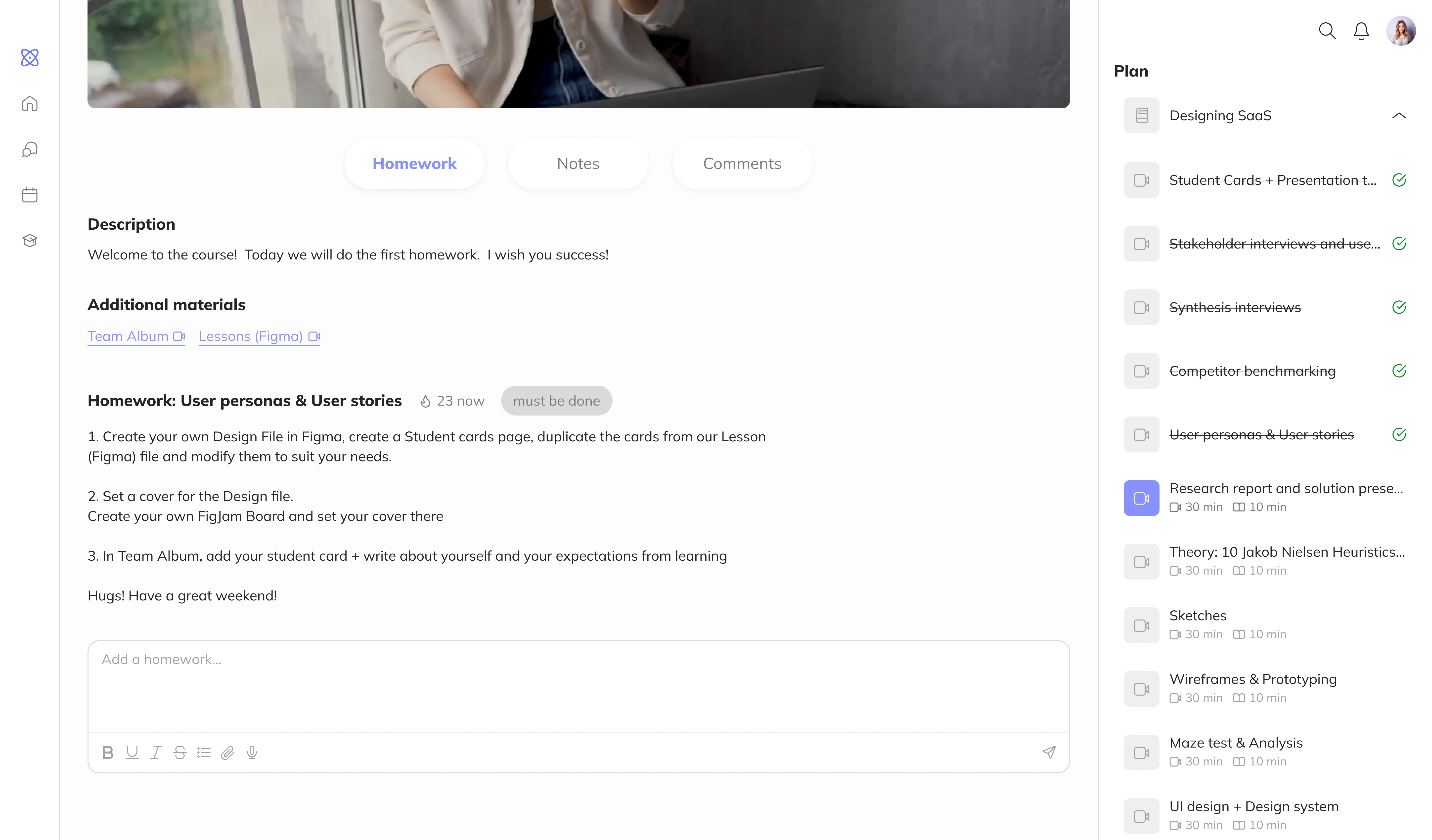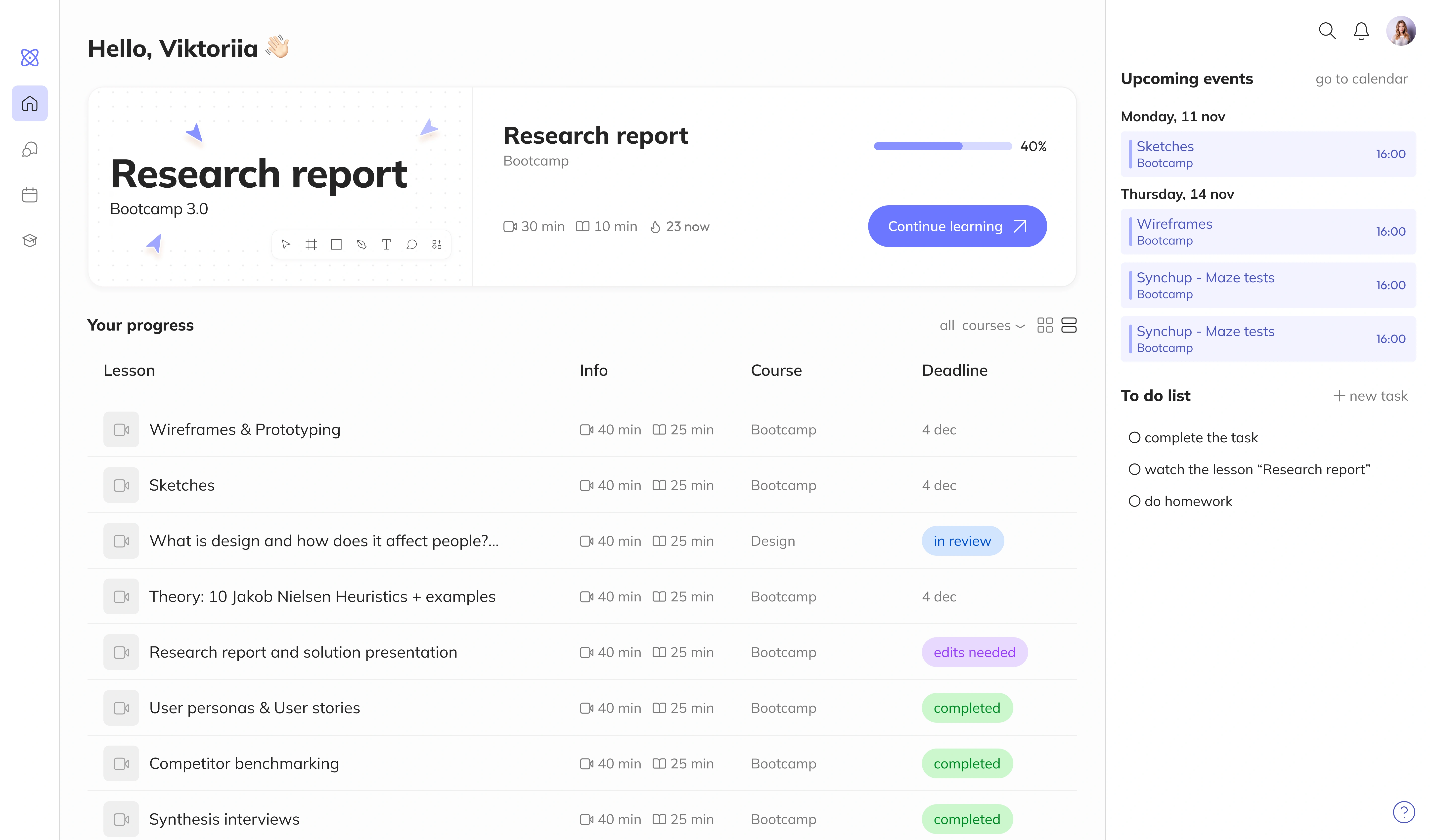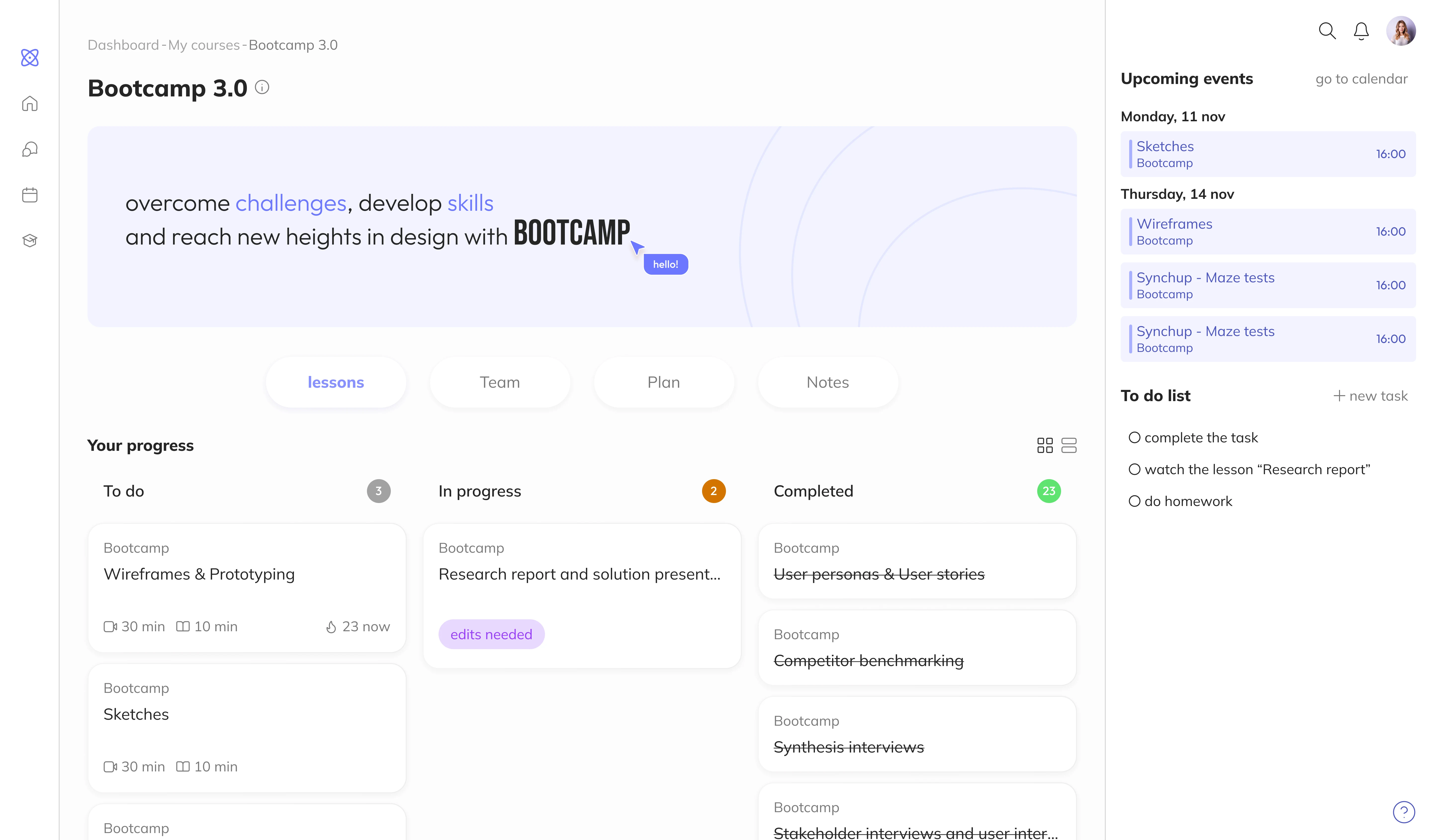 Description Students Hub is a platform where all of a student’s courses are collected in one place. It allows convenient organization of lessons, completing assignments, and receiving feedback.
