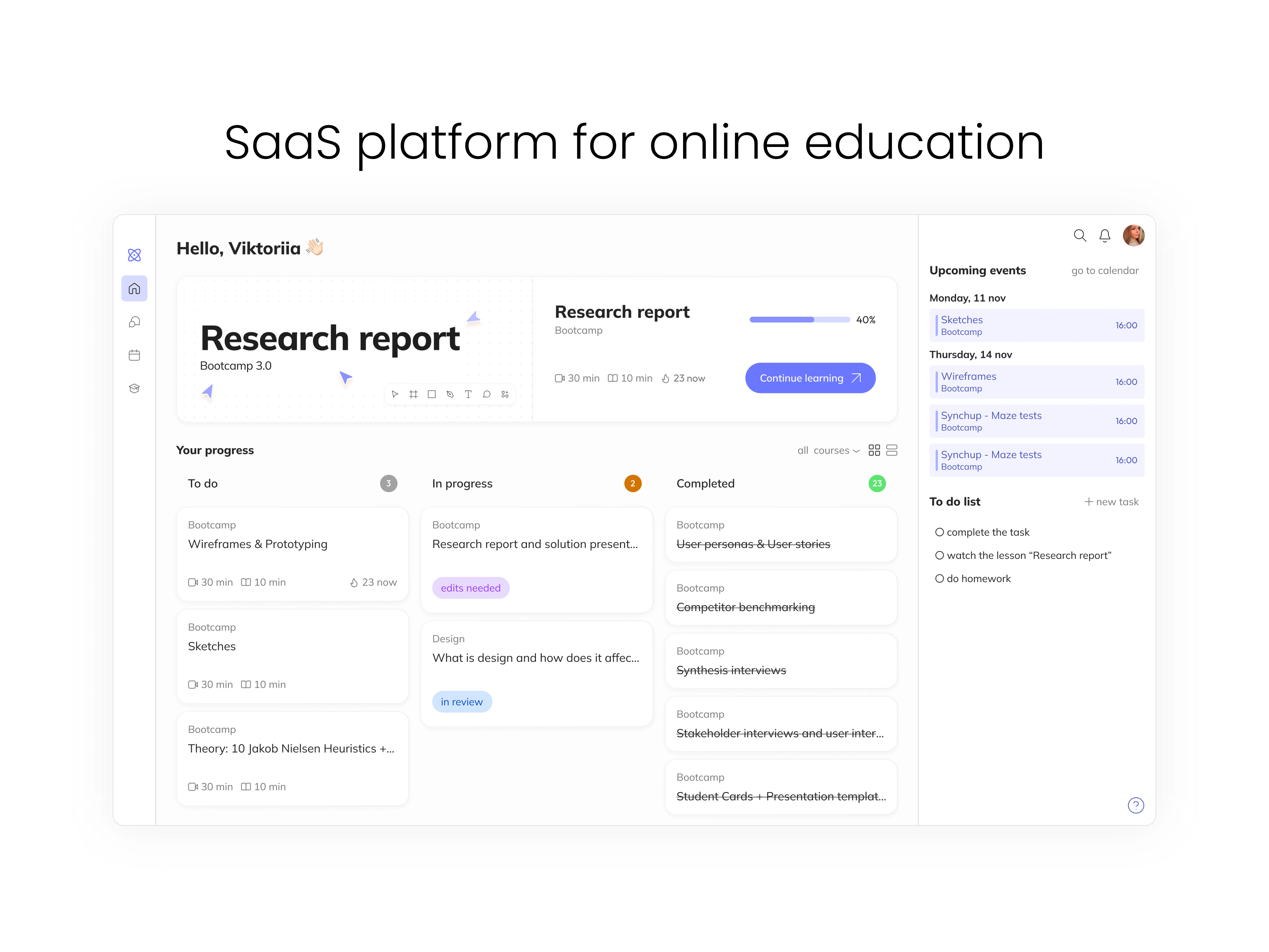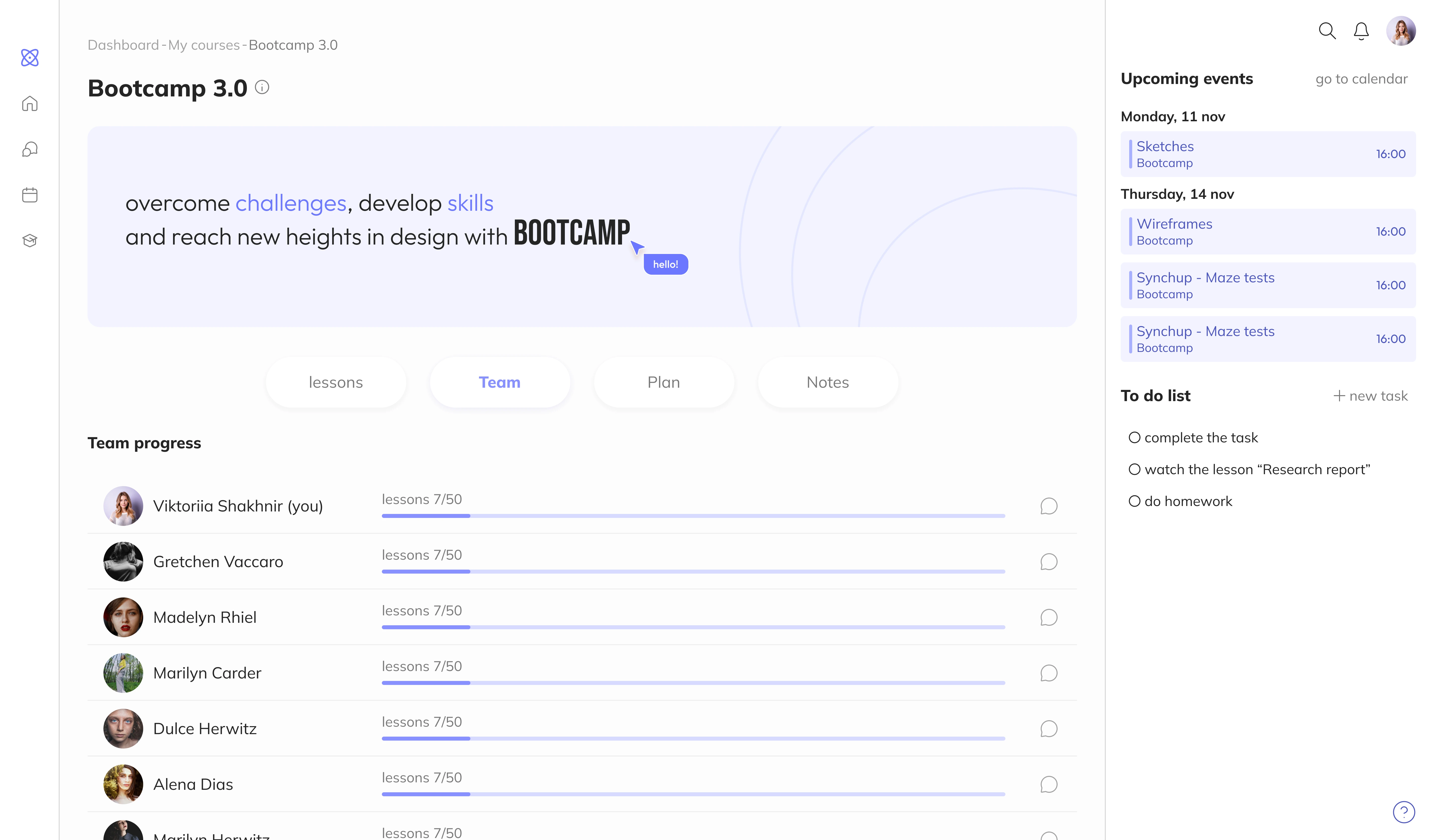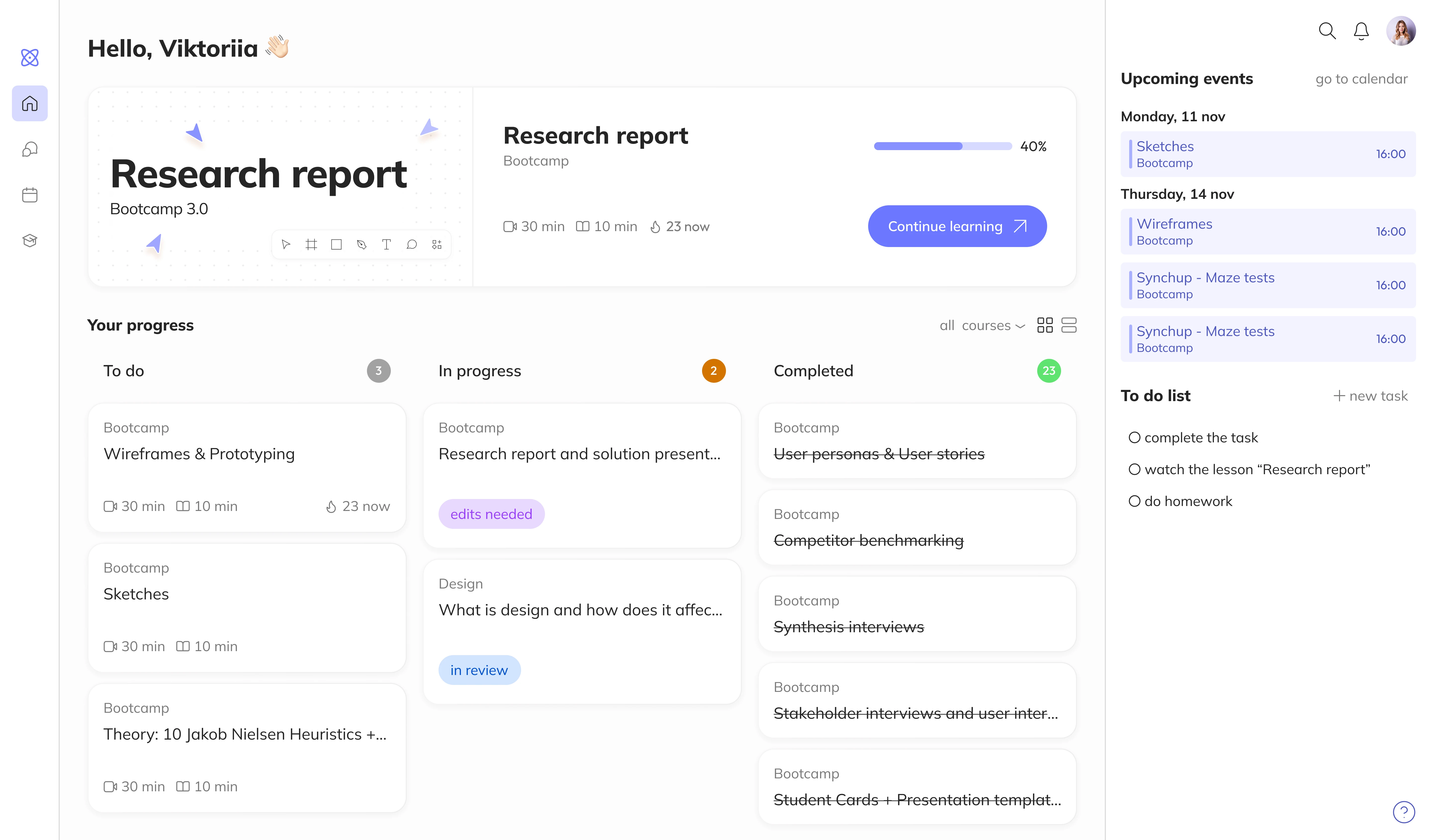 Description Students Hub is a platform where all of a student’s courses are collected in one place. It allows convenient organization of lessons, completing assignments, and receiving feedback.