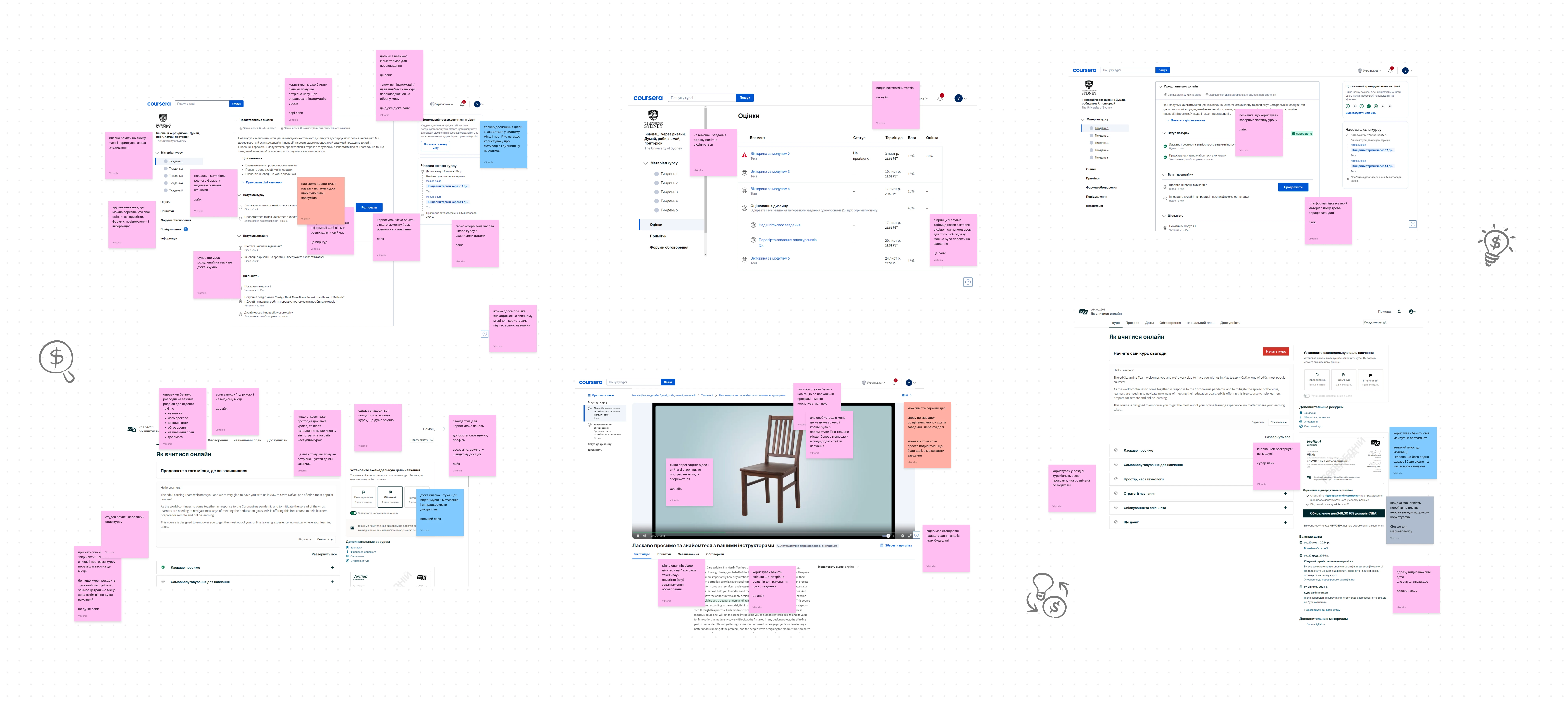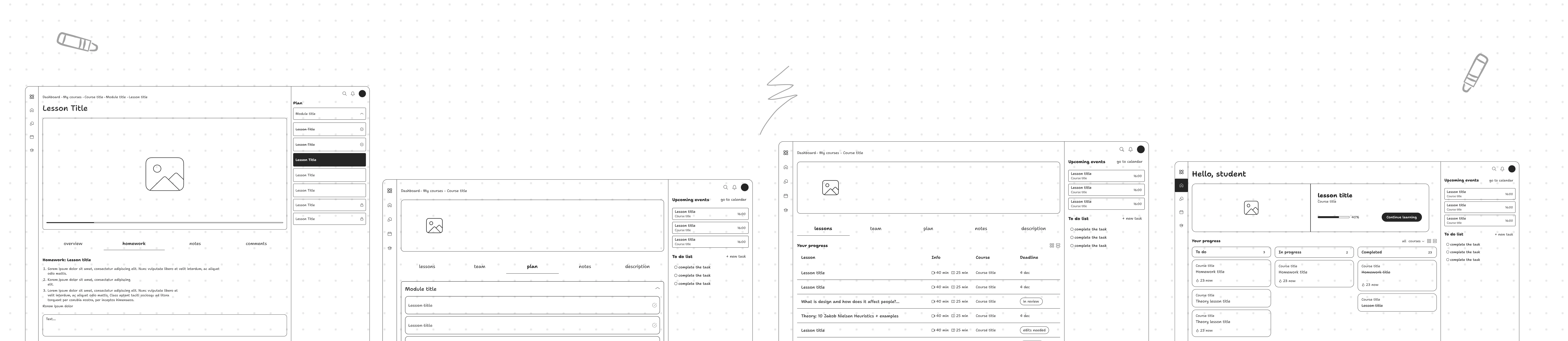 Early sketches of the learning platform exploring structure and layout ideas.