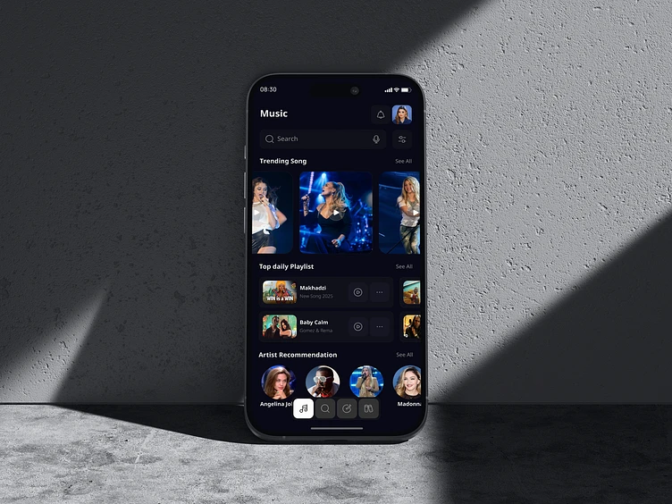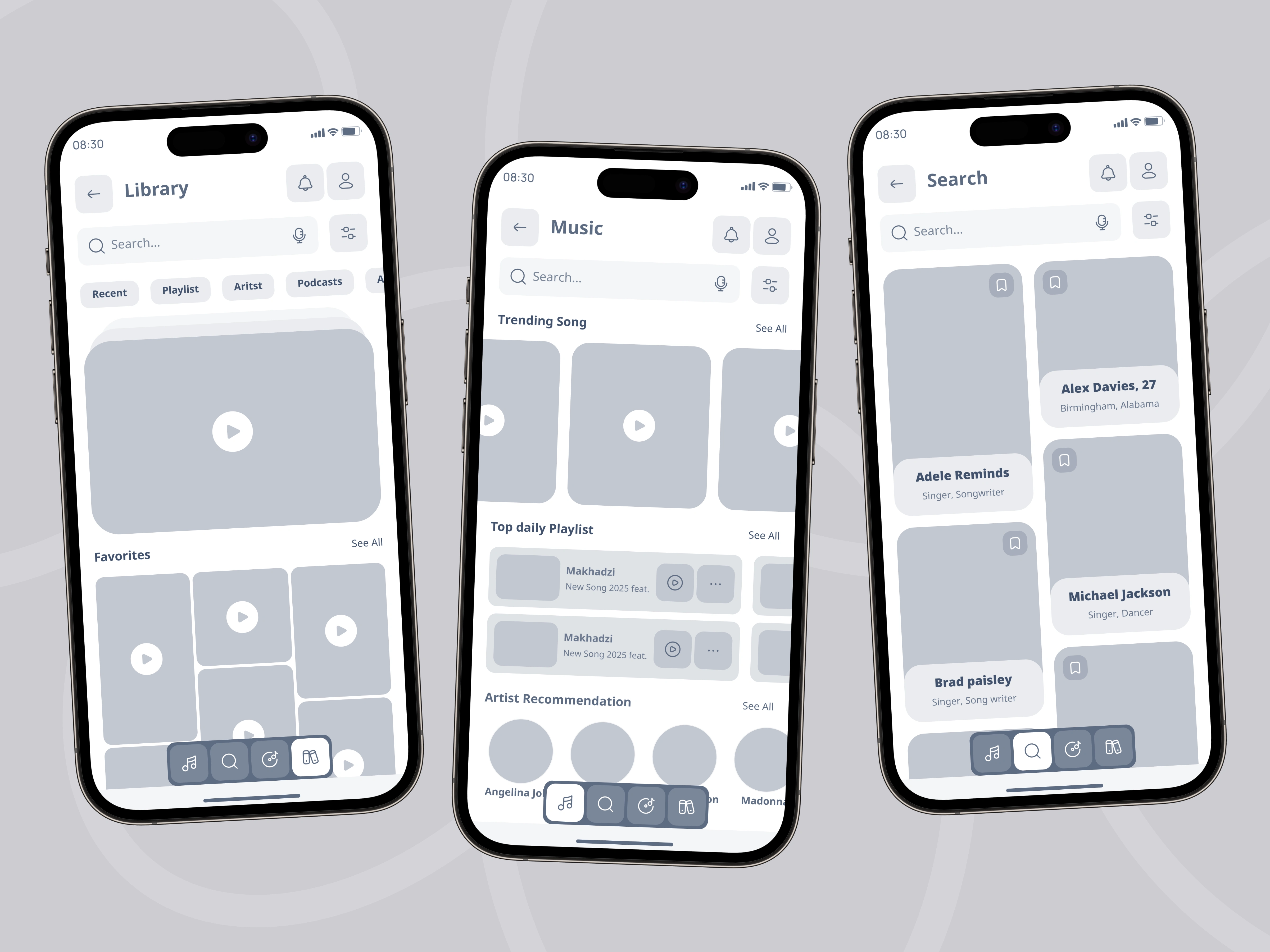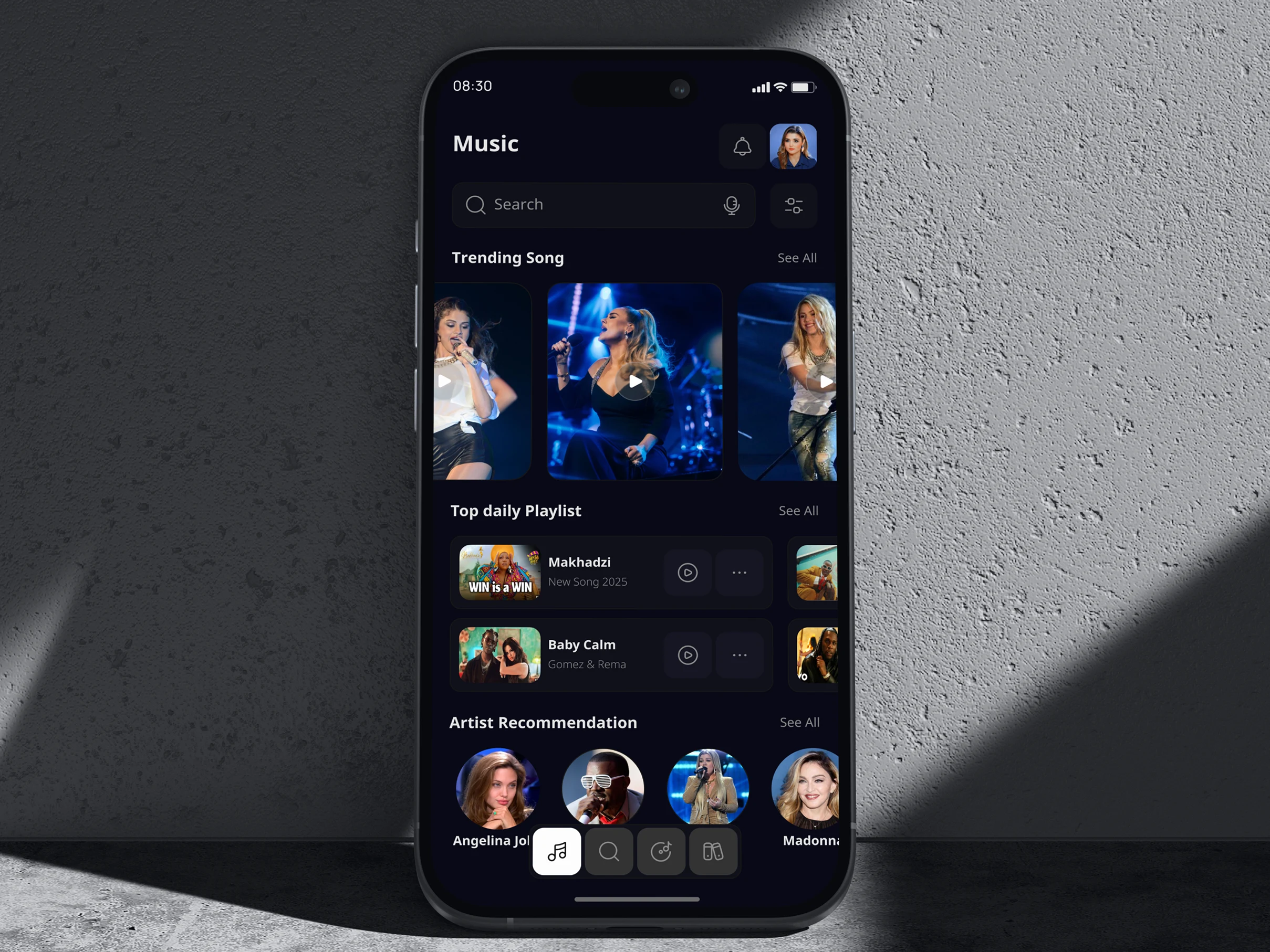 Introducing a thoughtfully crafted music app design that blends aesthetics with functionality. Designed for effortless navigation and immersive user engagement, this concept ensures a smooth and enjoyable music discovery experience. With a harmonious color palette, sleek typography, and a modern layout, every element works together to create a visually stunning and user-friendly interface.
