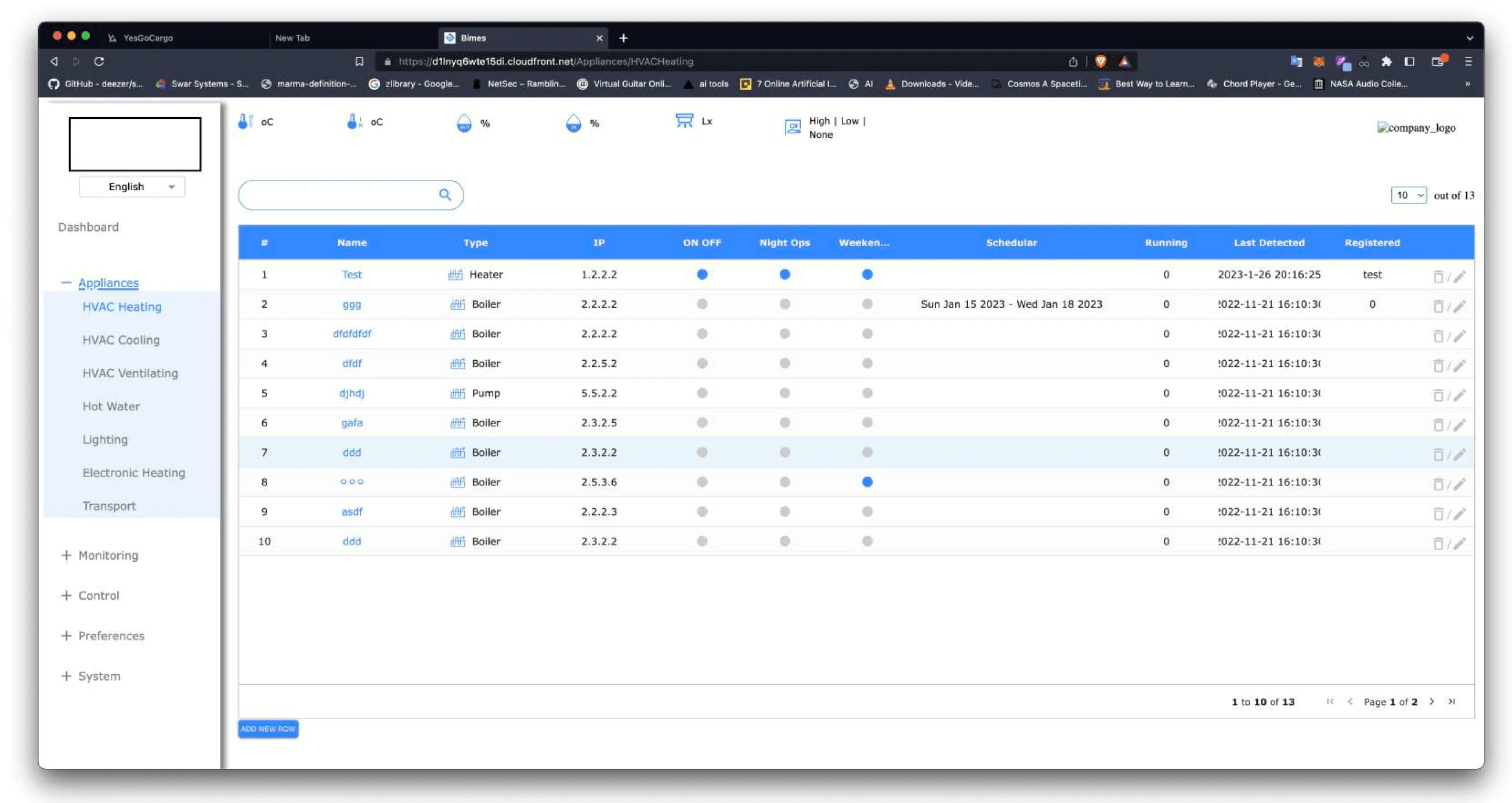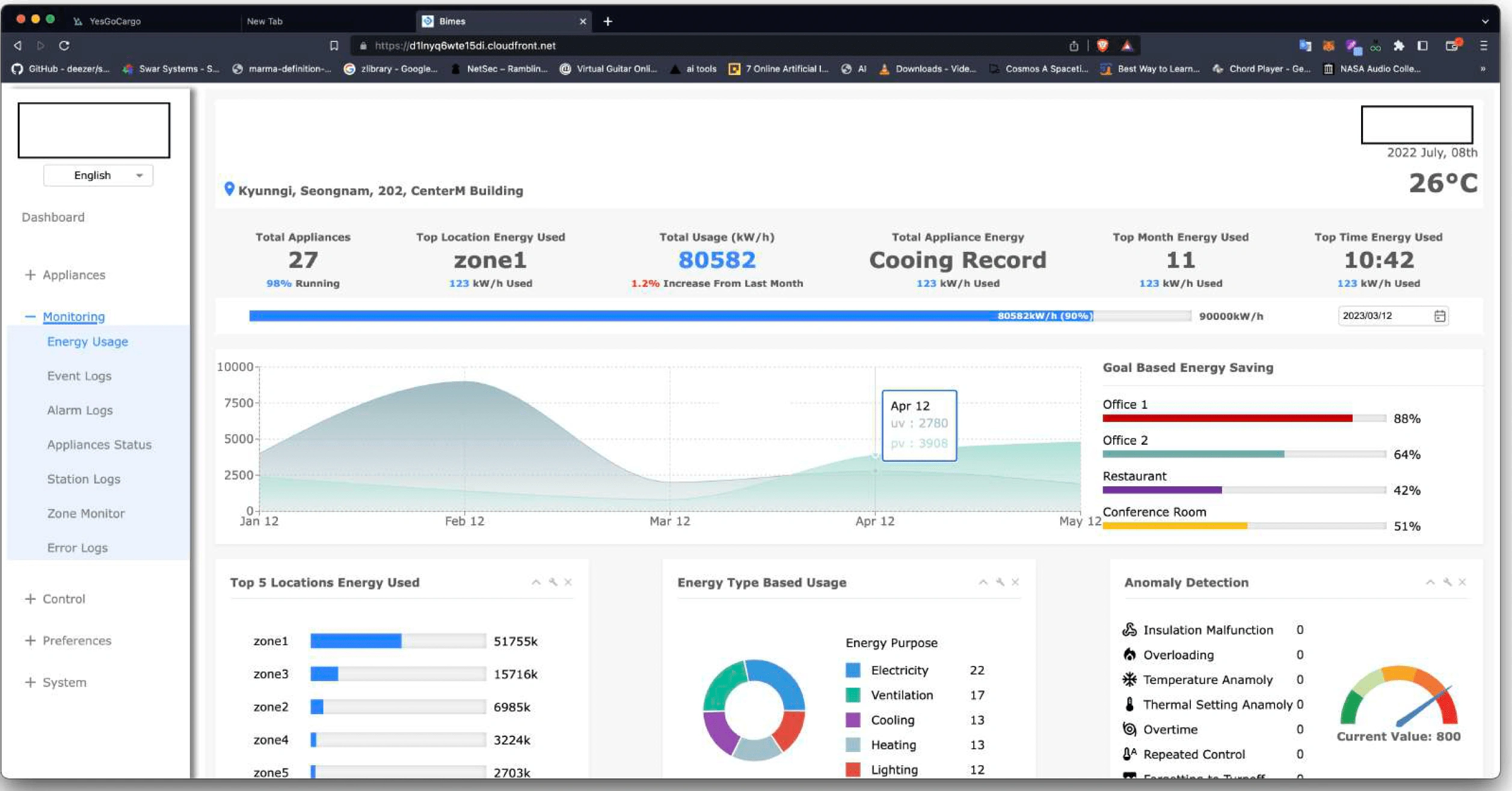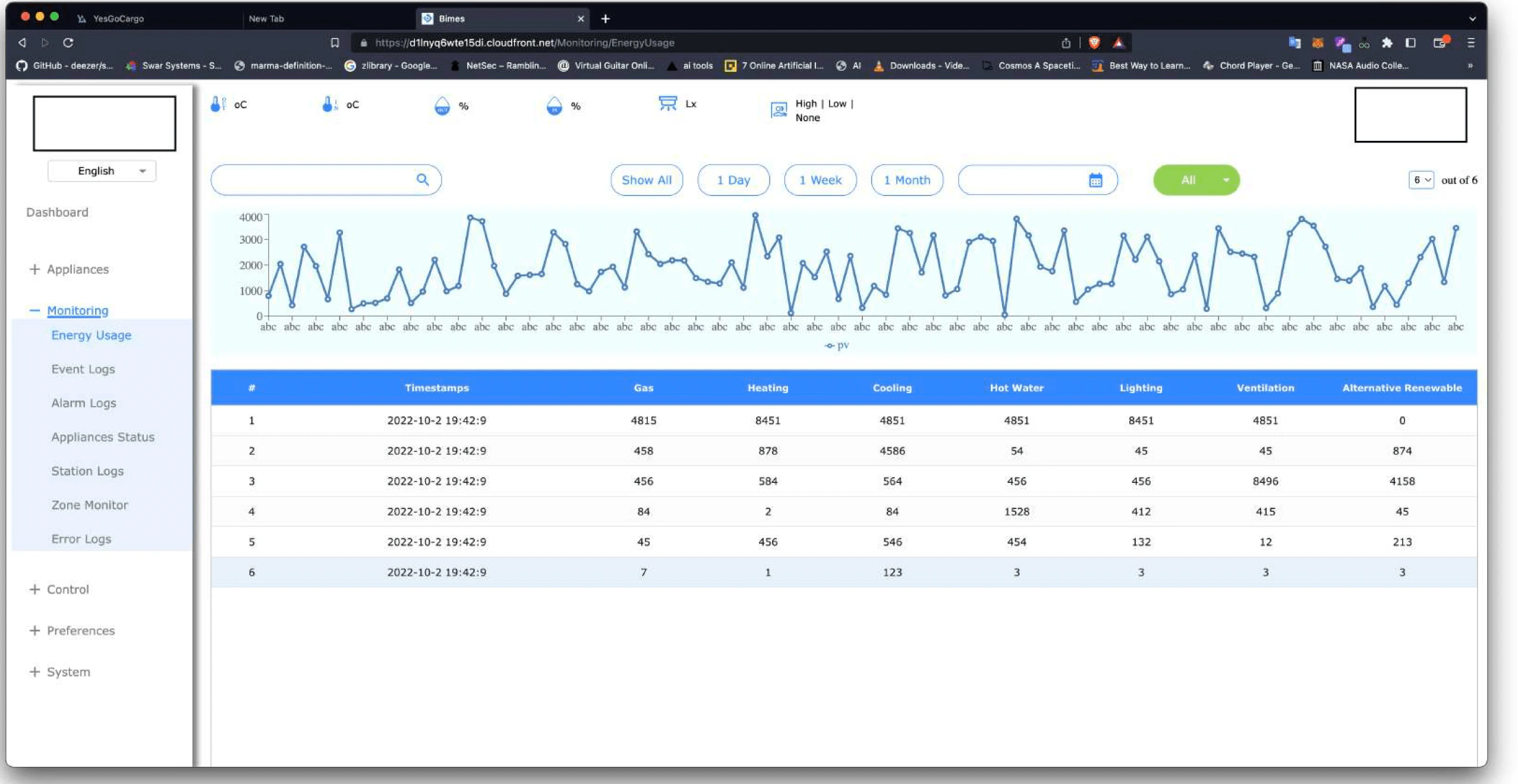 Bimes was to showing real time data of equipments in a building,in React with all the Express JS Rest APIs, with authentication at the start of the application.