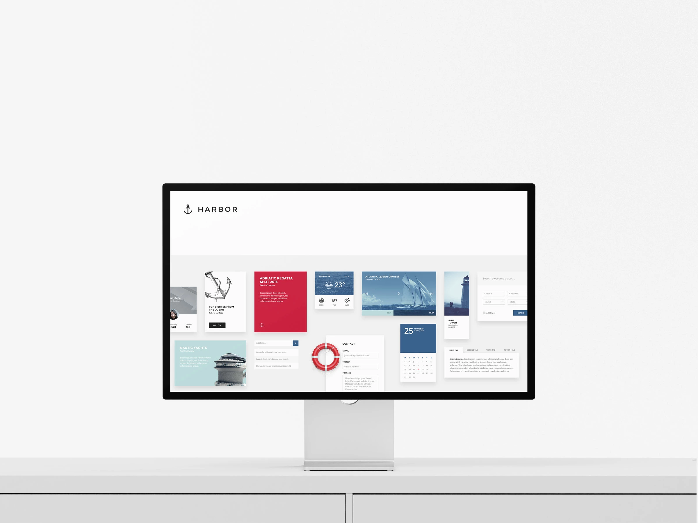 Harbor UI Kit delivered 100+ clean, minimalist UI elements and a style guide, streamlining modern web projects with a nautical-inspired aesthetic.