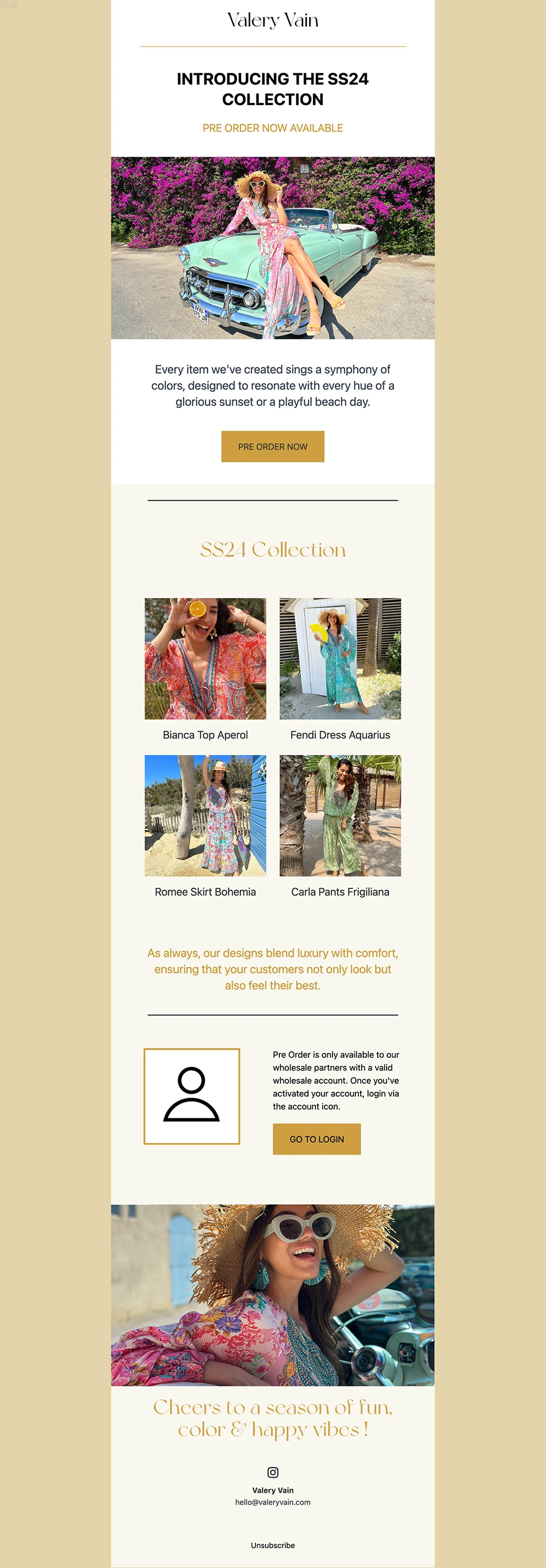 For this luxury resortwear brand we designed + developed a Shopify Store that sells to both consumers and wholesale partners. Wholesale partners can apply via a form and when logged in to their account, the wholesale prices are visible. We made a lot of customizations for this store, with CSS and Liquid. We also created all the copy for the website and worked on some Shopify Email Templates.