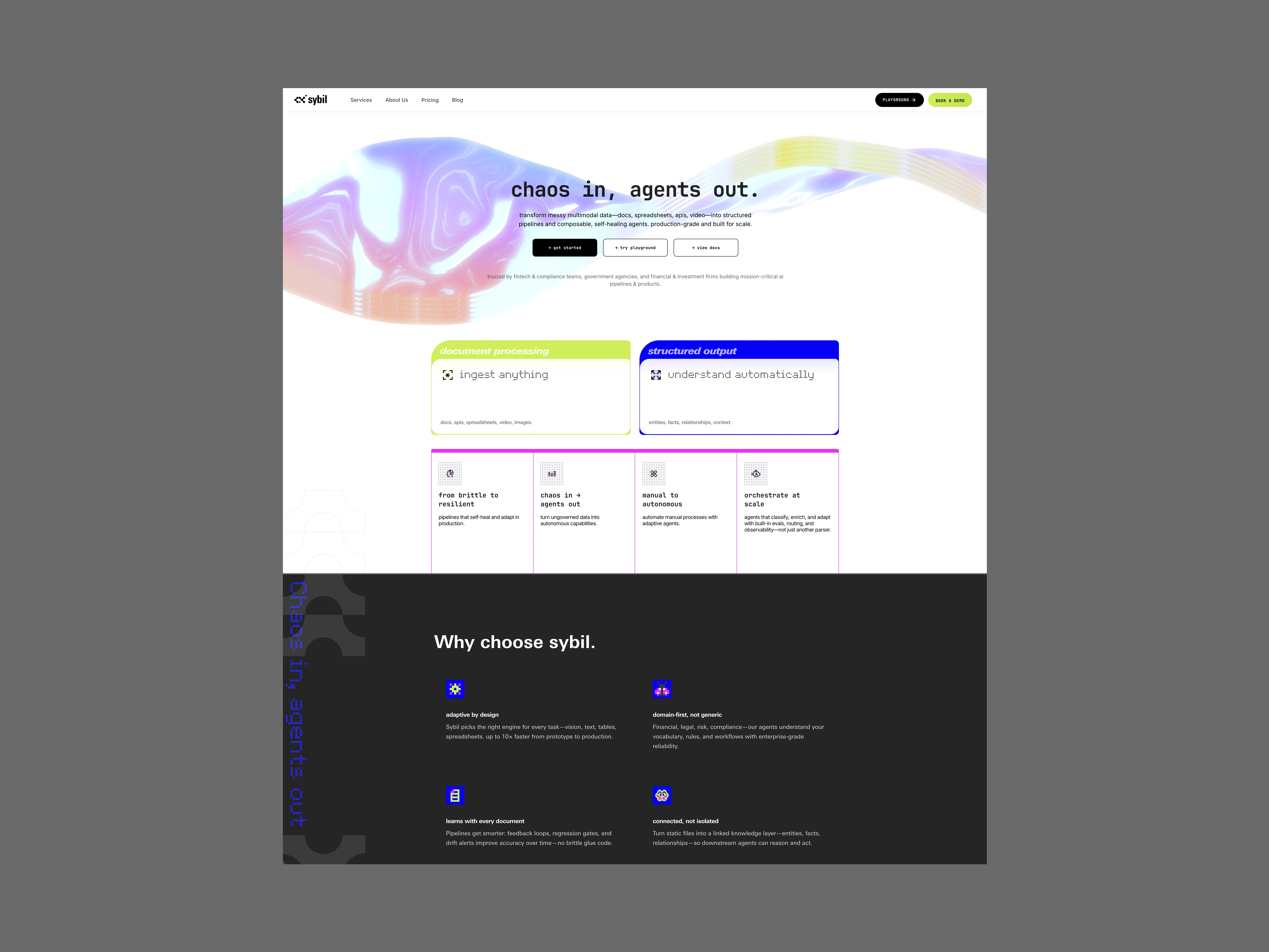 Built the Sybil Studio homepage for our AI orchestration platform. From brand brief to live with locked assets. Confident, fluid, unmistakably ours.