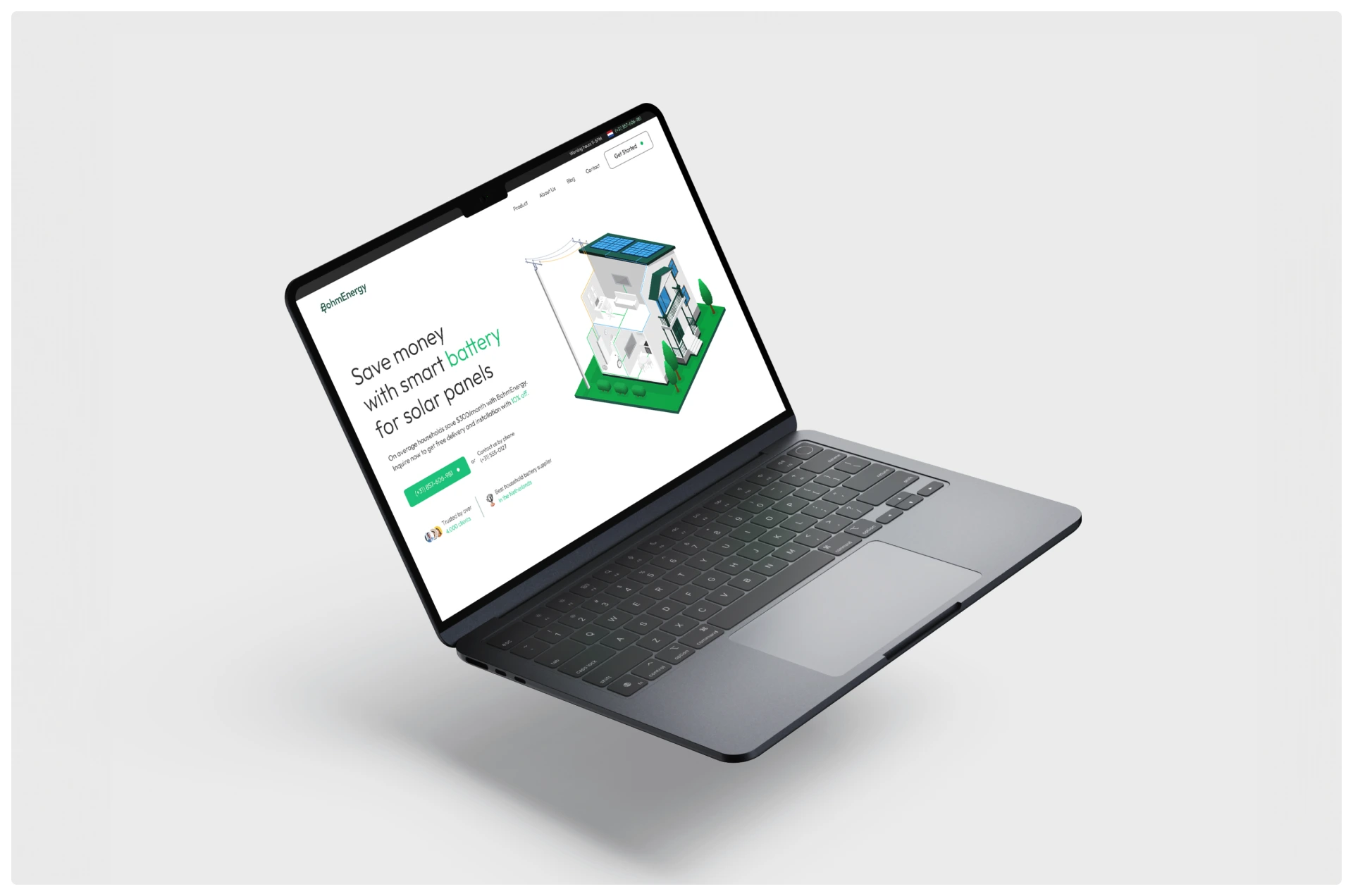 celerart created an appropriately clean brand identity, designed a simple website, and built it in Webflow, as we usually do. A bit of graphics here and there, minor interactivity, some generated and photoshopped product shots, and here it is. On the homepage, an isometric house animation that we made shows exactly how it all works.
