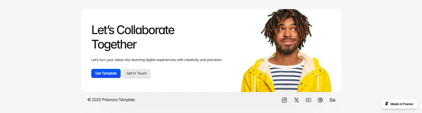 Prismora is a sleek, customizable Framer website template meticulously crafted for freelancers and creative professionals looking to elevate their online presence. Designed by Lucas Bennet, a Senior Product Designer at Milano with over 7 years of experience in innovative web solutions, this template transforms your ideas into visually stunning, high-performance websites that prioritize creativity, speed, and seamless user experiences. Whether you're a solo freelancer showcasing your portfolio or a small agency building client sites, Prismora offers a plug-and-play foundation to create landing pages, multi-page sites, and interactive digital experiences without the hassle of starting from scratch.