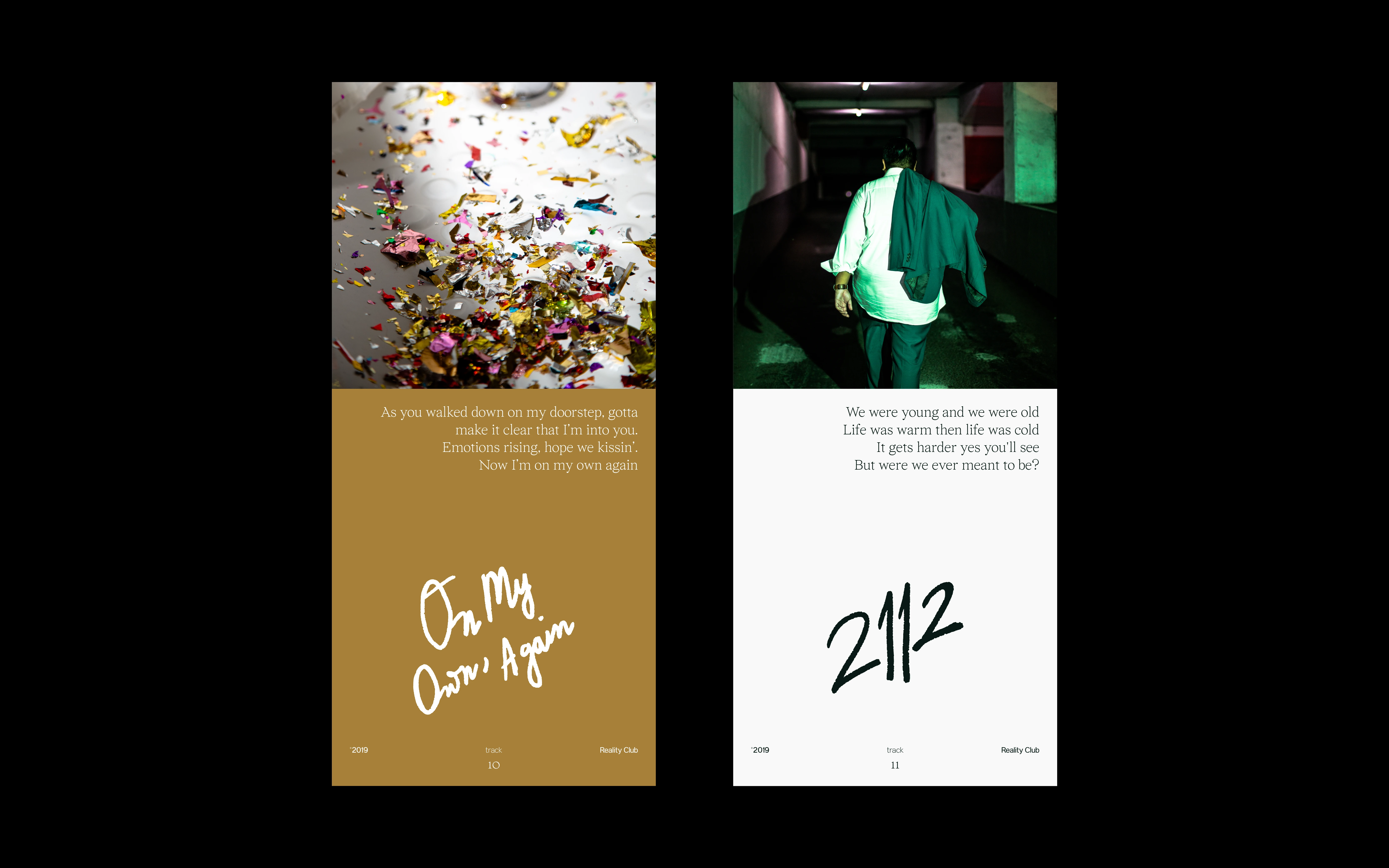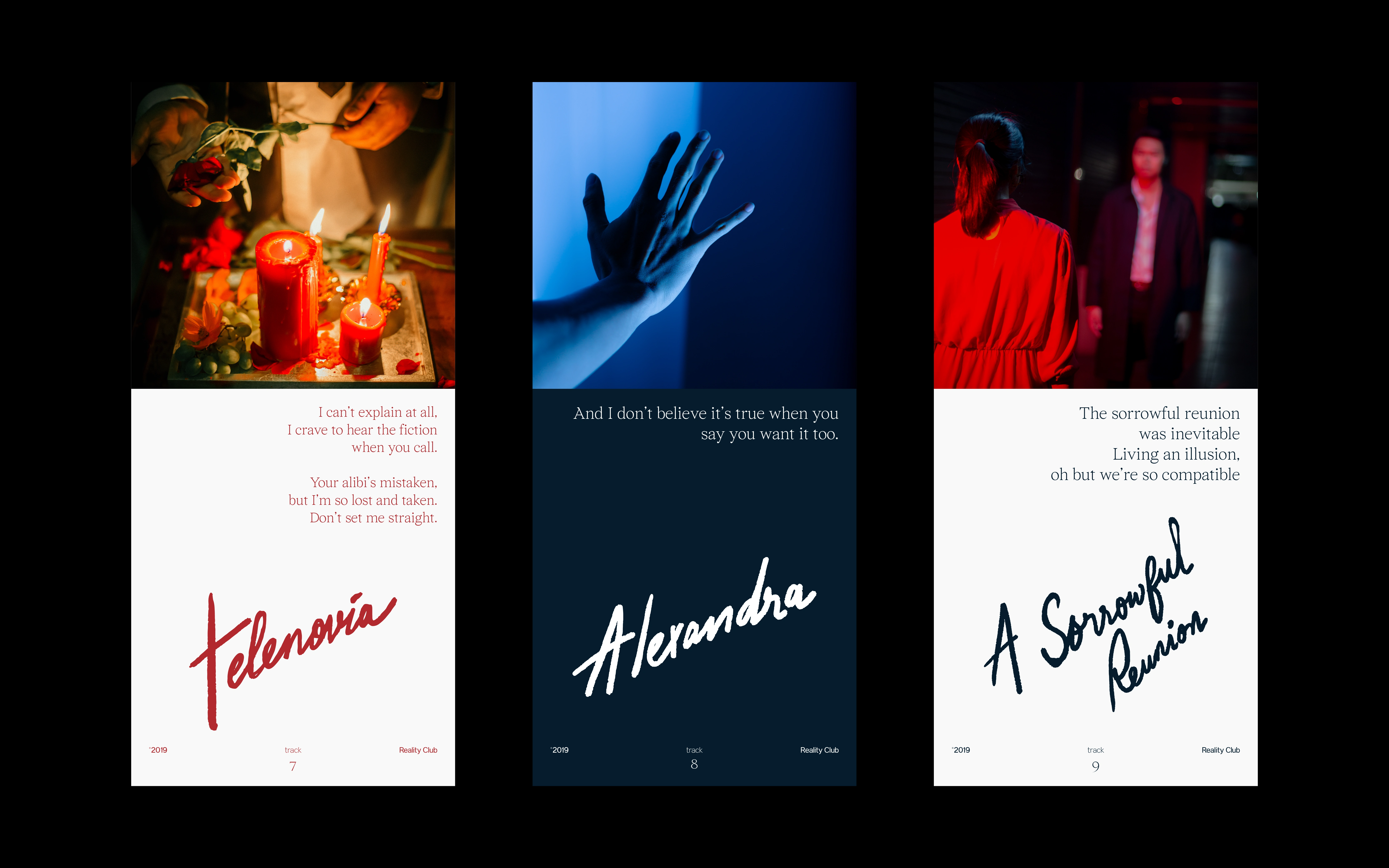 The whole album is trying to interpret a modern version of romantic relationship which embodies different kind of feeling and desire. How to represent people's feeling and desire? We wanted to perfectly capture the narrative and evoke a certain type of emotions which already involved inside the song and universally express it to the audience. Therefore, we thought one single image and an elaborate photo sequence is the answer. We believe anonymous photo without a signifier of time and place could capture the whole mood and accompany the audience throughout the whole album so they can relate and get in the right mood.