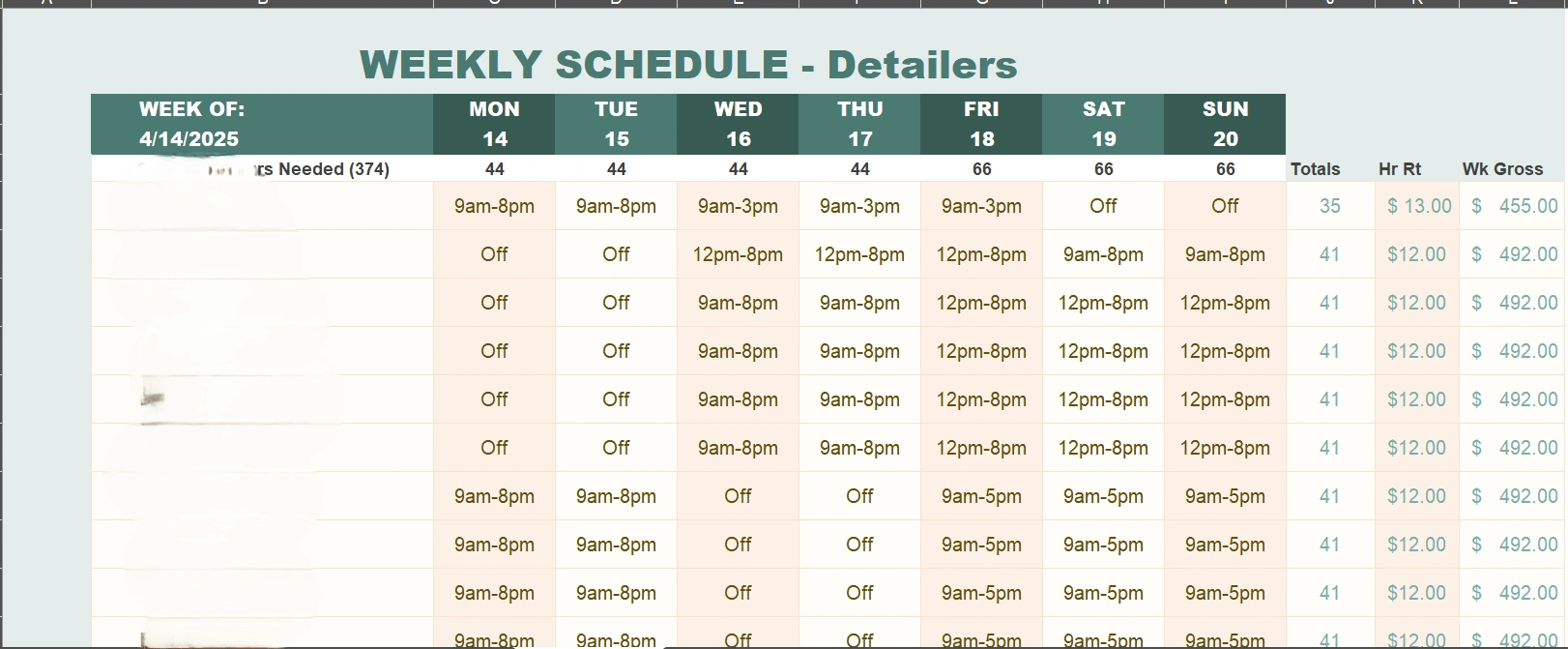 This was a simple request from a past client to put together a scheduling template that was formulated to rotate his staff on 4 week rolling basis.