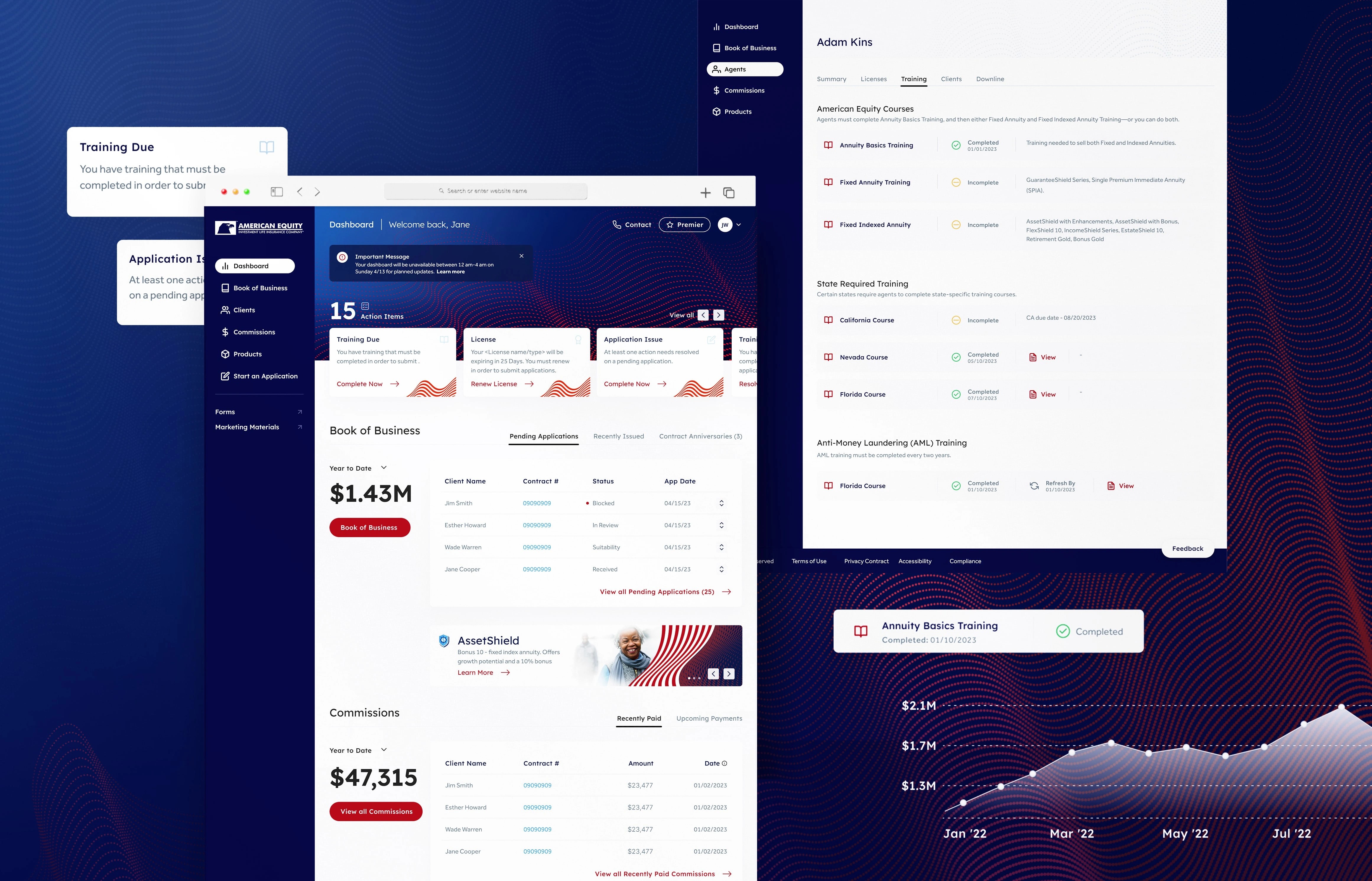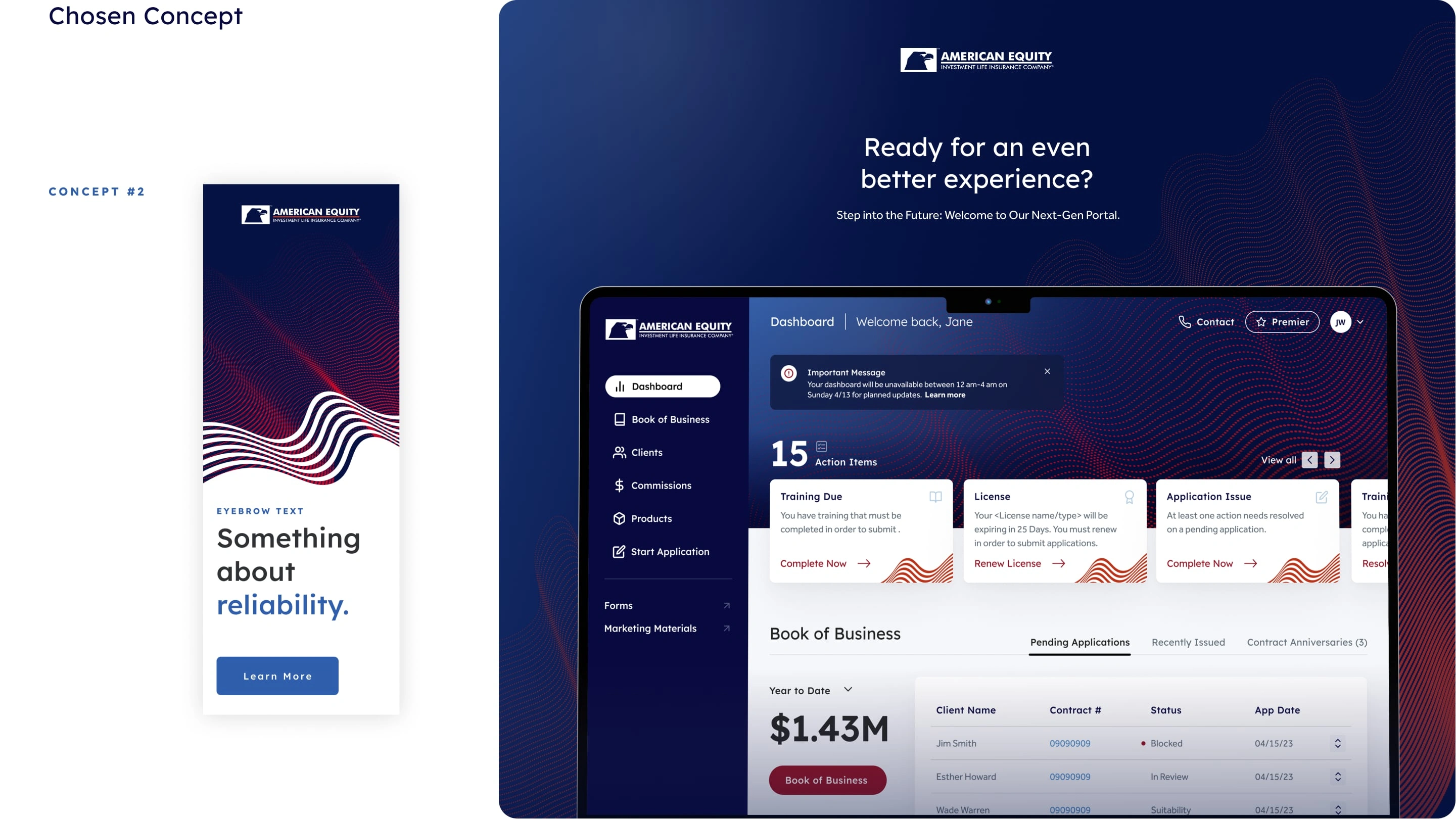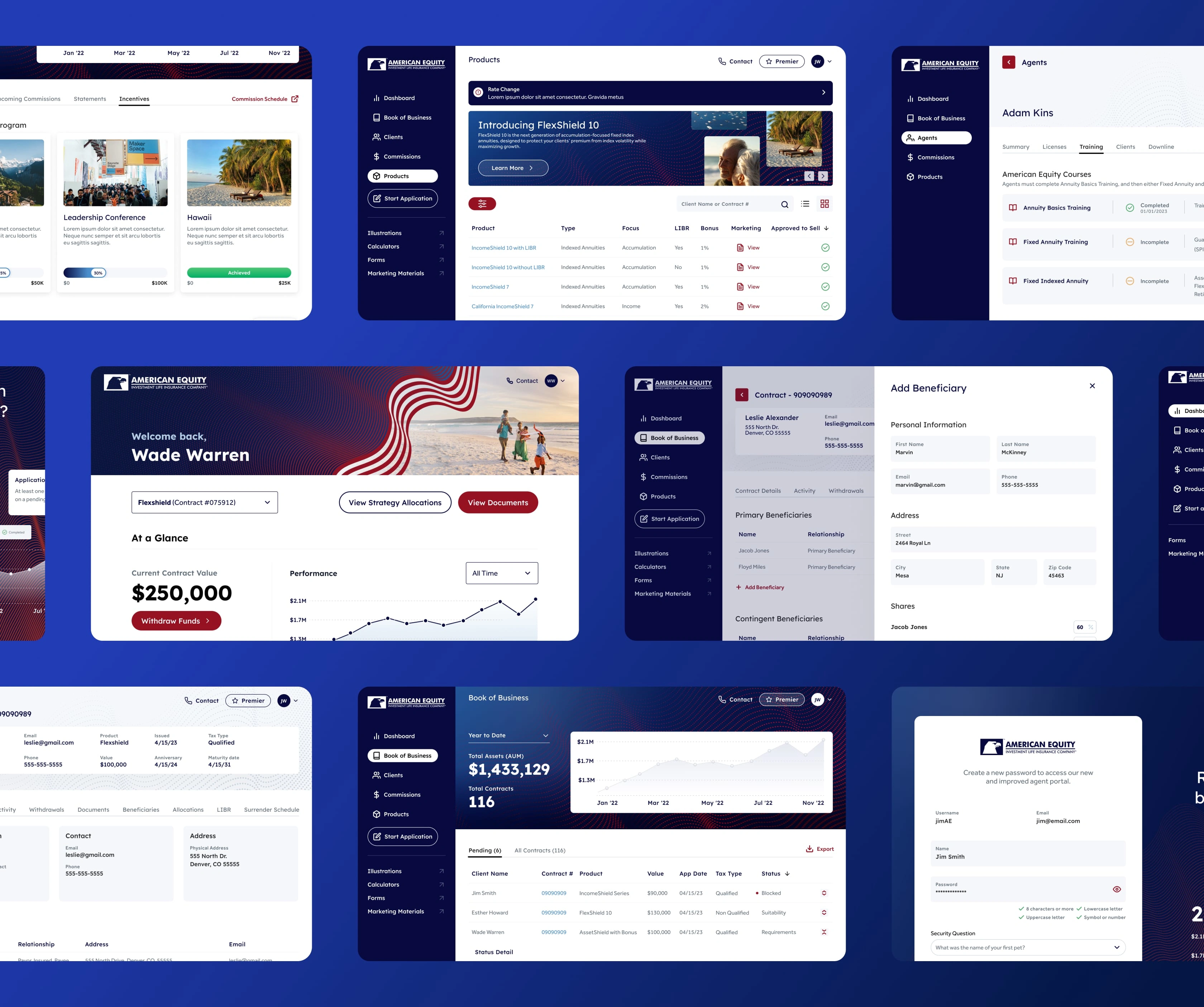 The project focused on creating a comprehensive, user-friendly online portal for American Equity and Eagle Life, two sister companies in the insurance and financial services sector. The portal serves as a central hub for customers and agents to efficiently manage contracts and annuities. In addition to designing an intuitive user experience, I developed a versatile visual identity that aligns with each company's brand colors and motifs. The project included crafting a robust interface for agent activities and a simplified, accessible view for customers, particularly catering to individuals in the later stages of life.