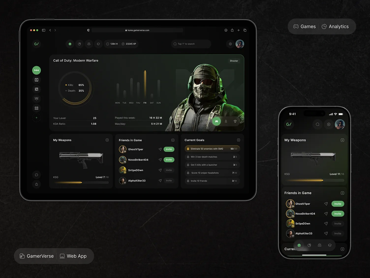 With real-time insights, personal goals, and built-in social features, GamerVerse keeps you motivated and helps you focus on what matters most — playing better.