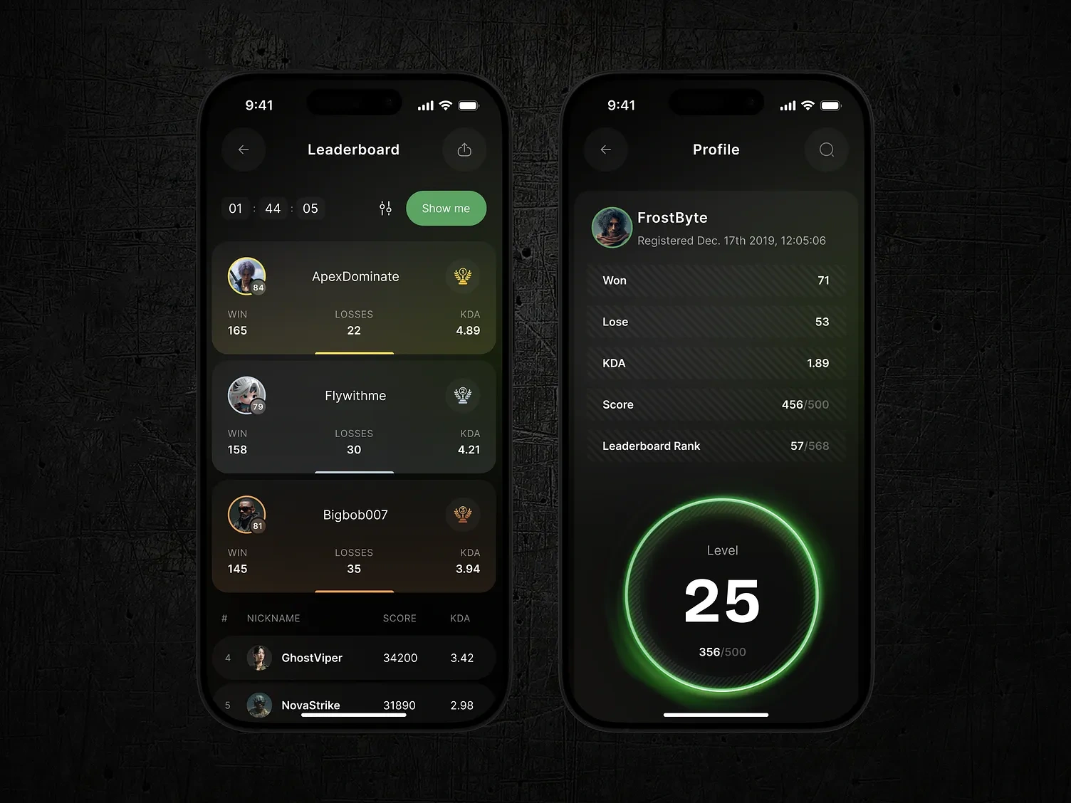 I designed the GamerVerse leaderboard to give players a clear, real-time view of where they stand. Users can sort by win rate, KDA, or score and filter results by time range or friends. Each row shows level, match stats, and performance trends, making rankings easy to scan and act on.