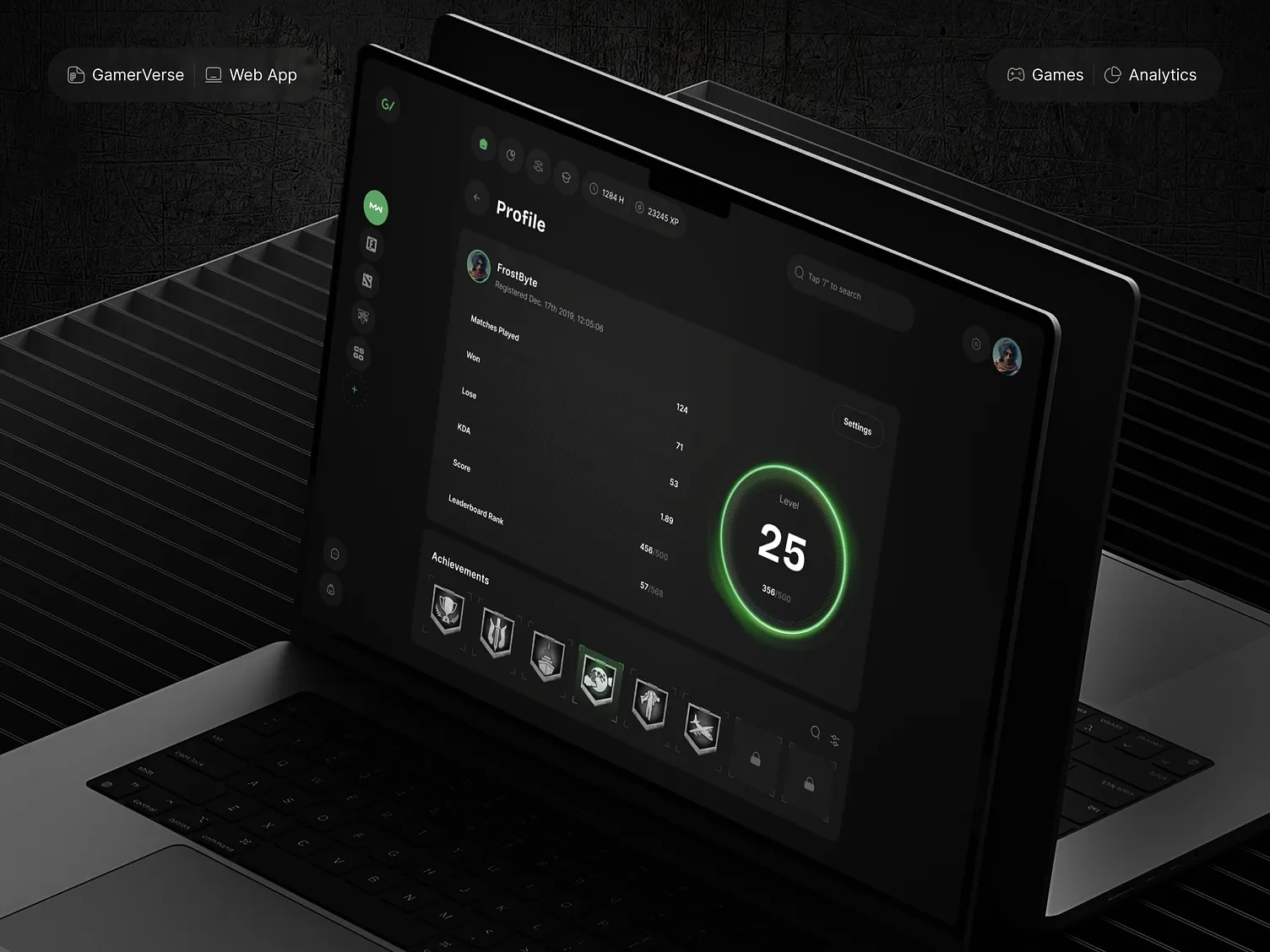 Players often lose track of their in-game progress because stats like K/D ratio, achievements, and activity are hidden across menus or separate platforms. We built the GamerVerse dashboard to bring everything together in one clear, focused view.
