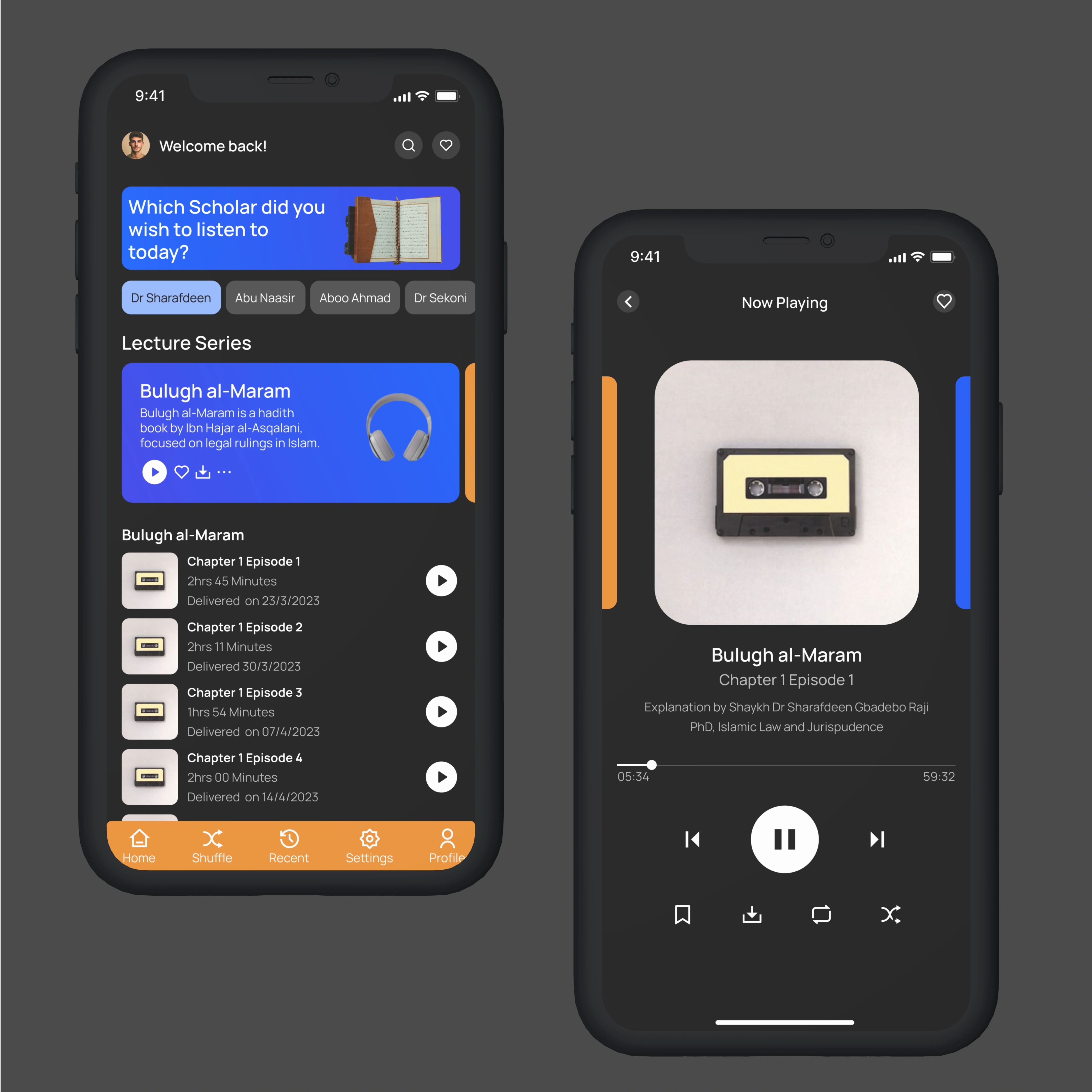Music player UI allows you to listen to Islamic audio lectures of Islamic scholars in Nigeria