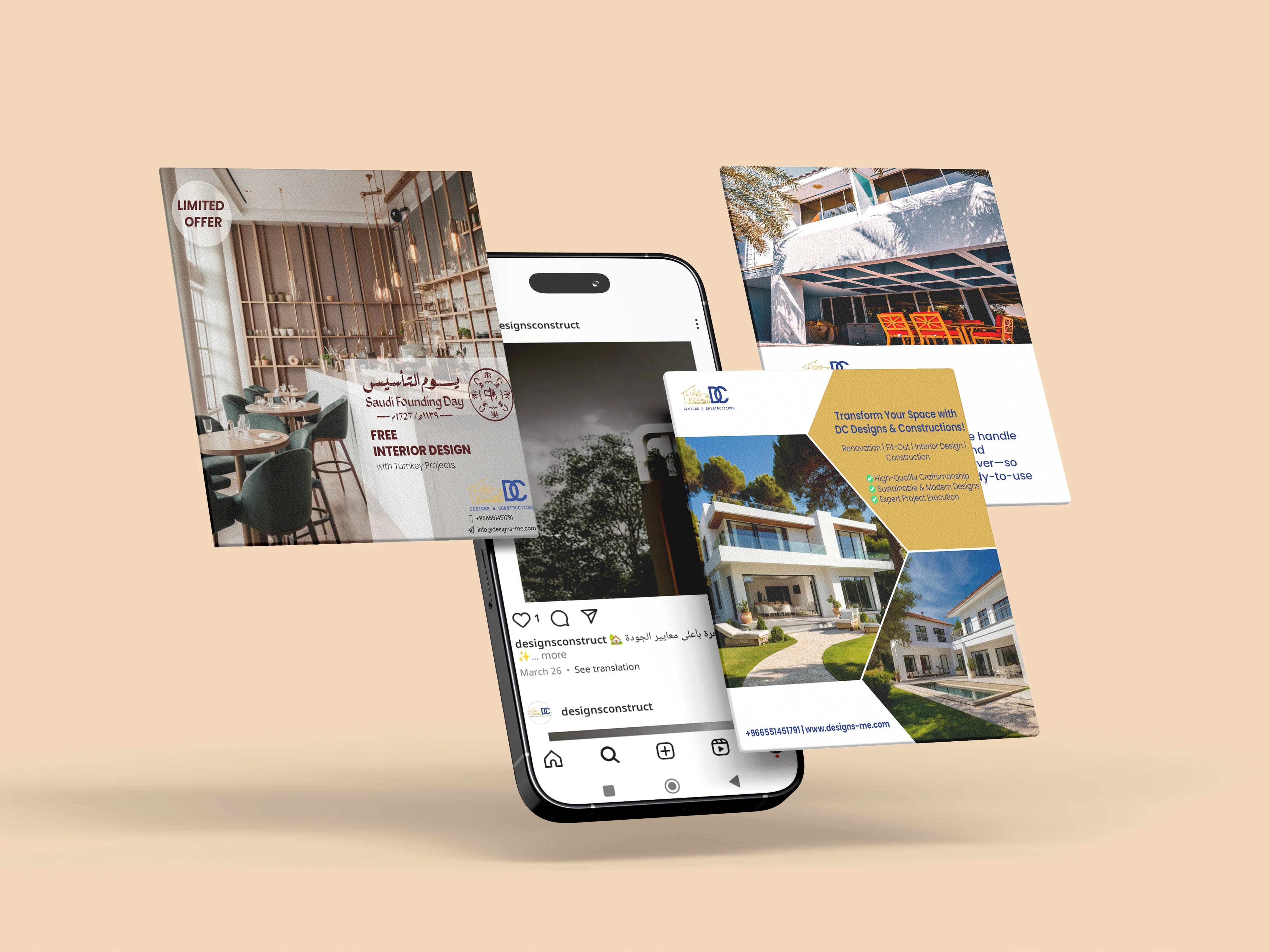 Managed Instagram for DC Designs & Construction—created posts, reels, ran ads, boosted growth, engagement, and lead generation.