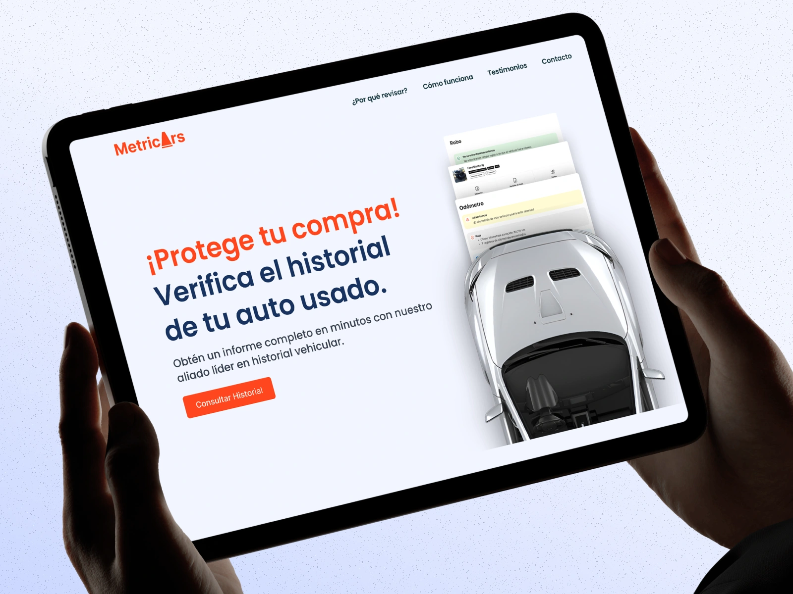 Metricars is a Framer landing page a carVertical affiliate, helping used-car buyers verify VIN history with 20% off. Official reports are issued by carVertical.