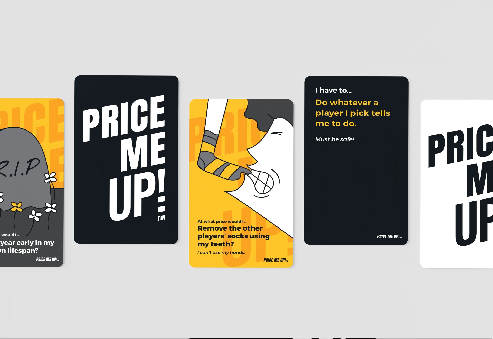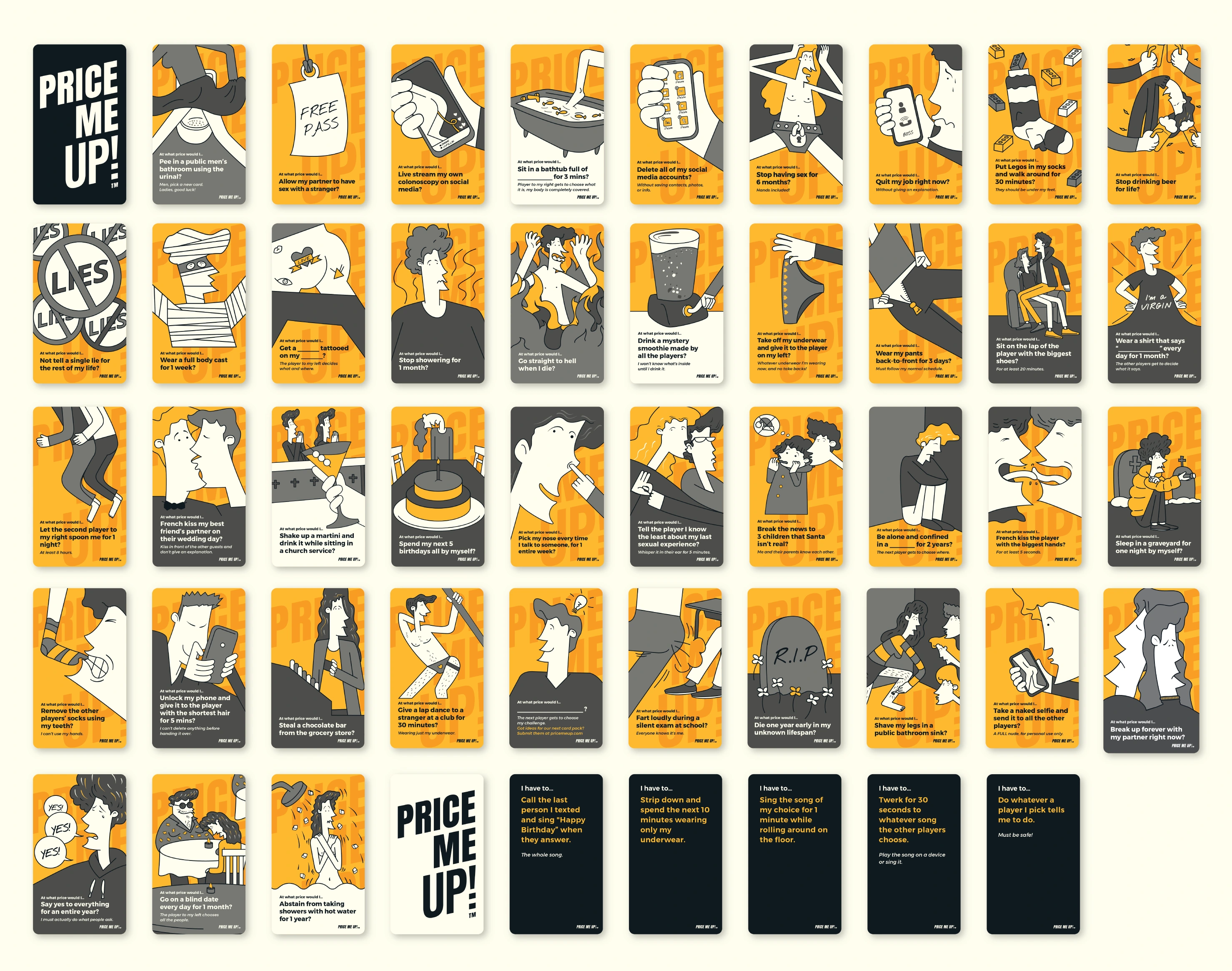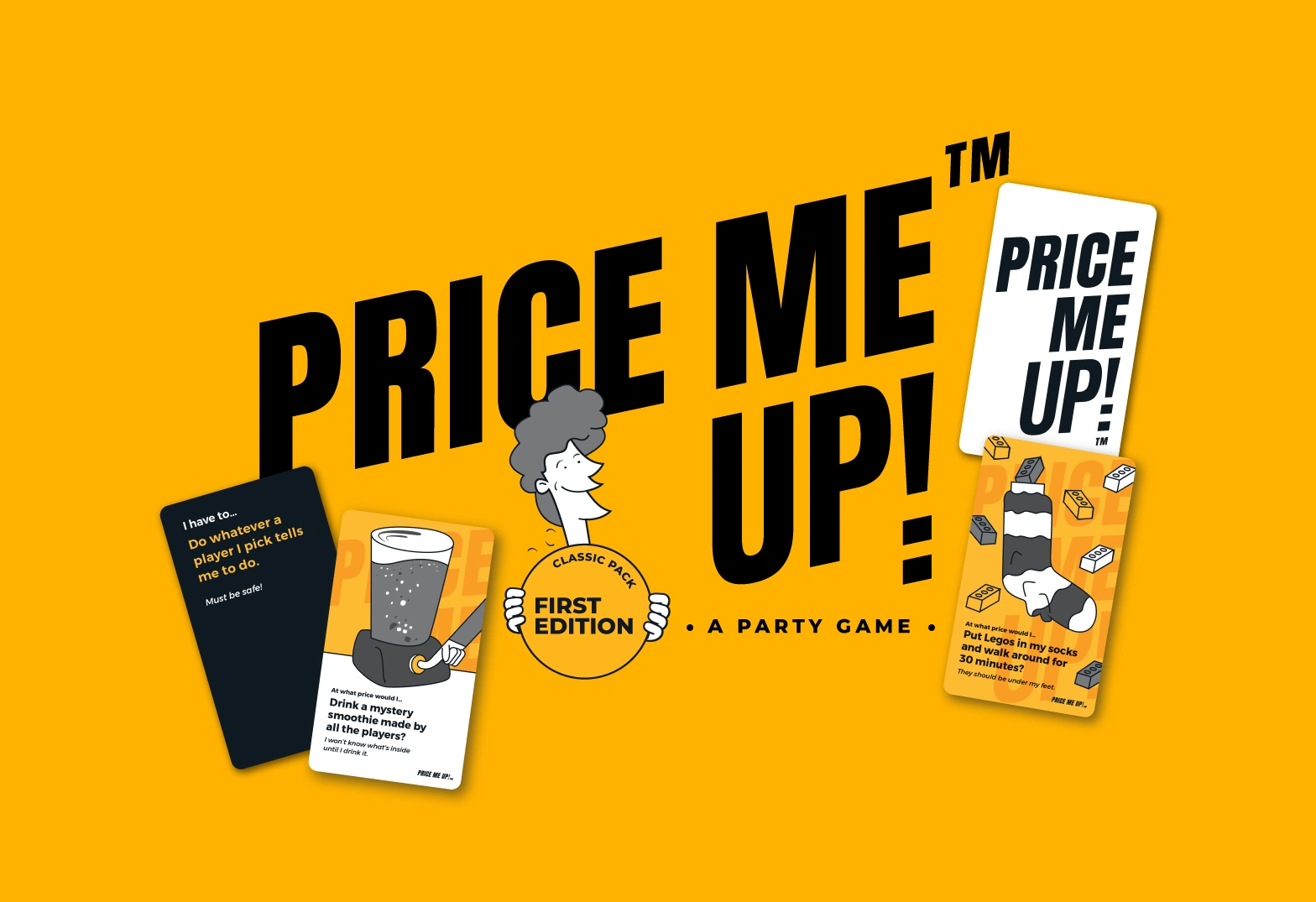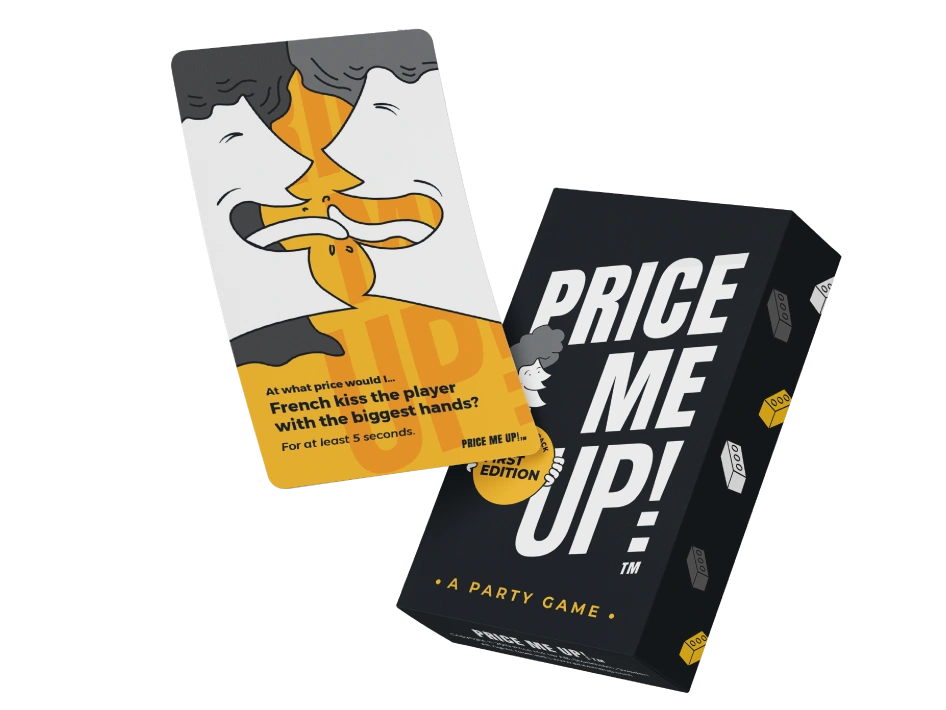 → ABOUT: Price Me Up is a hilarious, truth-revealing party game where you find out just how far you and your friends are willing to go — and at what price. With a relaxed, friendly vibe that perfectly matches the playful energy of game night, this first edition includes a 45-card deck, 5 challenge cards, and a handy how to play guide.