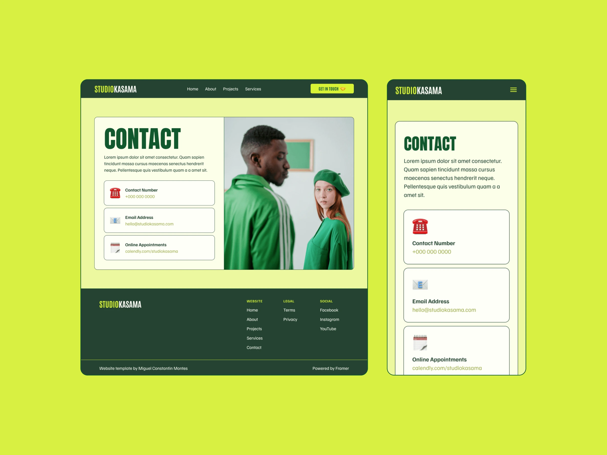 Kasama is a portfolio template designed for creative agencies. It features bold fonts and vibrant colors, making it ideal for agencies that want to showcase their unique and daring style. This template was designed by createwithconstantin and developed by me.