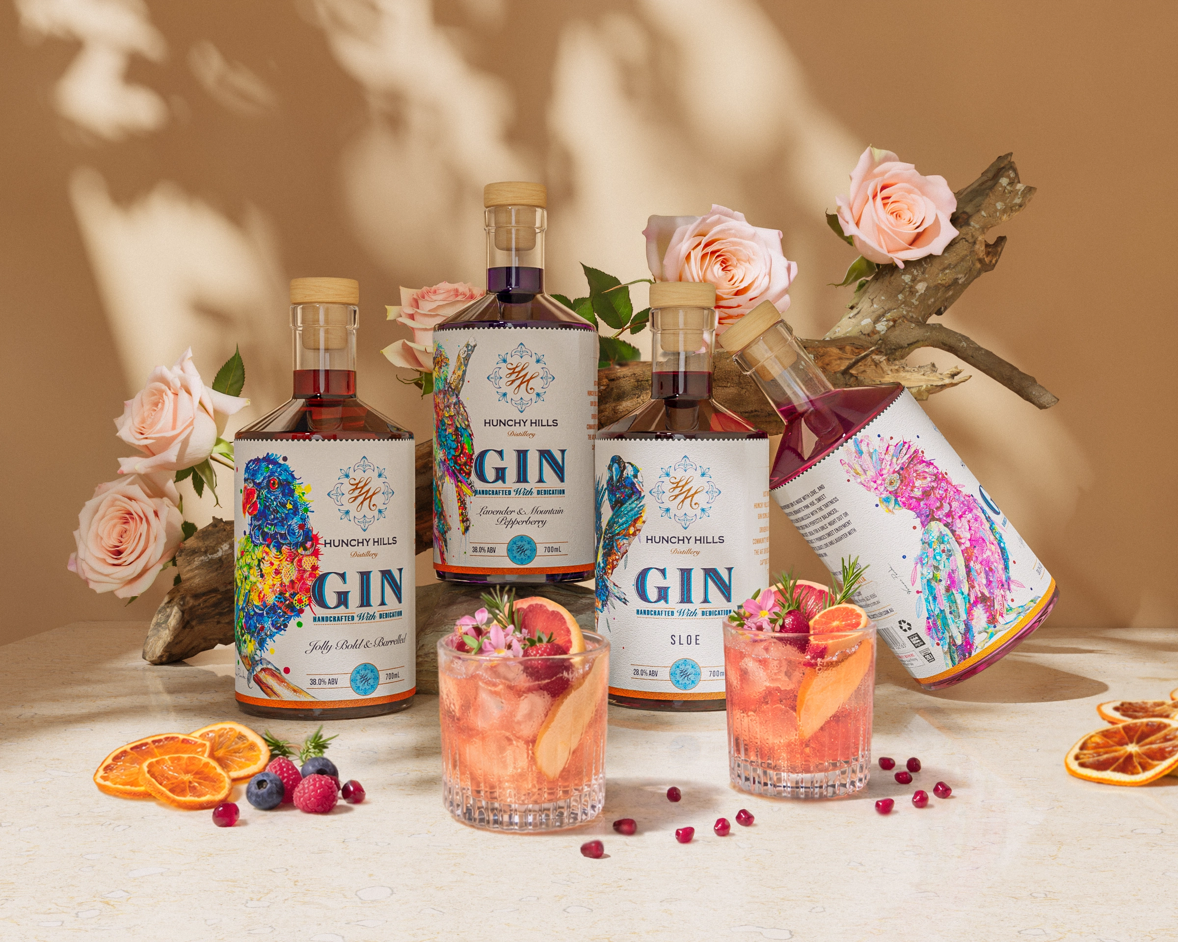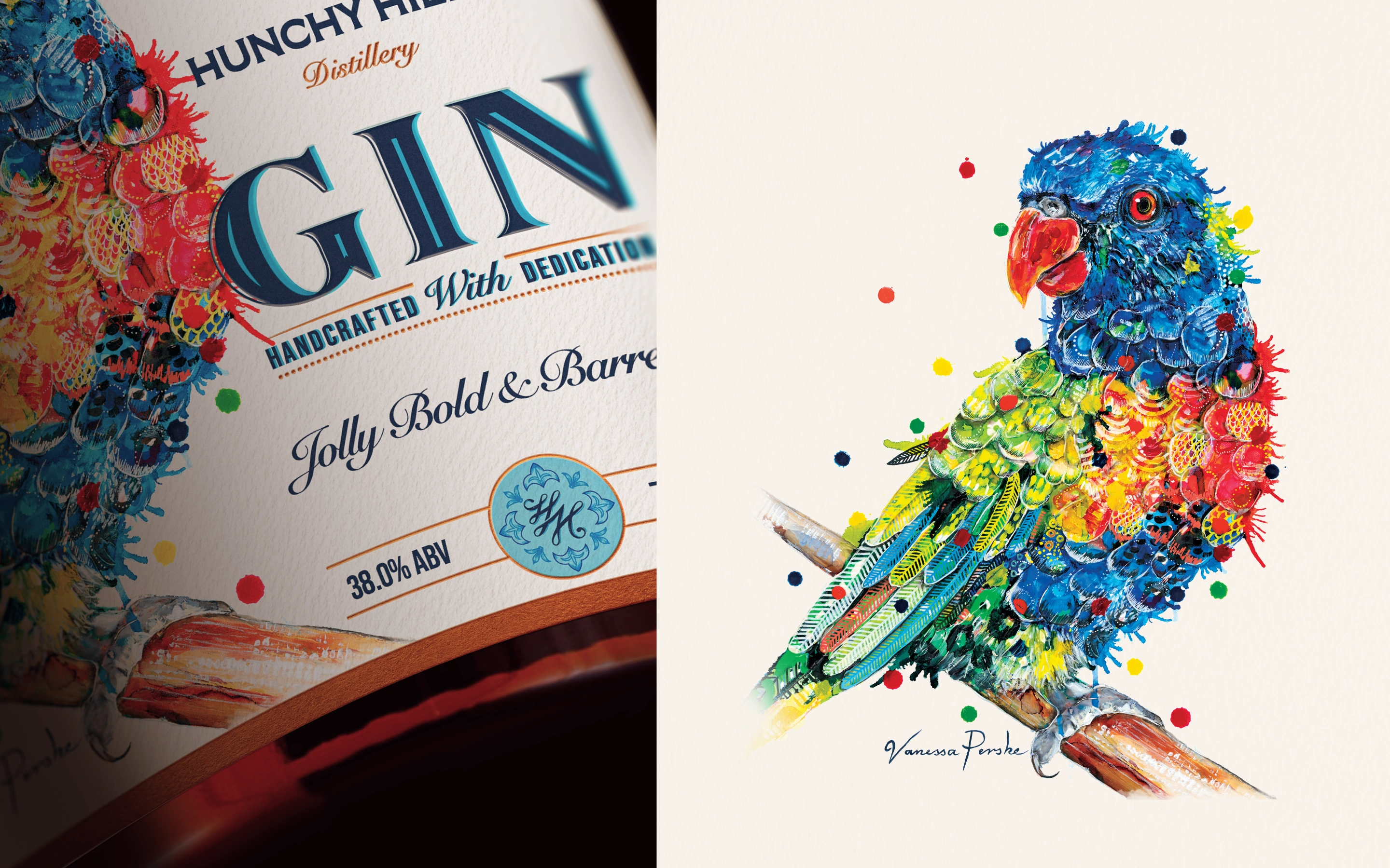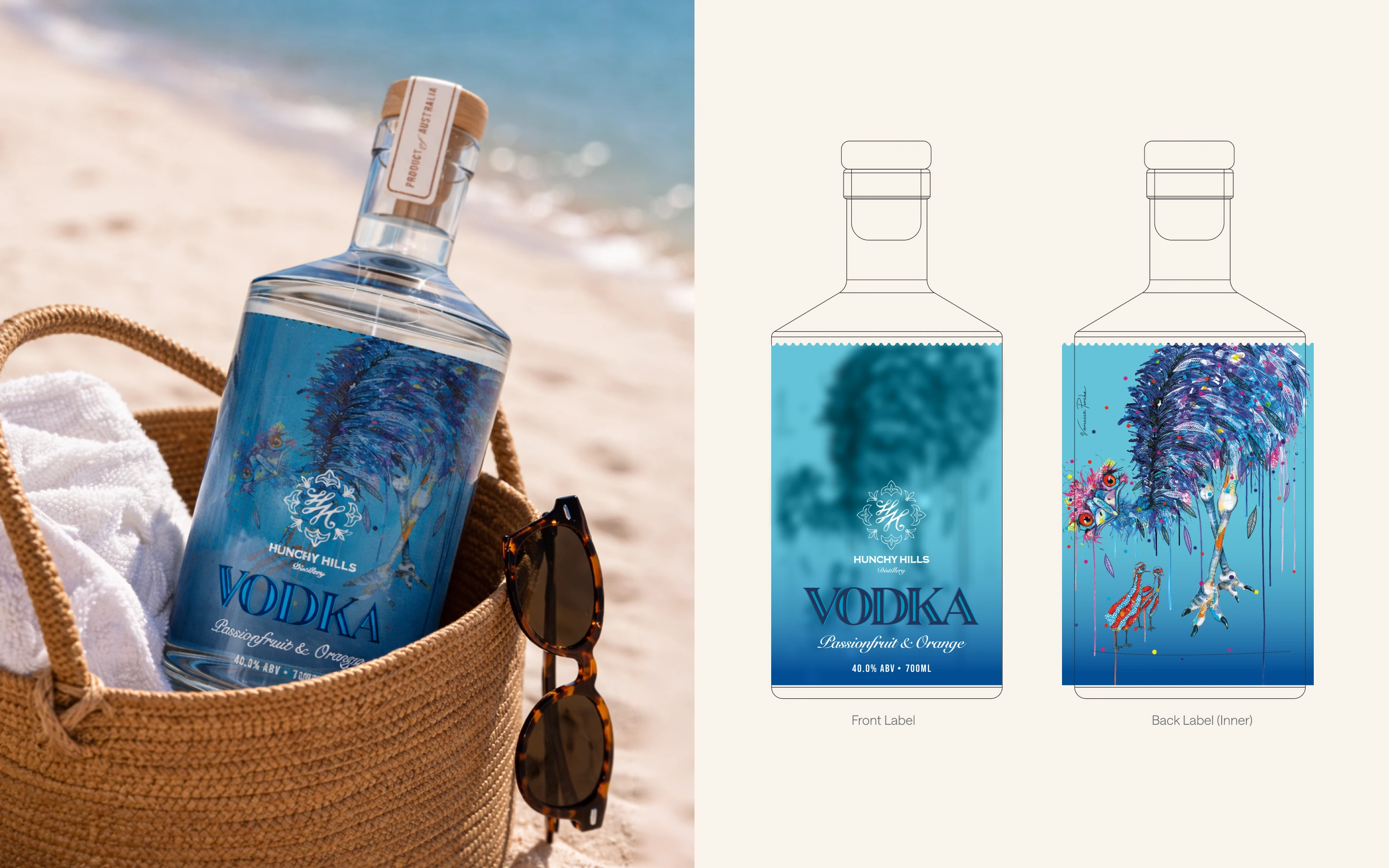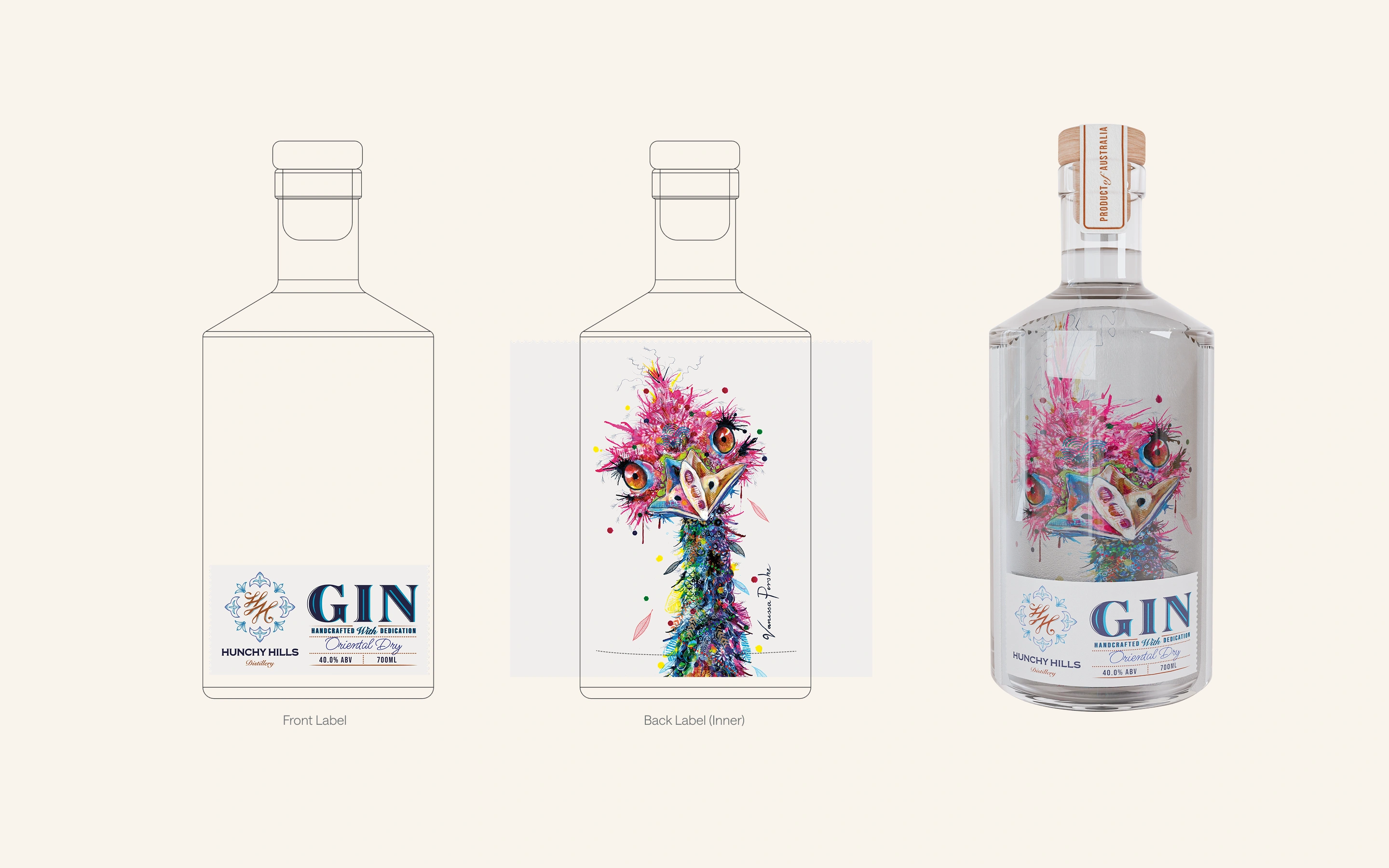 Hunchy Hills is a small craft gin distillery in the Queensland hinterlands, founded by a woman in her fifties who decided to start something bold in a competitive market. When she came to me, she'd already been through a rough experience with another designer. A big invoice, a generic result, and a brand that felt too masculine for what she was building. She knew exactly what was wrong with it, which made my job easier.
