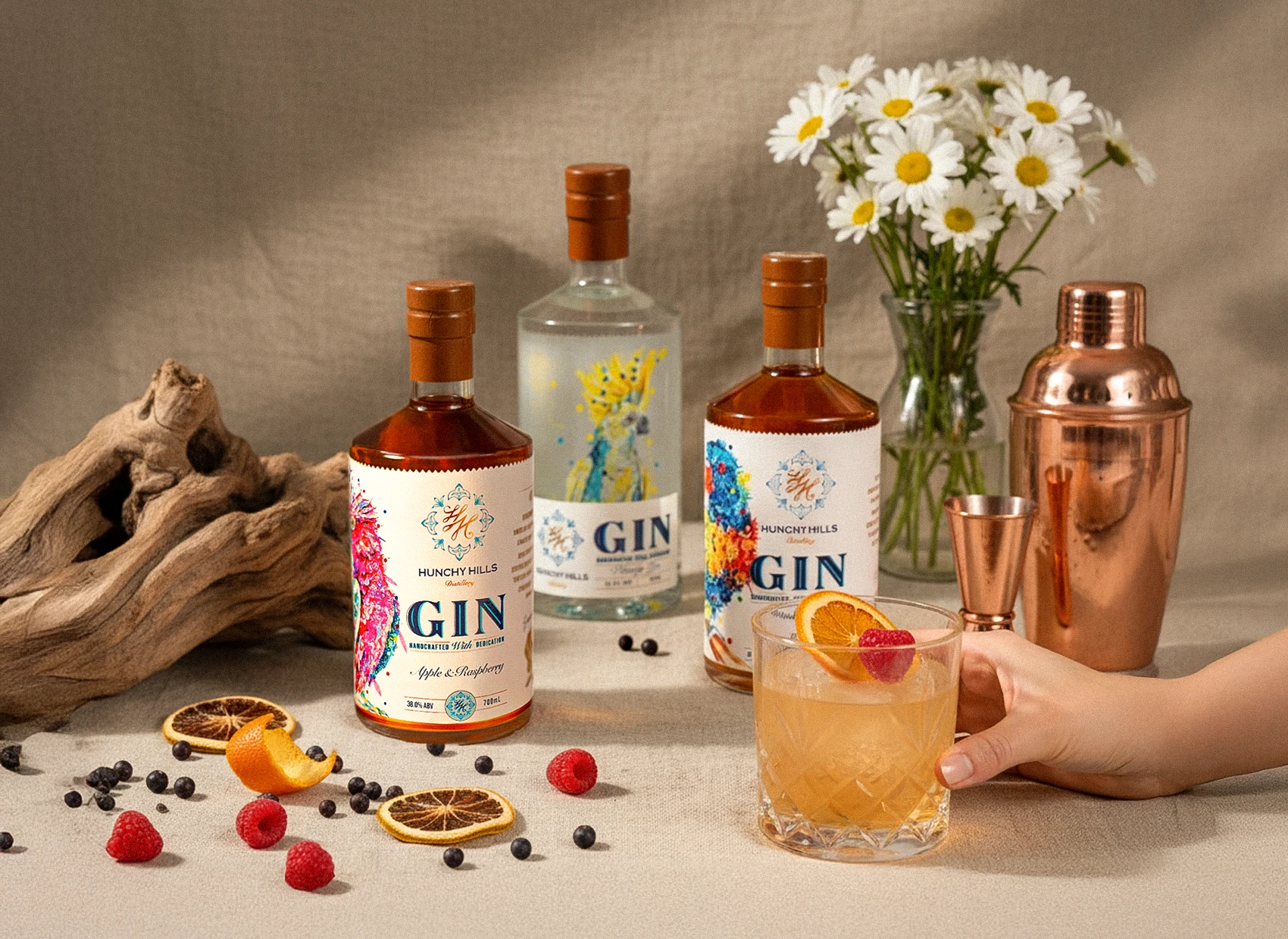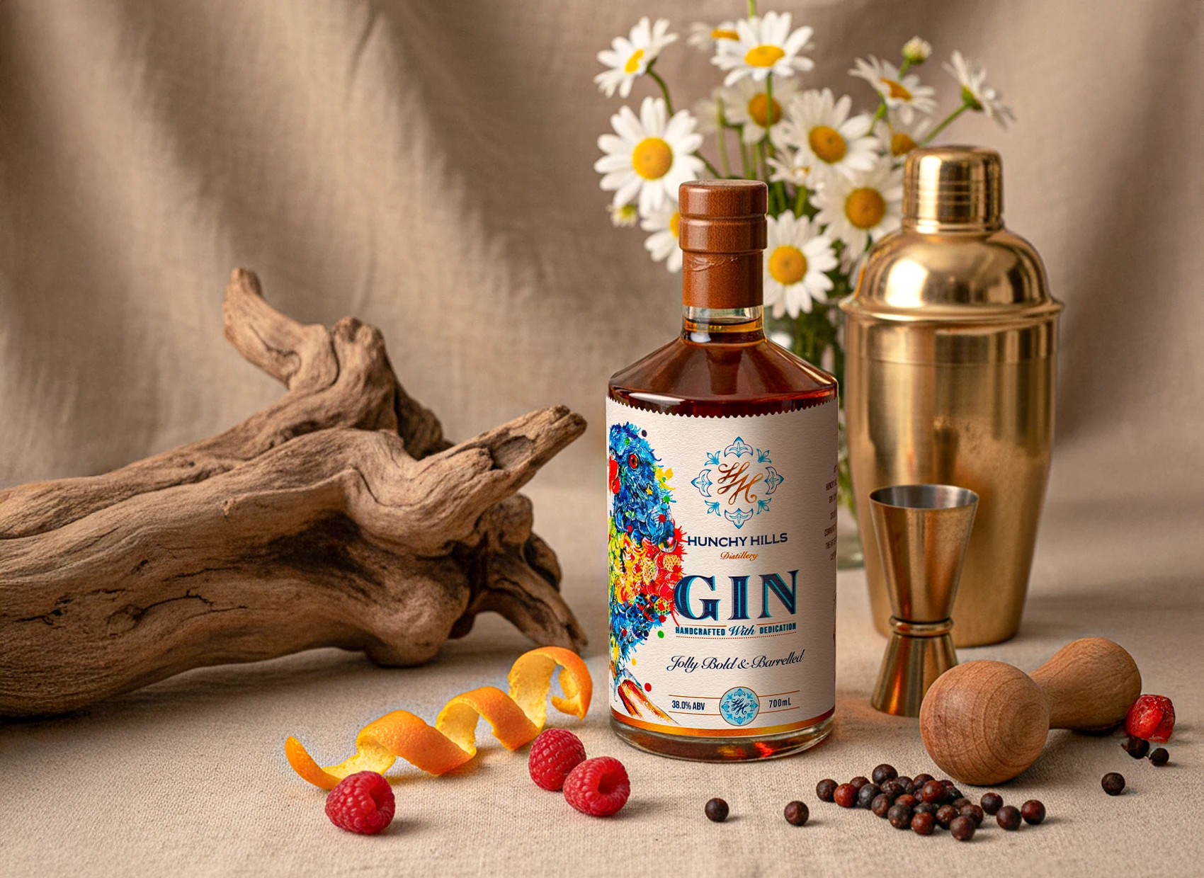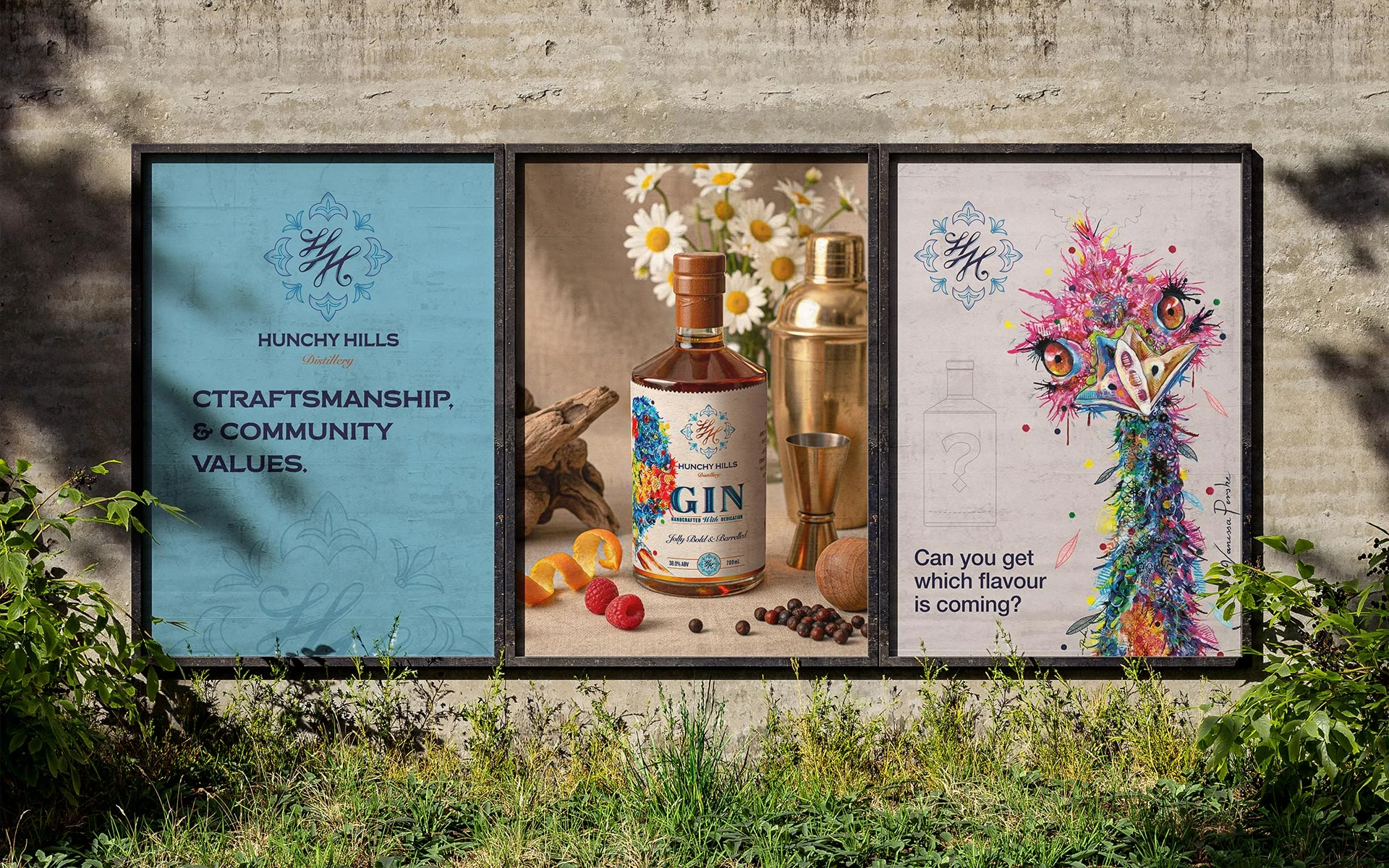 Hunchy Hills Distillery is a female-led distillery nestled in the lush hinterlands of Queensland, Australia. When the founder reached out to us, she was struggling with a brand identity that didn’t represent her story — one that felt overly masculine, generic, and disconnected from the essence of her business.