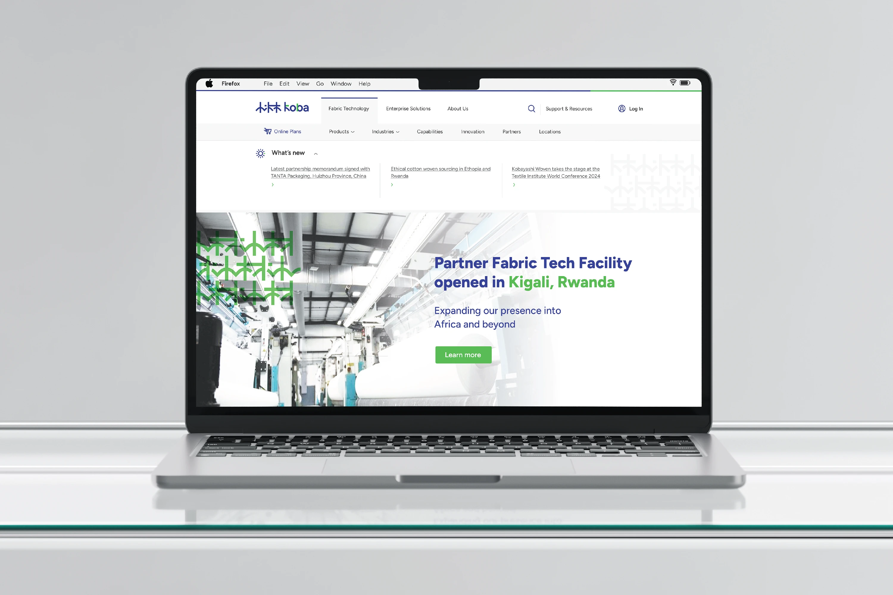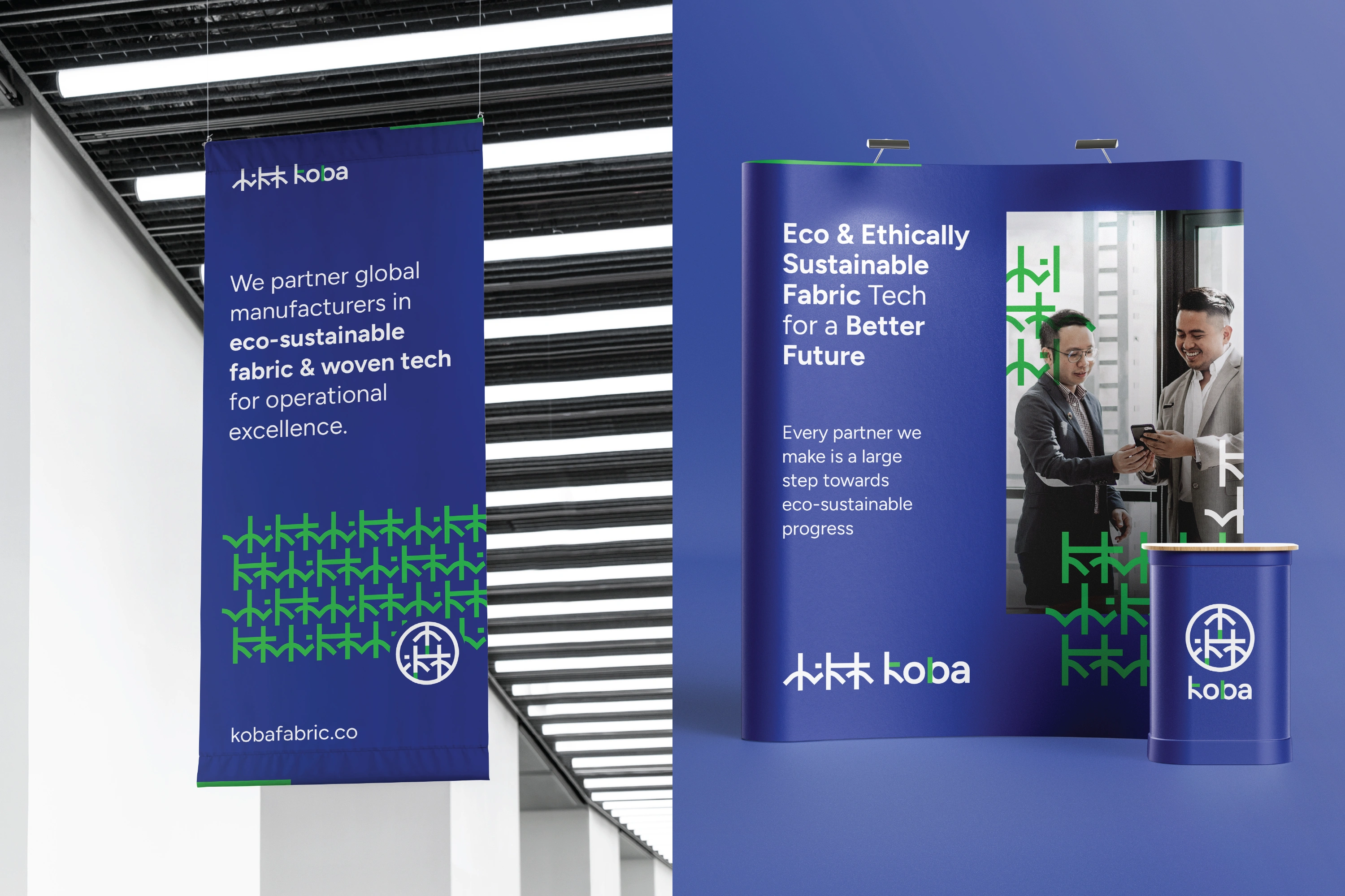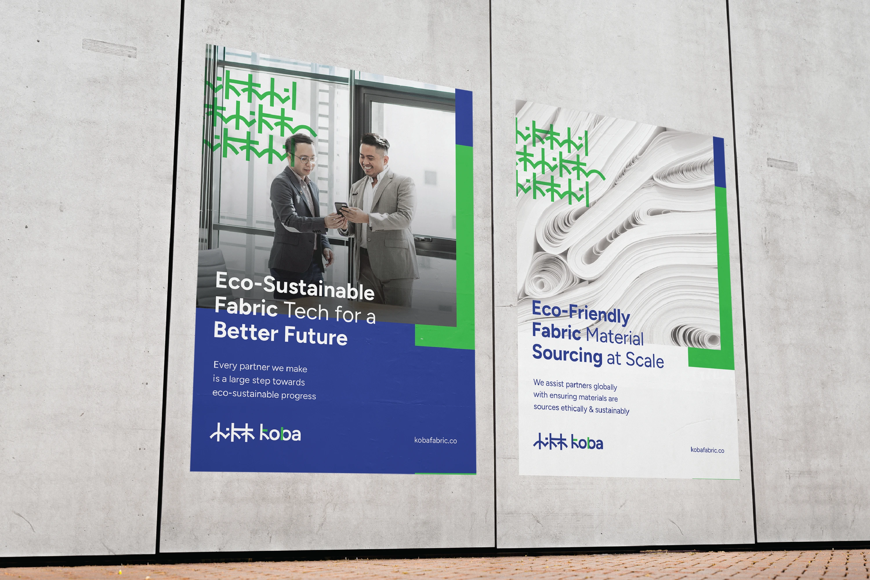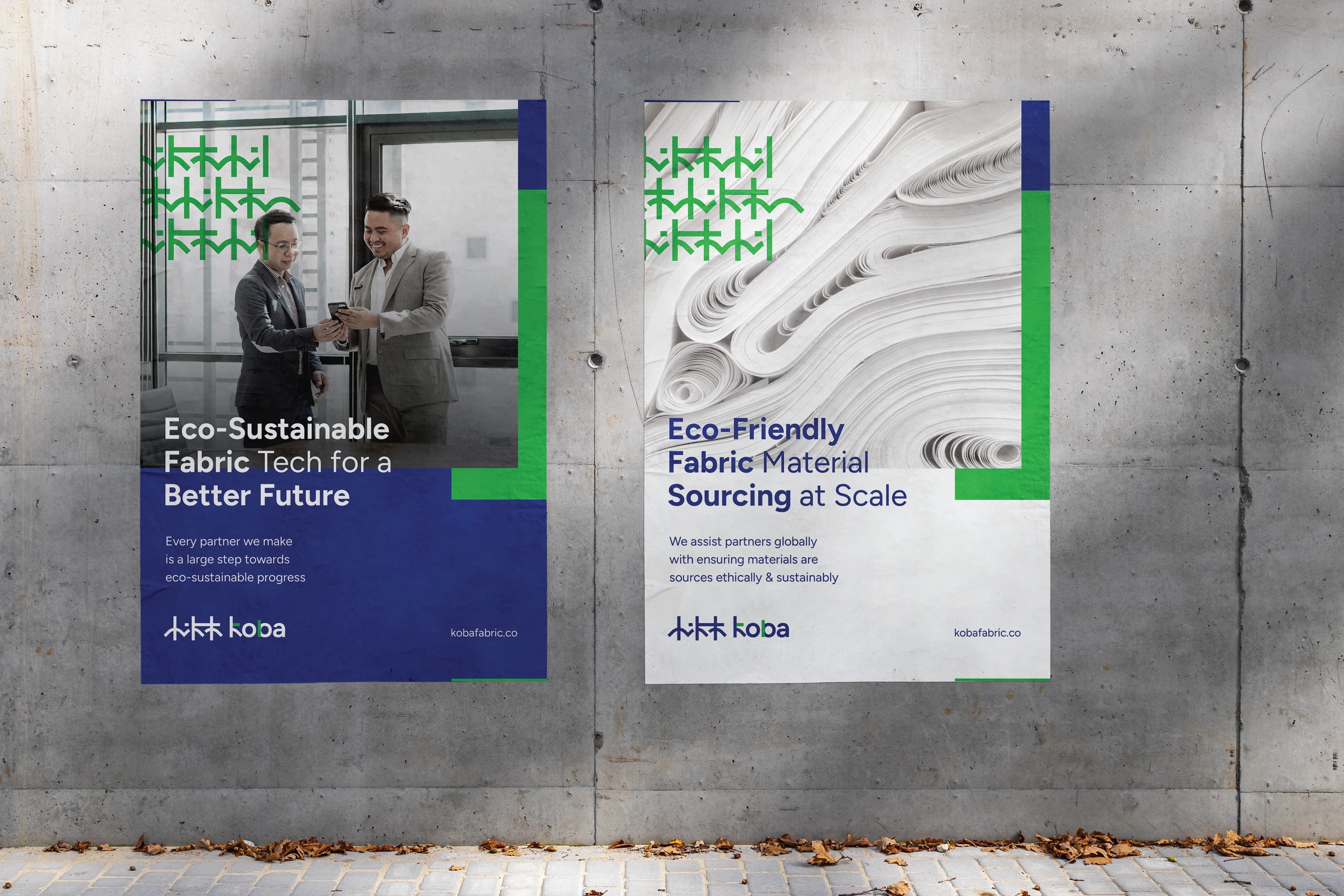 KOBA is a premium eco-textile brand evolved from Kobayashi Woven, a Kyoto-based manufacturer founded in 1947. The core challenge was to reposition a legacy heritage business as a global leader in sustainable fabric innovation. The branding needed to bridge the gap between 75 years of artisanal Kyoto craftsmanship and a future-forward, 'mountain forest' philosophy, all while avoiding the visual clichés of generic sustainable branding.