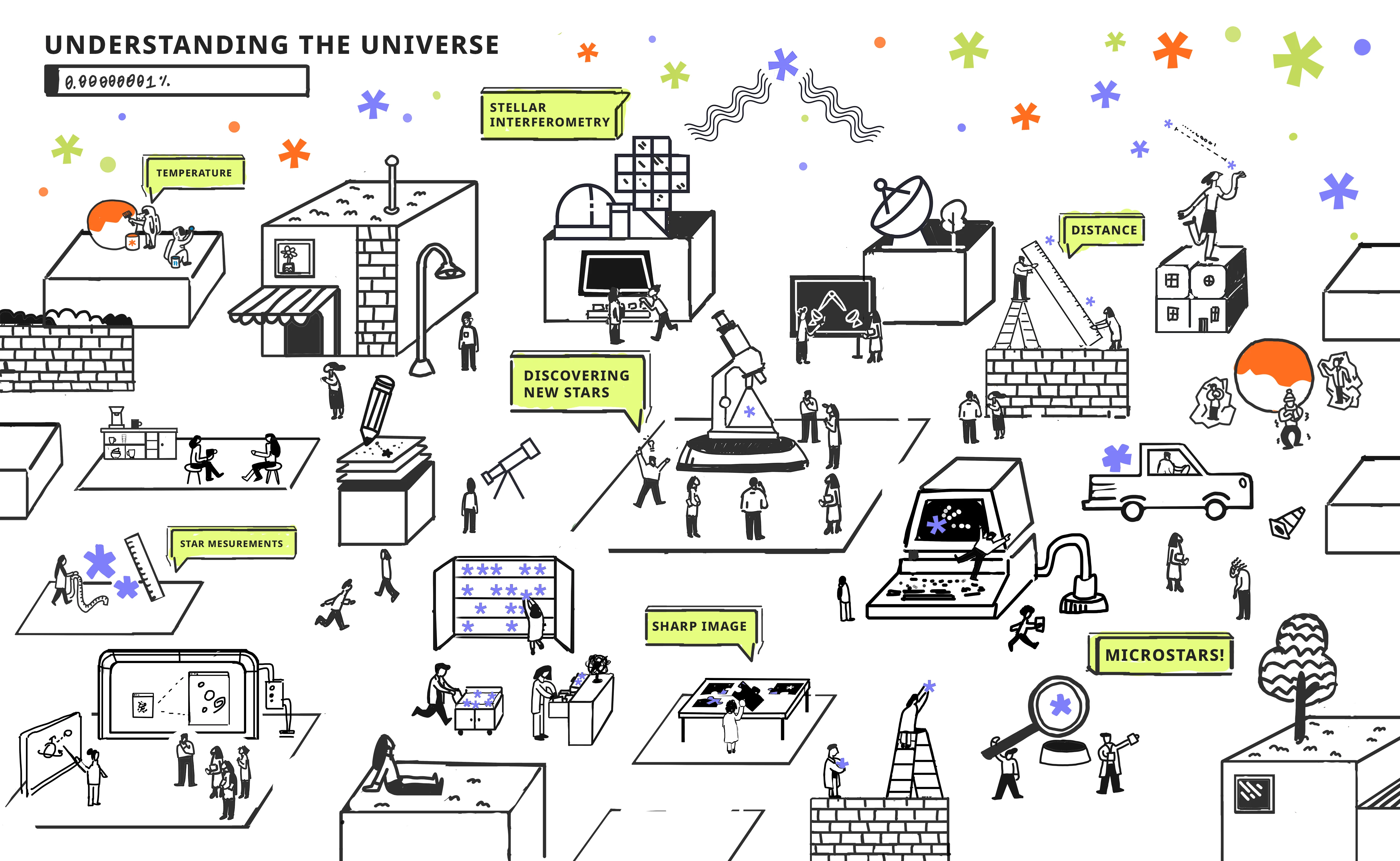 The Micro Stars is a big project which was a part of a project “School of not knowing”, where designers were working in collaboration with real scientists. This is a project about Space and distant stars. The visual style is aimed to make science more accessible and easy to understand for wide audience, the main goal was attract people to science and explain complicated things in easy way. Foe this project were created a poster and instagram posts covers. The project was created in colaboration with Elina Pyrohova and Agnieszka Wacławik. The topic were extended by animation for the planetarium in Touch Designer and Adobe After Effects.