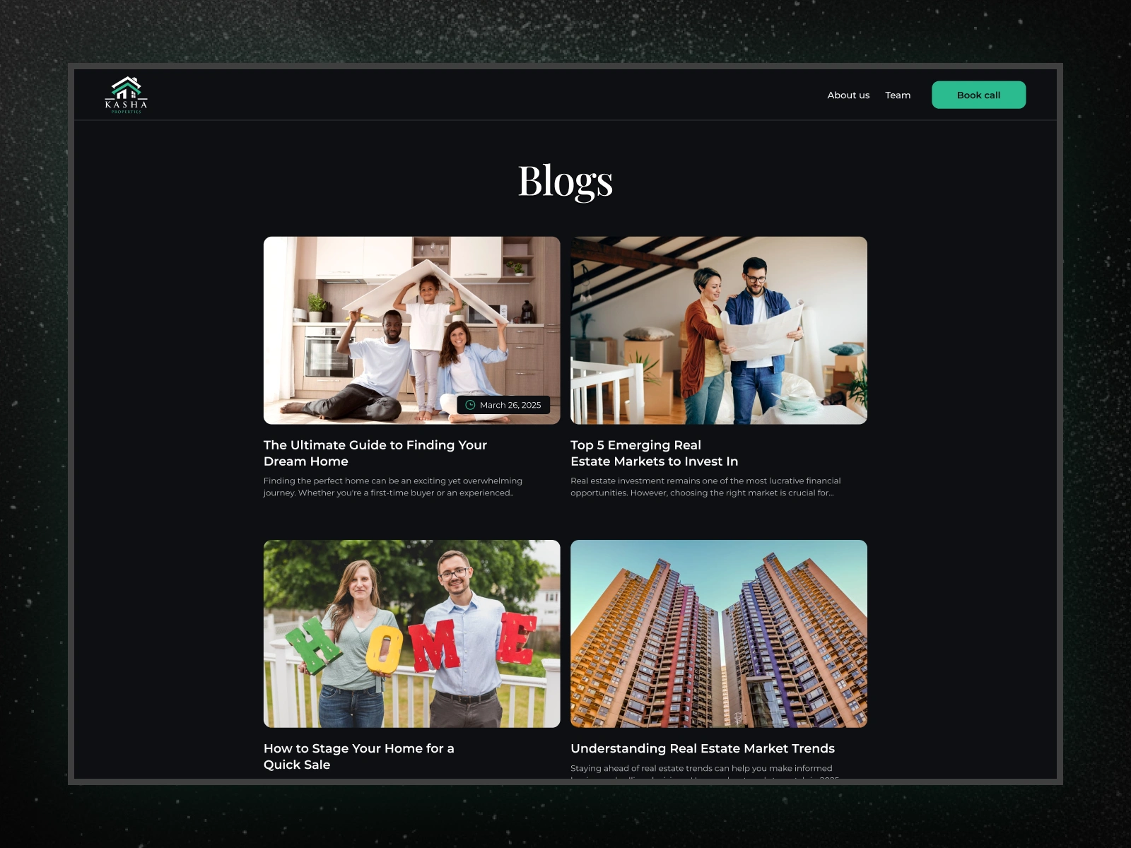 Kasha required a premium and scalable website to support its entry into the digital real estate landscape. The goal was to create a professional brand presence that could drive trust, visibility, and inbound client inquiries.
