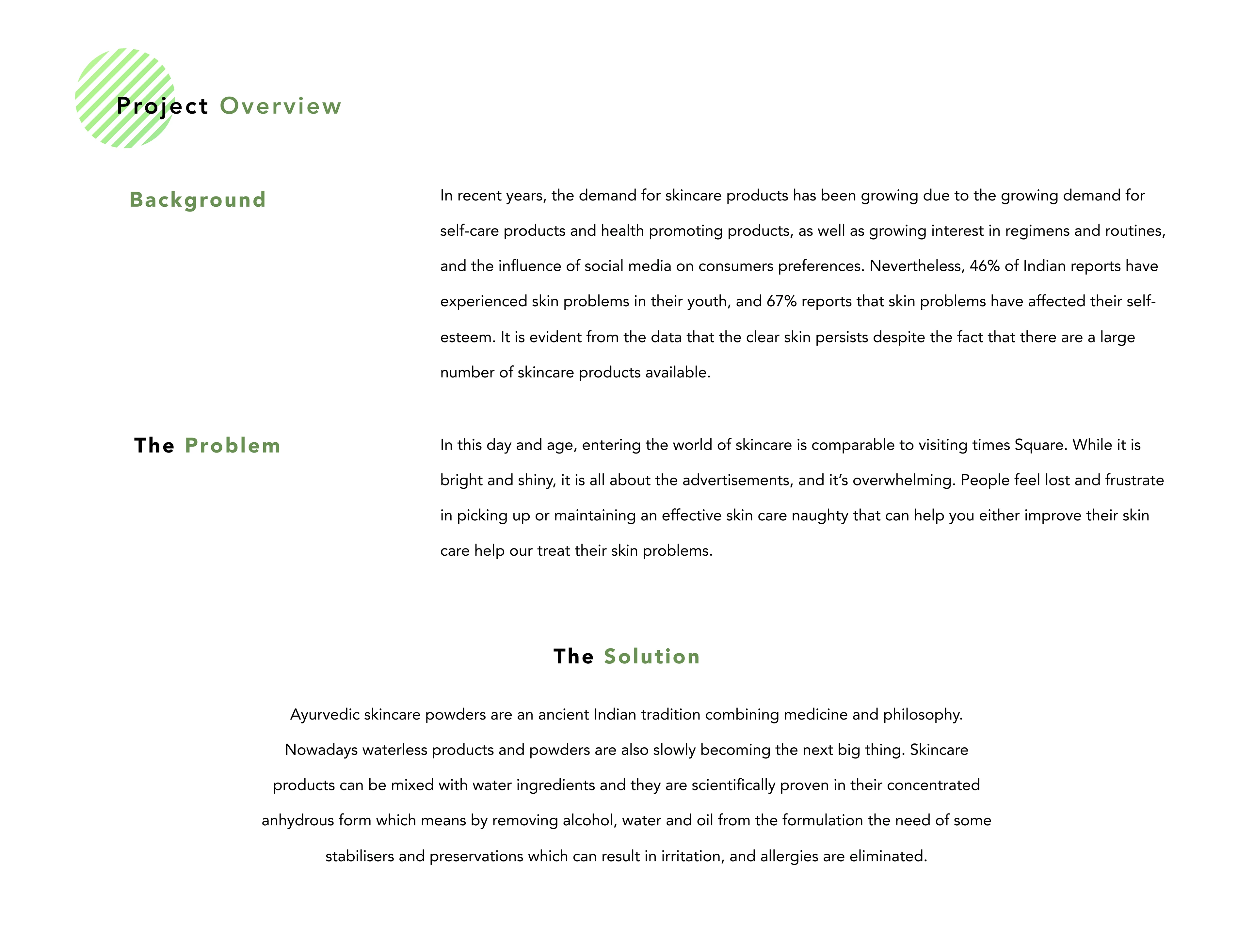 Assisting people in making healthy skincare choices and making it accessible | The Target audience is Ayurveda enthusiasts and practitioners aged 16 to 50.