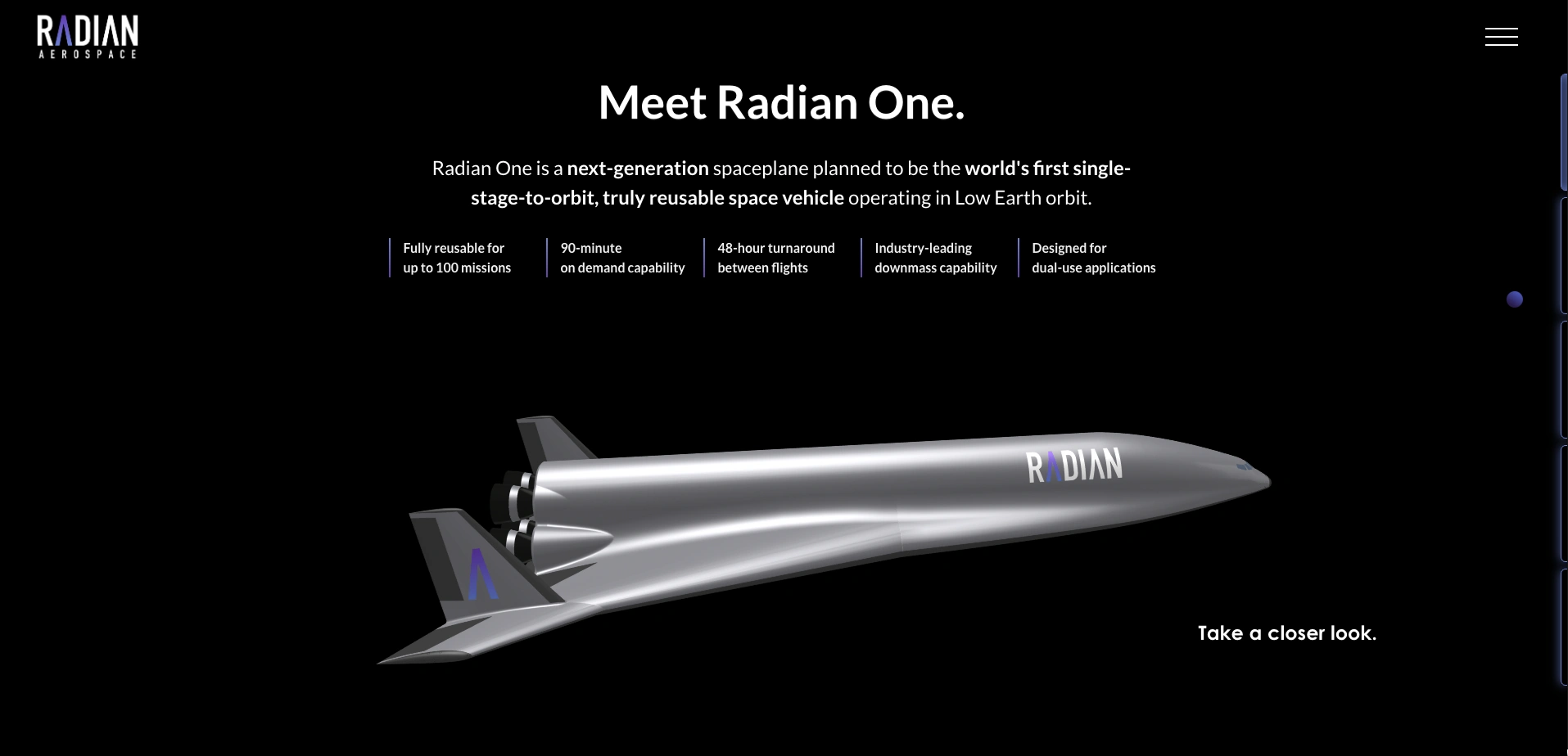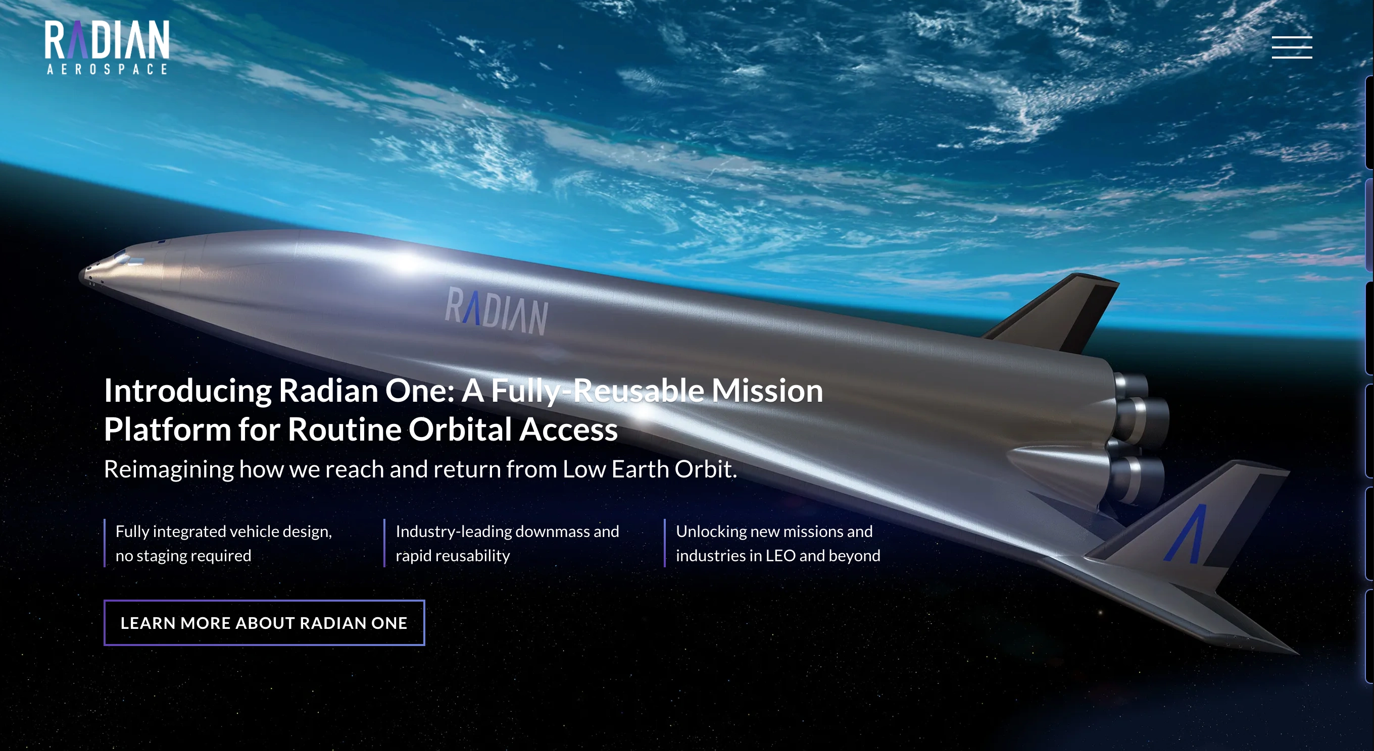 Radian Aerospace is developing the world’s first fully reusable, single-stage-to-orbit spaceplane. Their vision is to make spaceflight affordable and routine, expanding access to space for scientific research, in-space manufacturing, and Earth observation. Radian needed a website that matched the ambition of its mission while showcasing the innovation behind its technology.