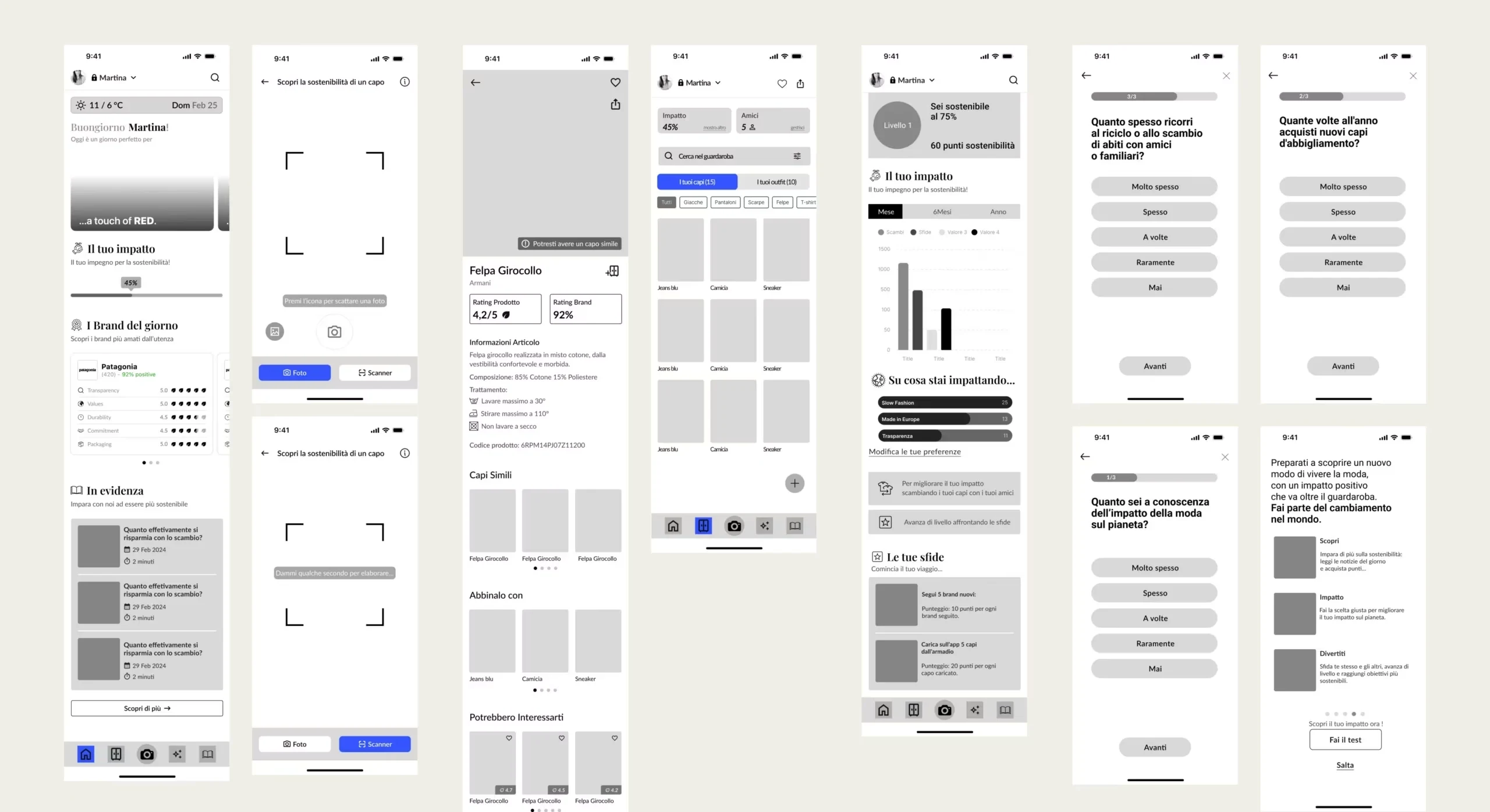 This project aims to provide users with a tool that helps them make more informed purchases, remember and make better use of the clothes they already own, and thus reduce the environmental and social impact of clothing production. From brand identity development to interface development, every choice reflects Be aWear's sustainability values.